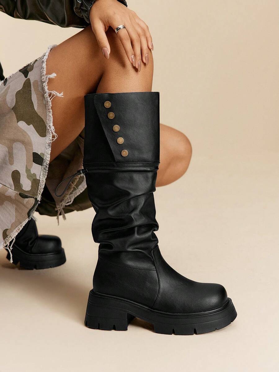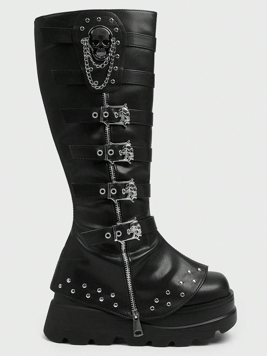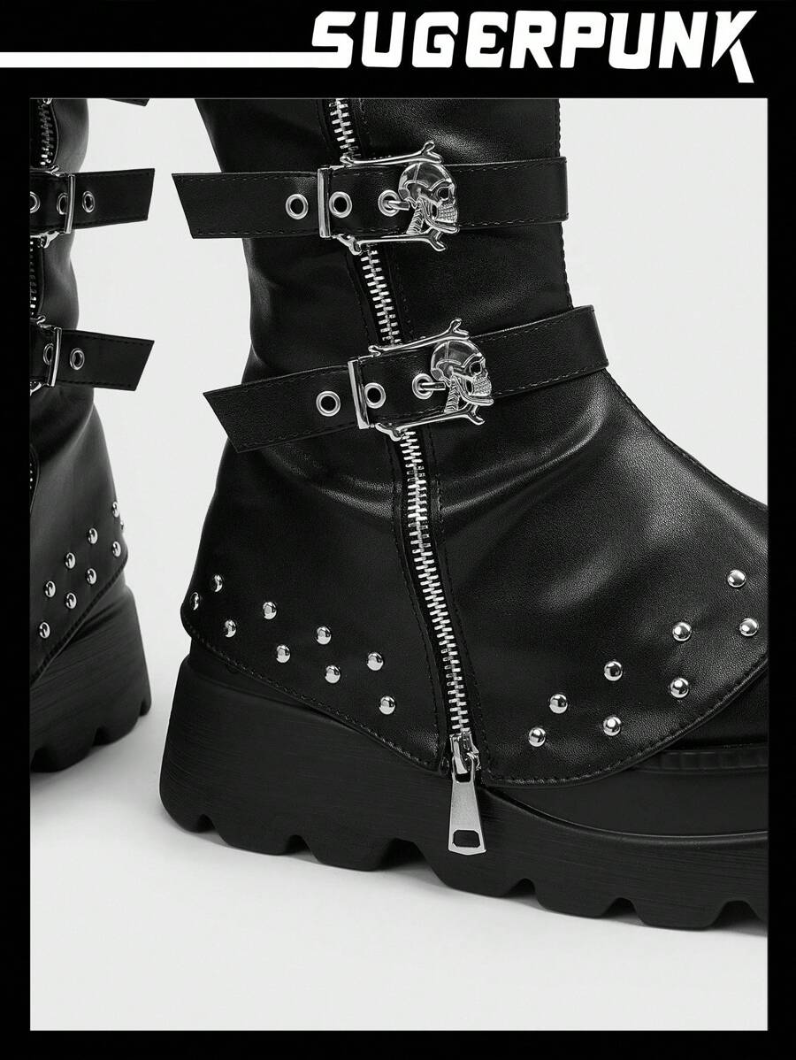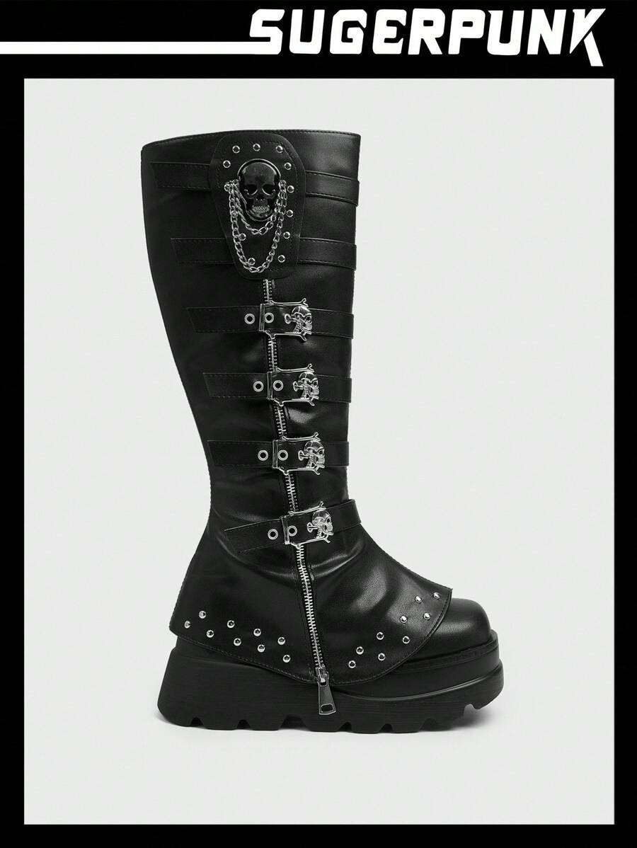Cuccoo CUCCOO GRLICON Ženske čizme preko koljena, Y2K stil, biker chic, povratak u školu, Halloween, božićna zabava