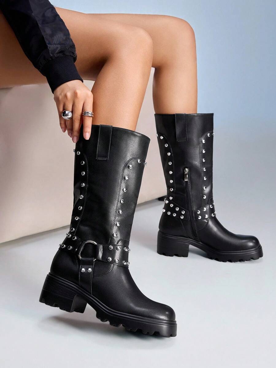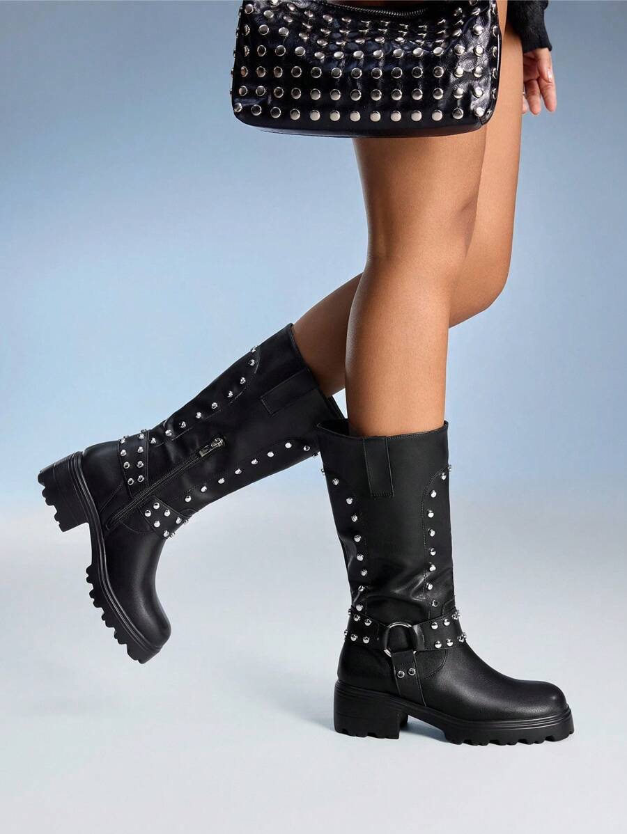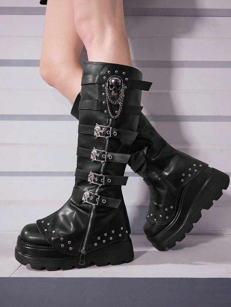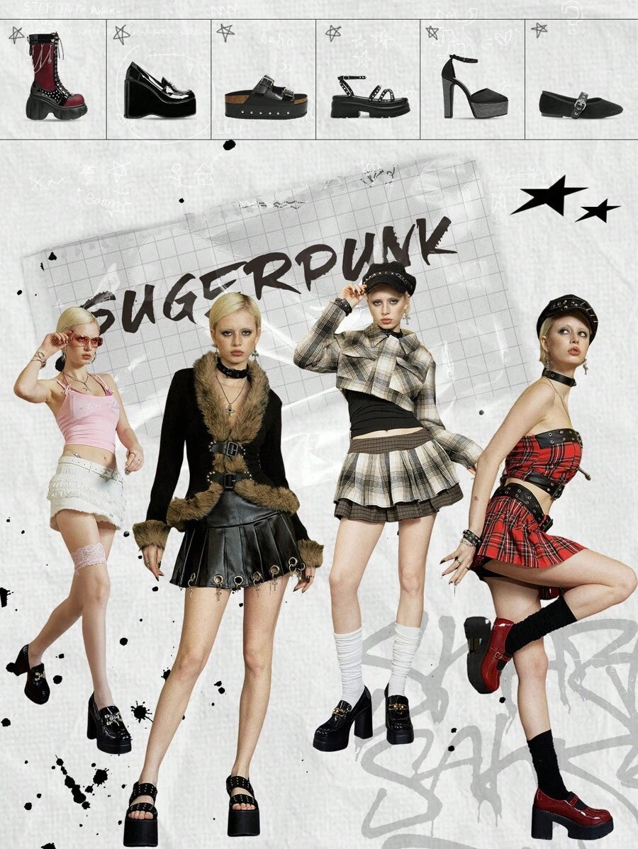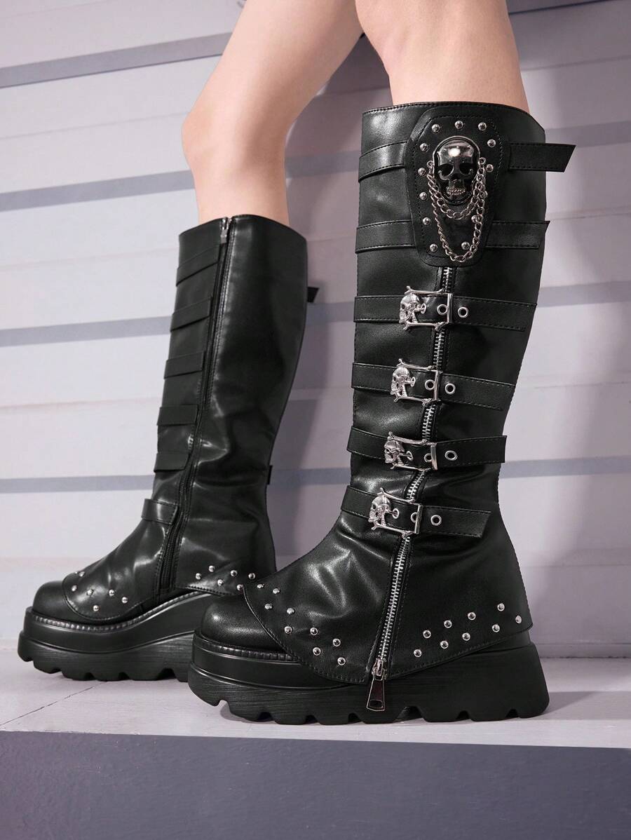 Cuccoo CUCCOO GRLICON Ženske čizme preko koljena, Y2K stil, biker chic, povratak u školu, Halloween, božićna zabava