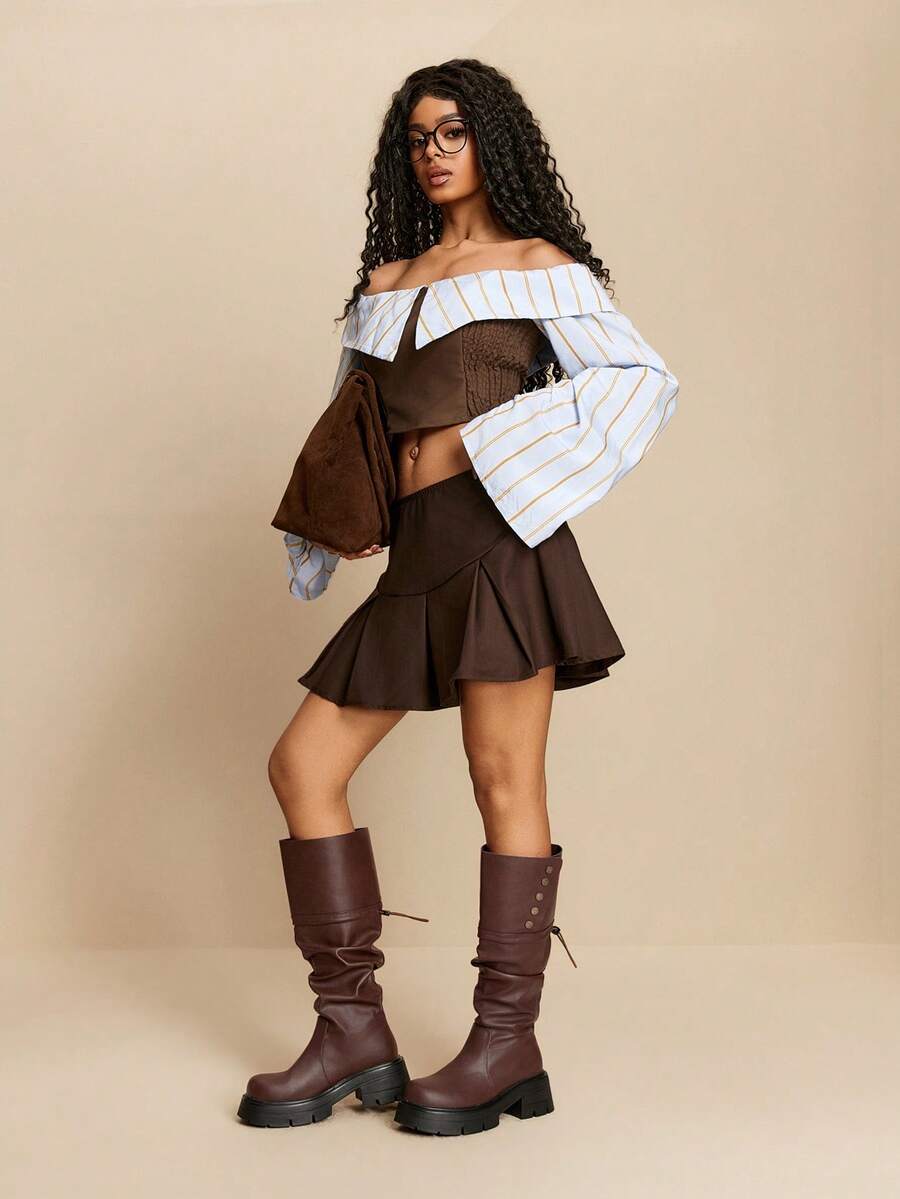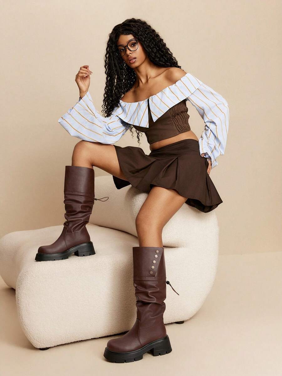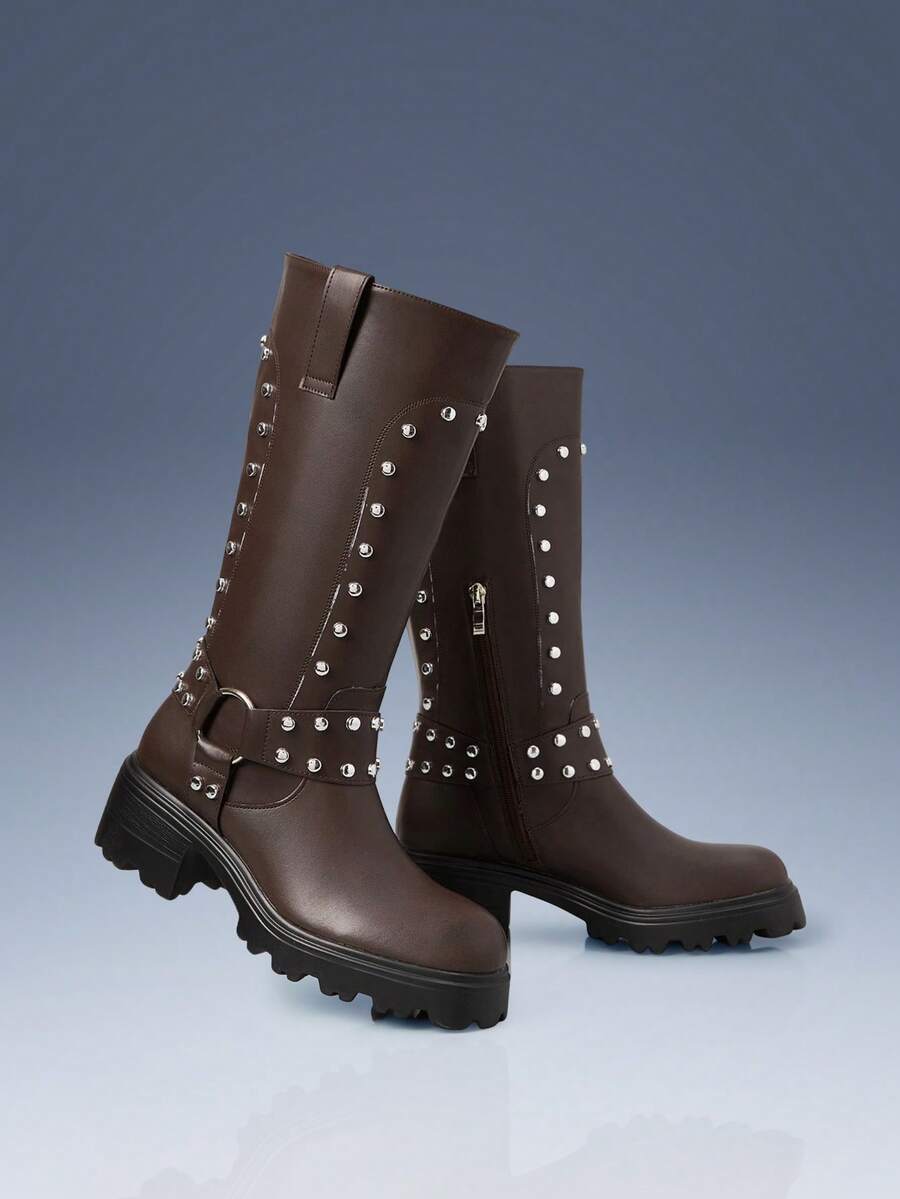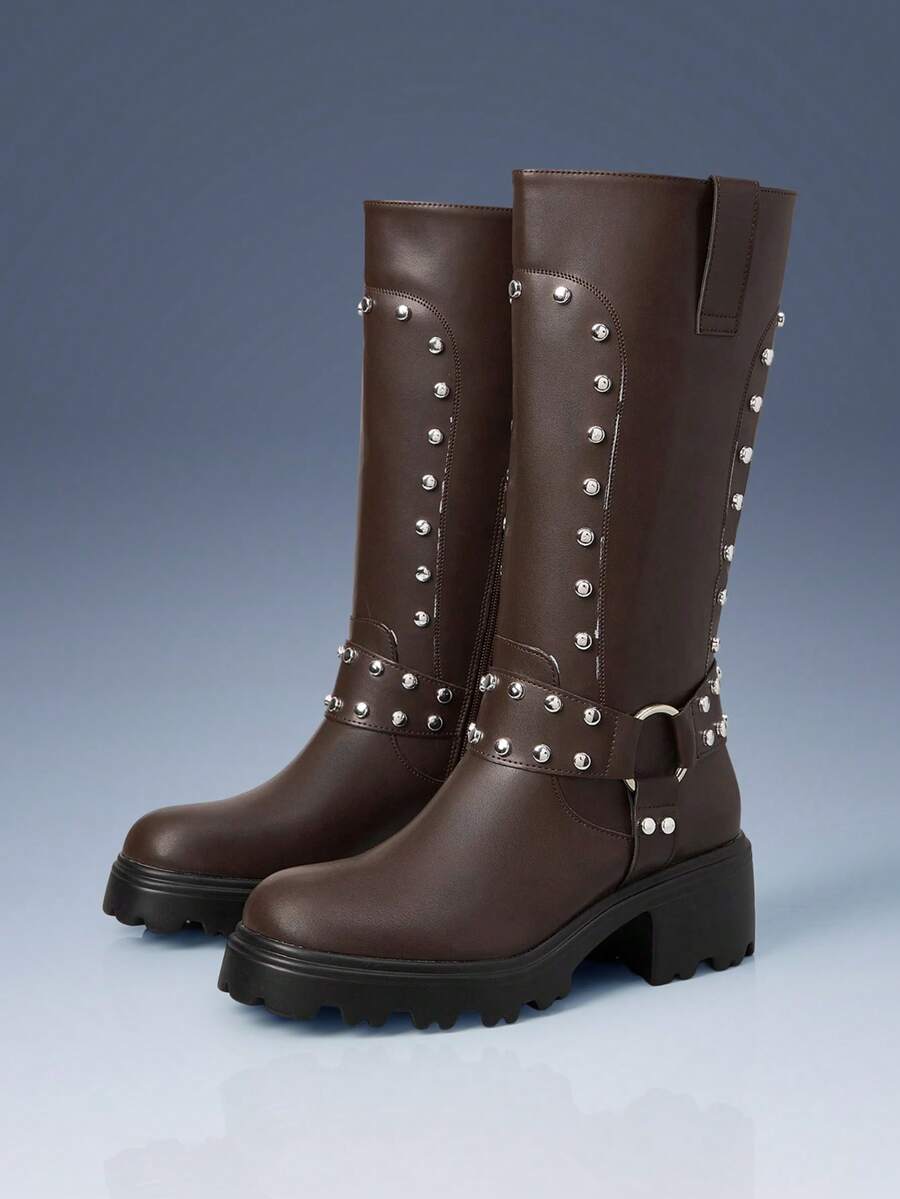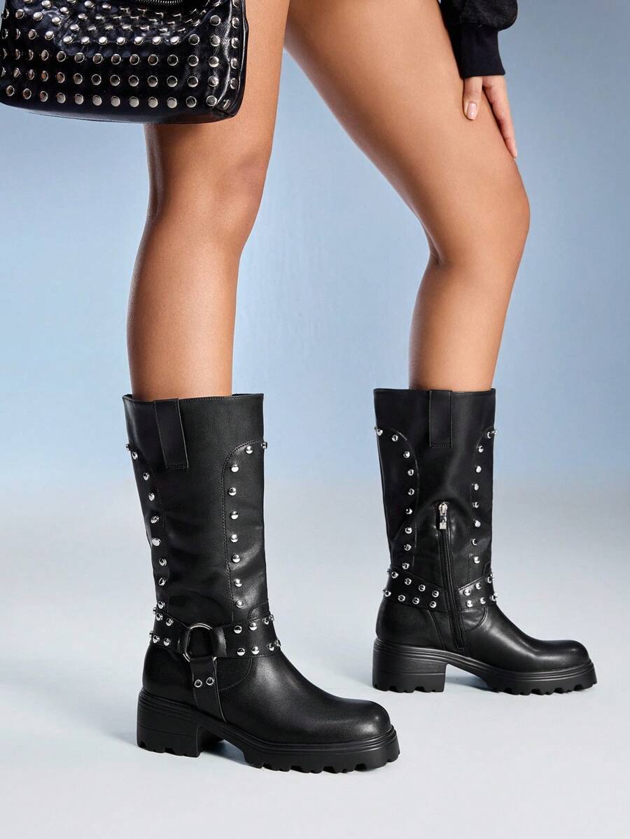 Cuccoo CUCCOO GRLICON Ženske čizme preko koljena, Y2K stil, biker chic, povratak u školu, Halloween, božićna zabava
