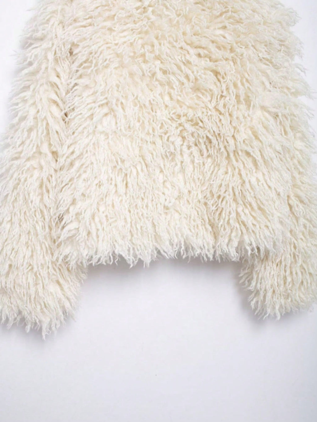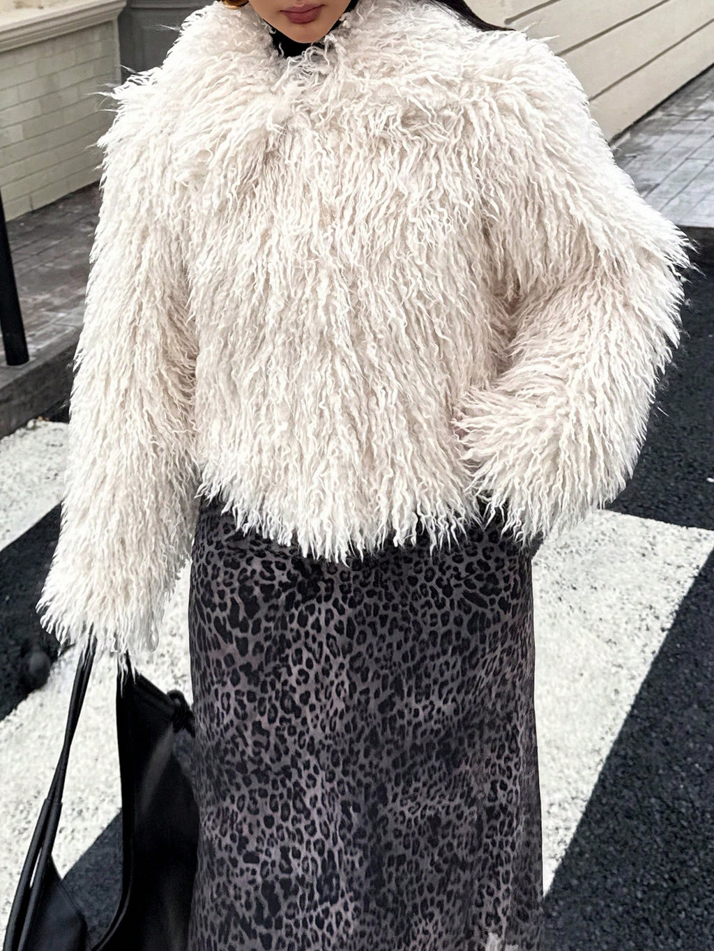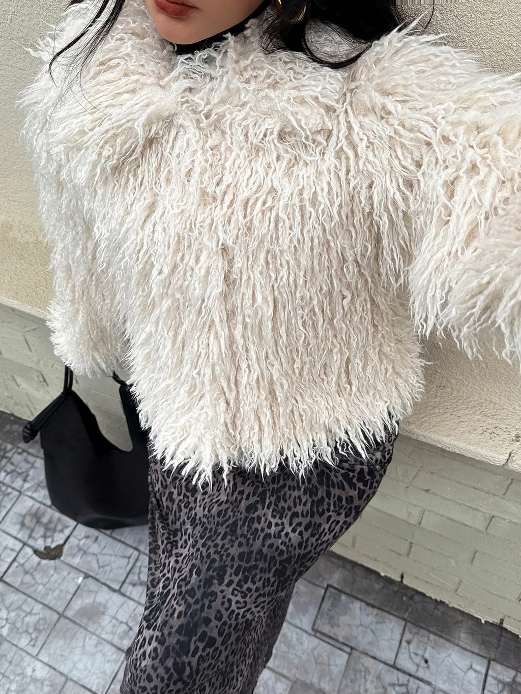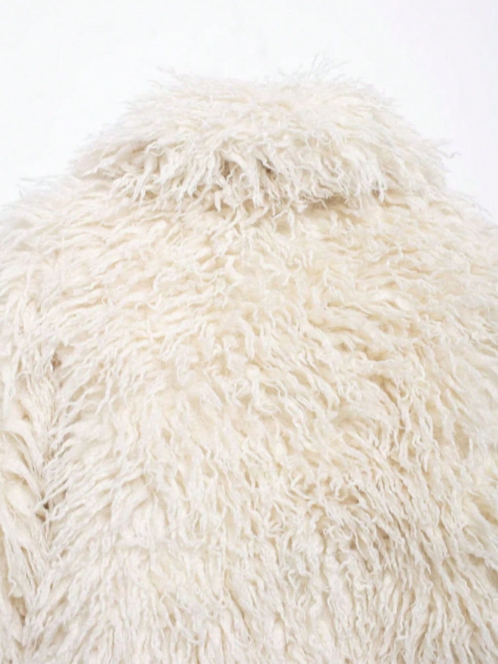 DEEKA luksuzna ženska zimska jakna od umjetnog kovrdžavog krzna (curly faux wool) s oborenim ovratnikom (turn-down collar) u bijeloj boji