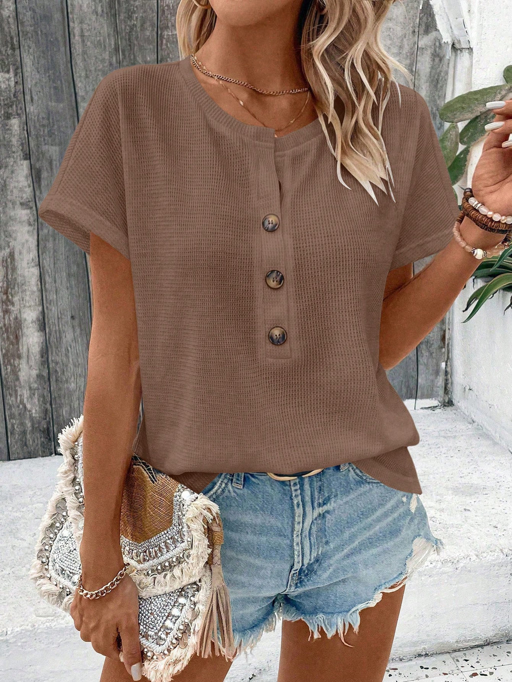 EMERY ROSE majica kratkih rukava s dugmadima Batwing