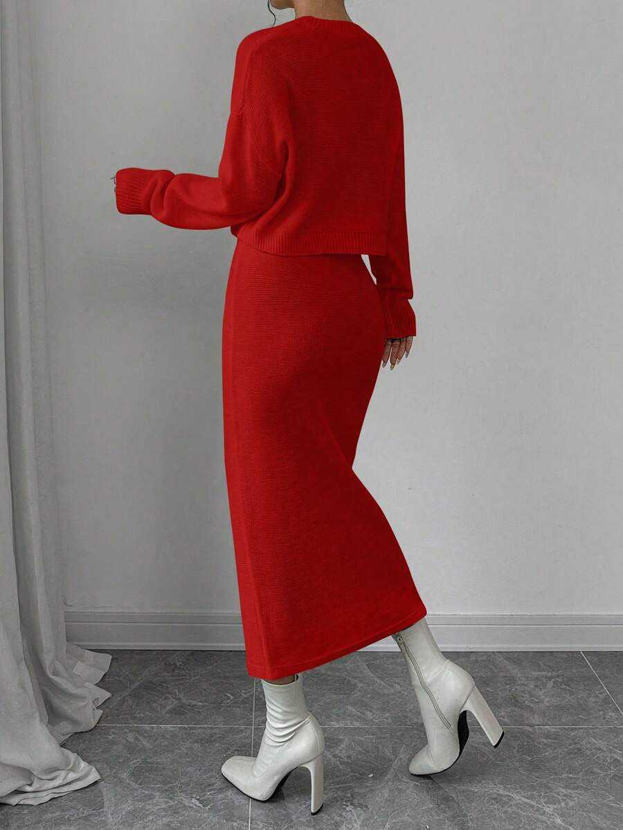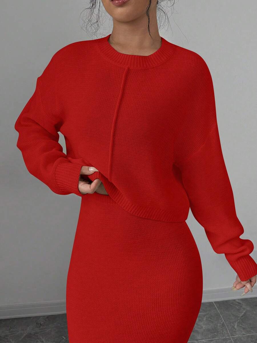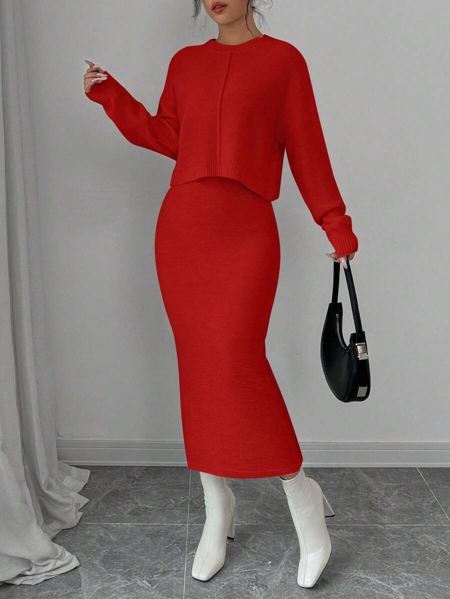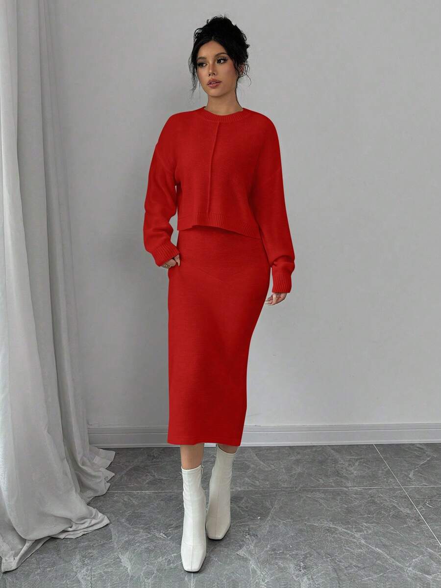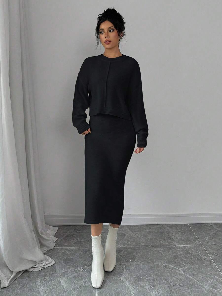EMI 2pcs/Set Women's 2024 New Round Neck Long Sleeve Sweater Top