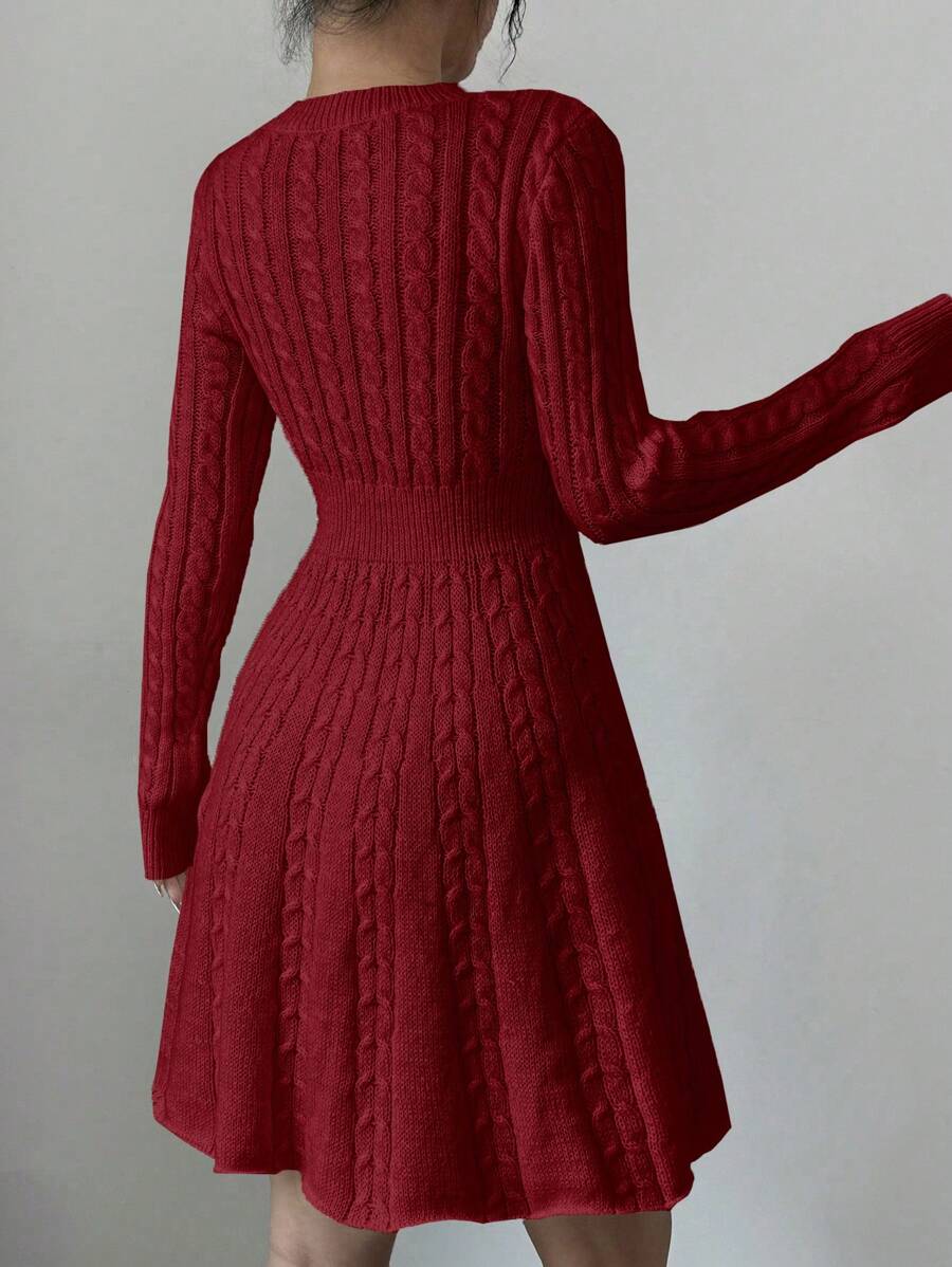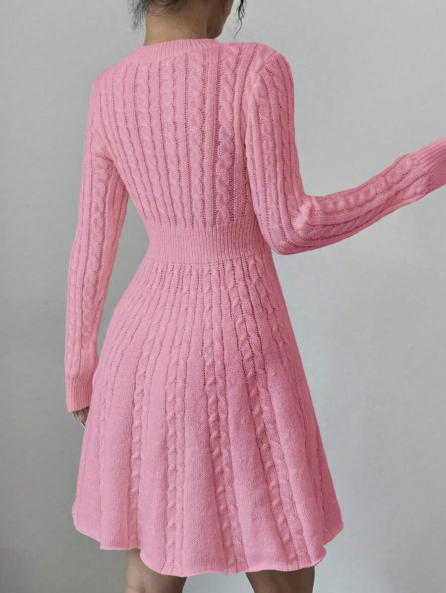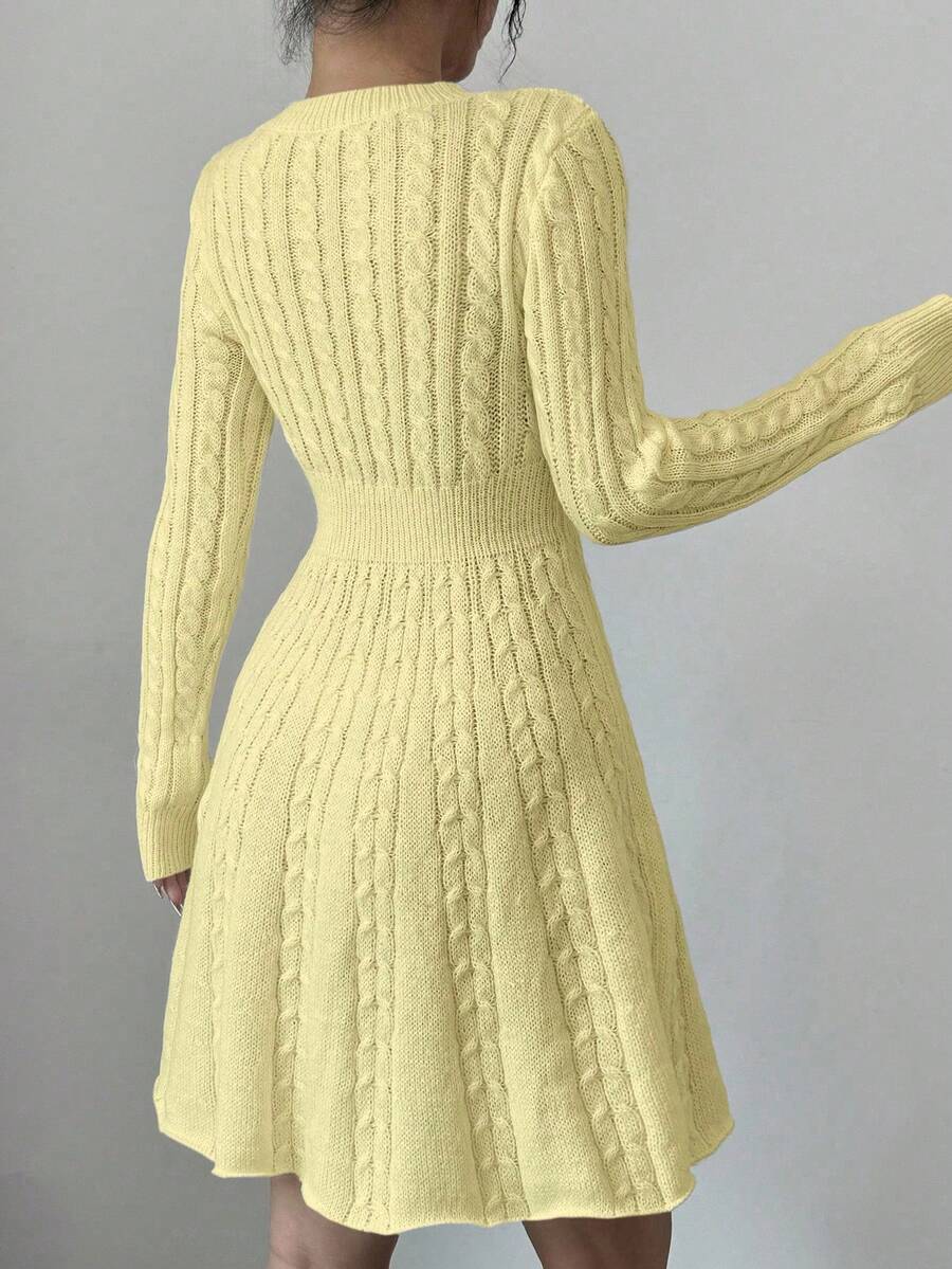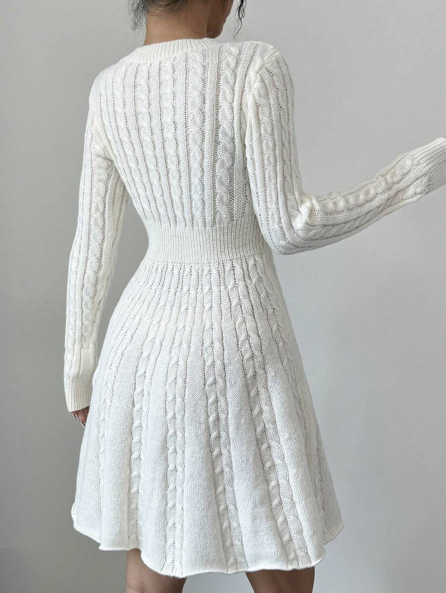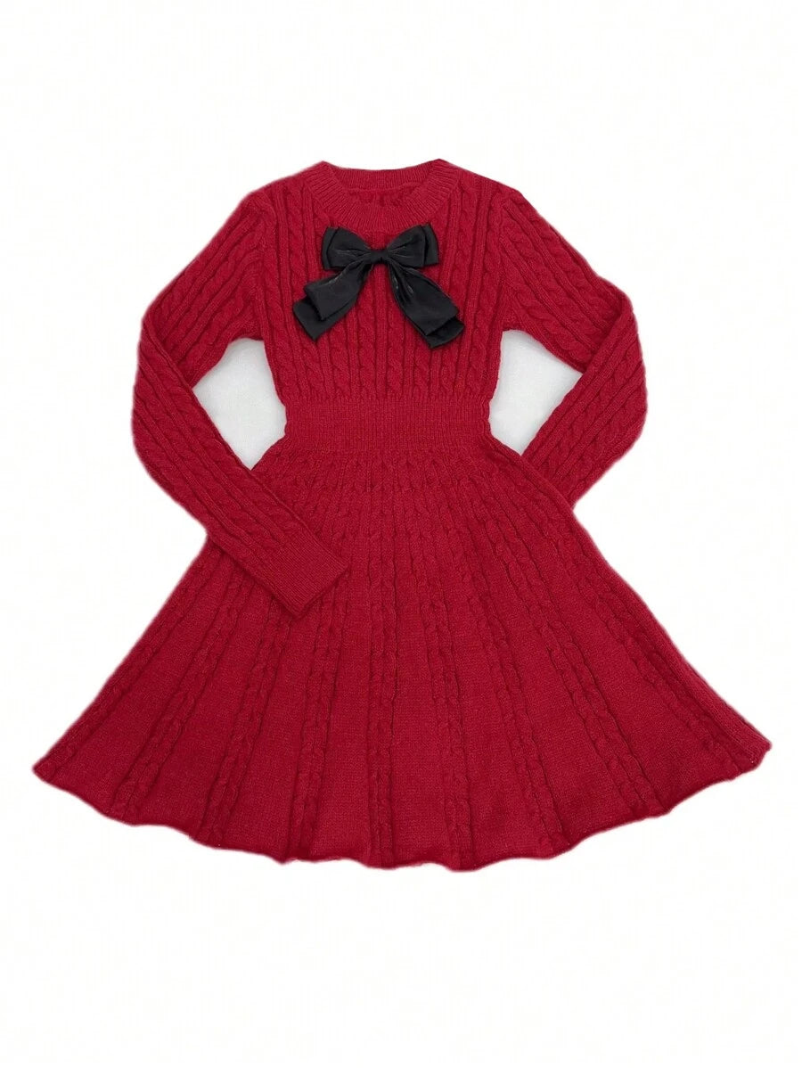 EMI Elegant Simple Bow Decor Knit Sweater Dress, Autumn/Winter Fall Cloth For Women