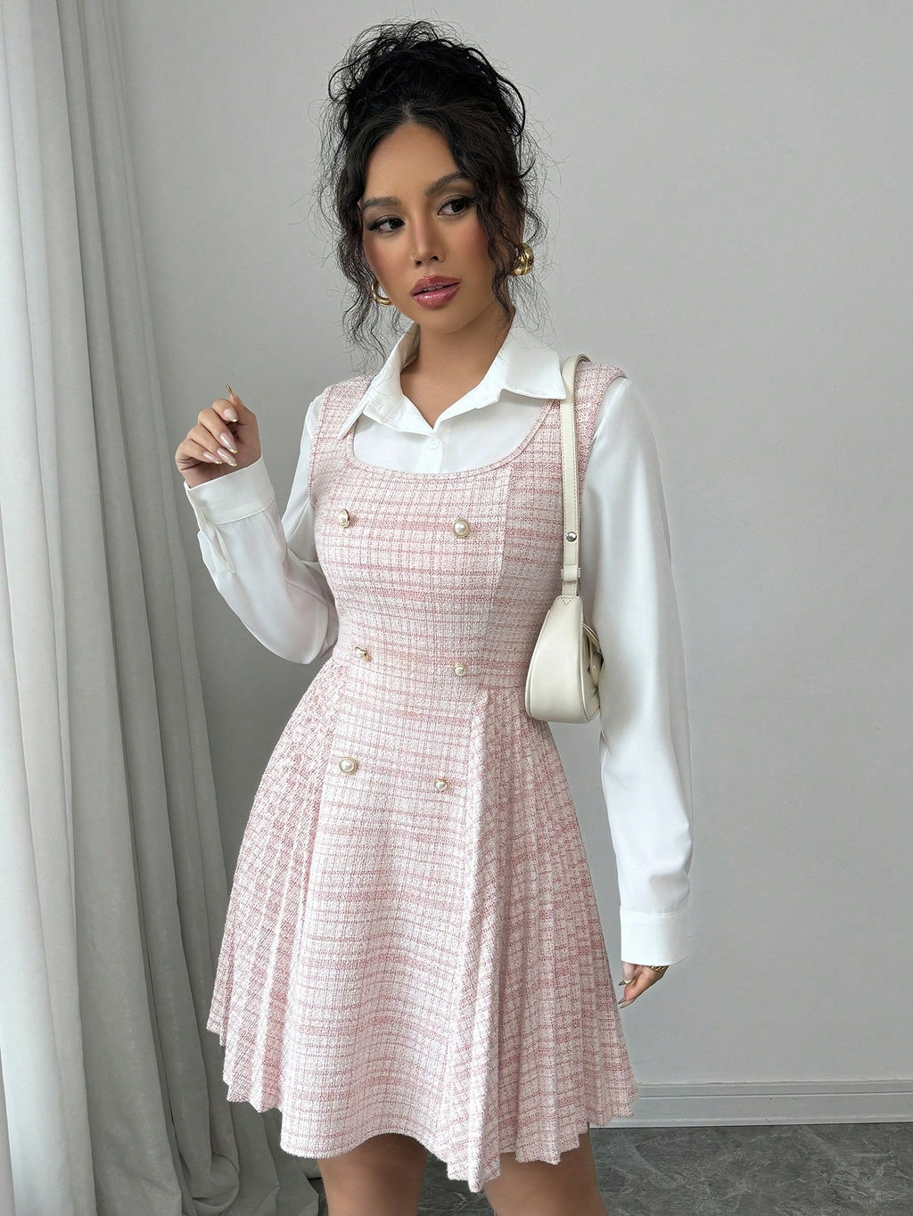 EMI Women Elegant Shirt Pleated Side Dress 2 Pieces Set, For Autumn/Winter Fall Cloth For Women