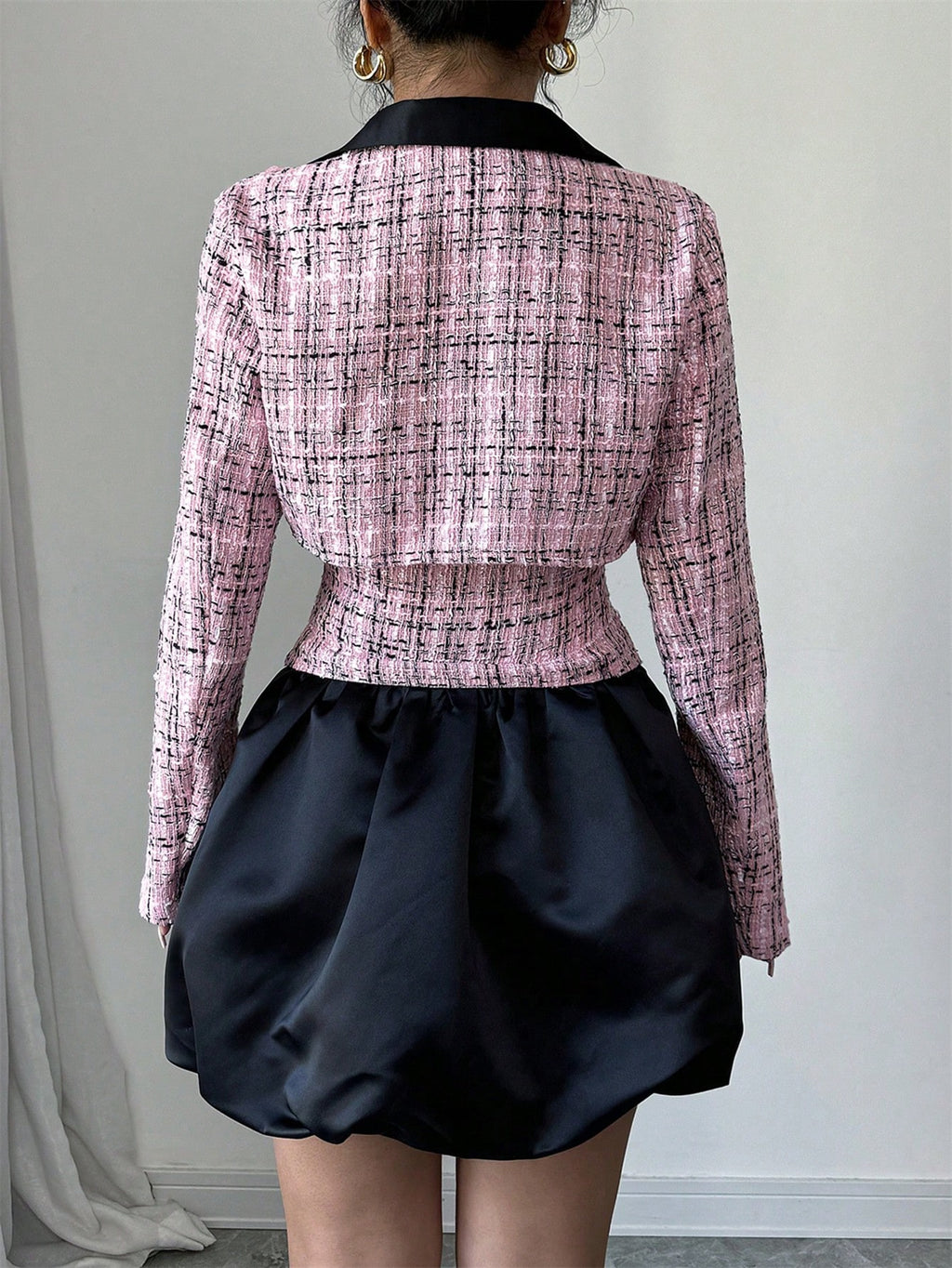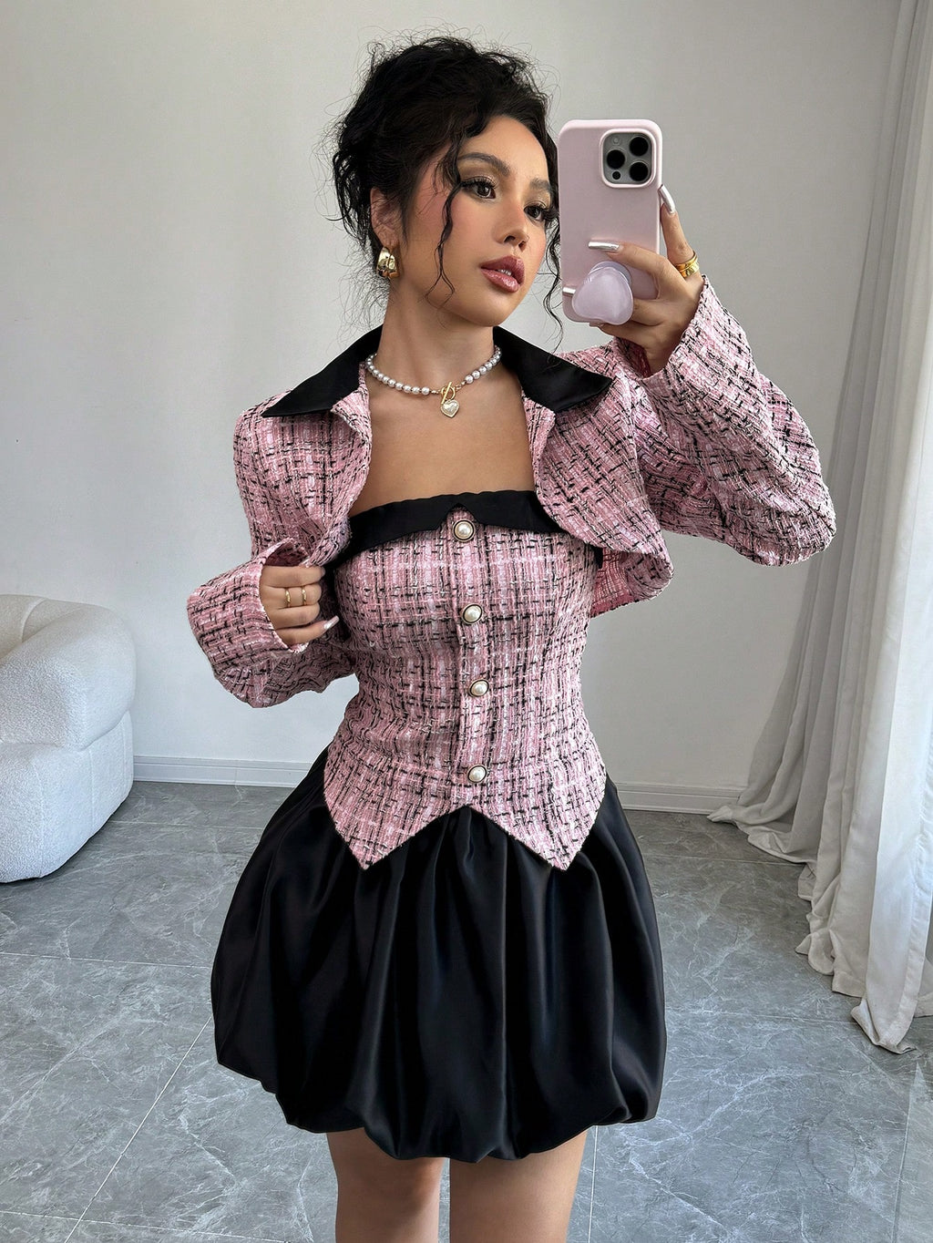EMI Women's Elegant Color Block Cami Dress And Short Jacket Set, Stylish Valentine's Day Outfit, Spring/Autumn