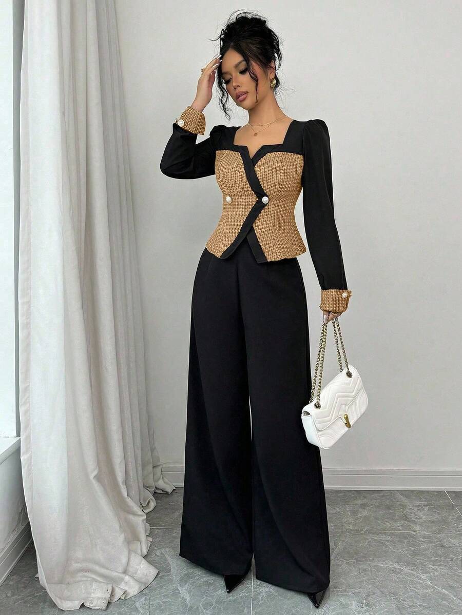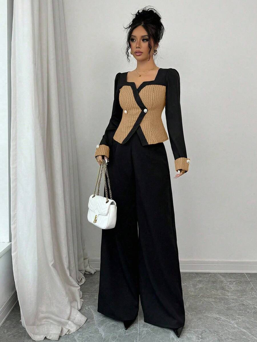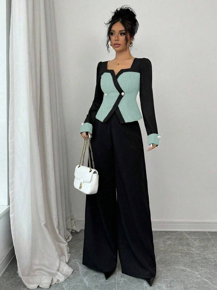 EMI Women's Elegant Commuter Colorblock Cardigan And Wide Leg Pants Set