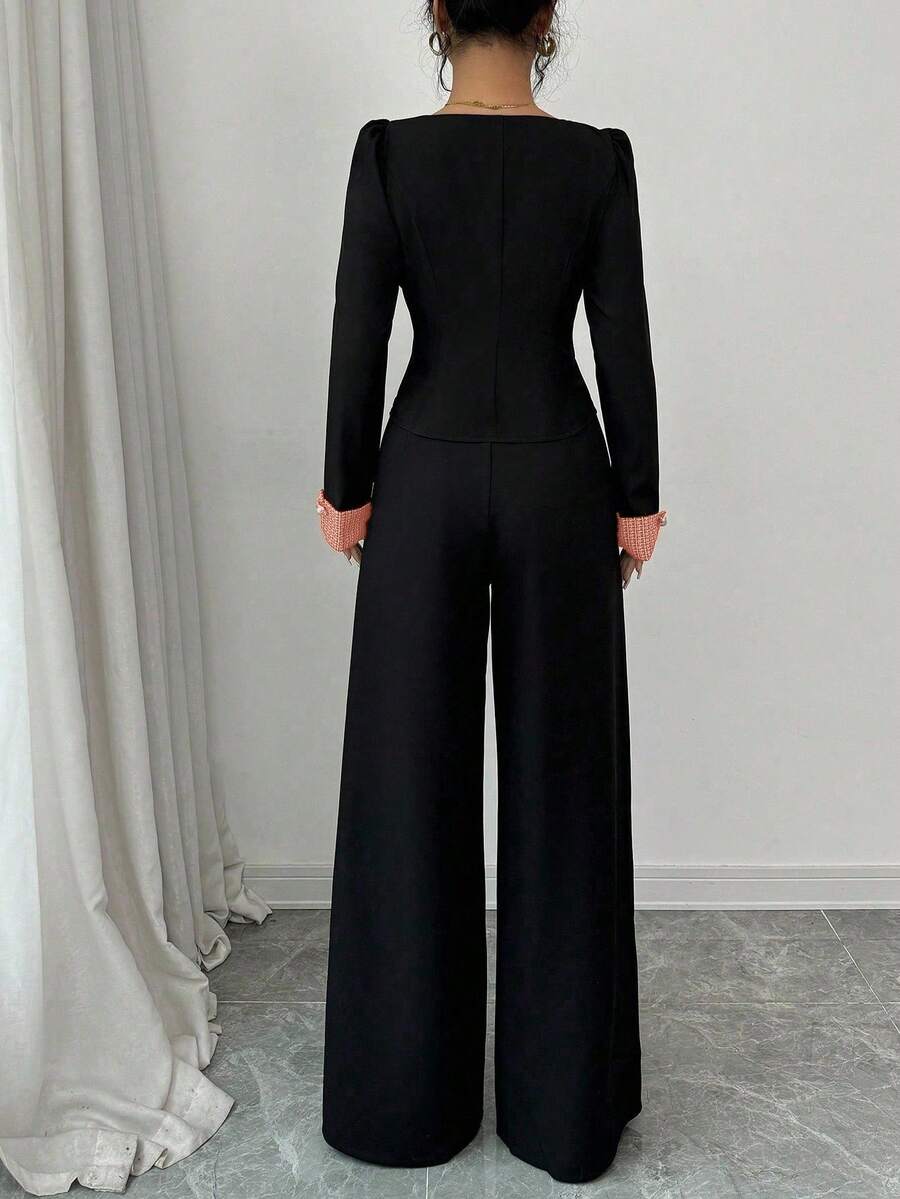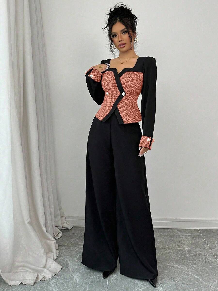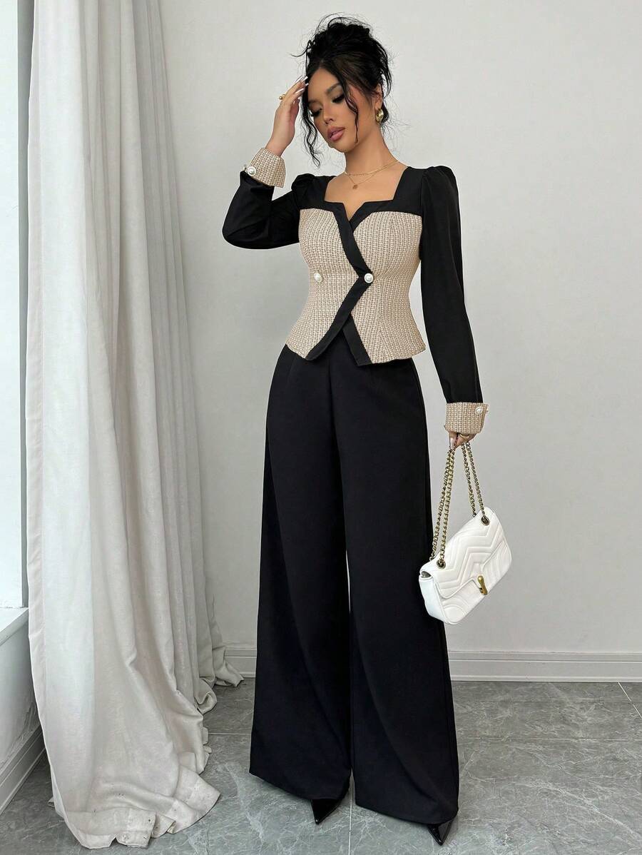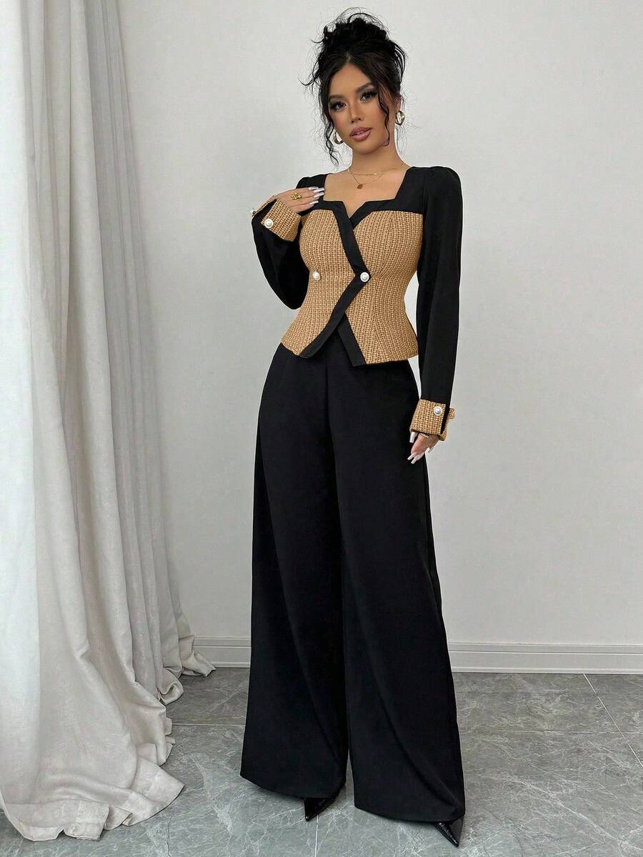 EMI Women's Elegant Commuter Colorblock Cardigan And Wide Leg Pants Set