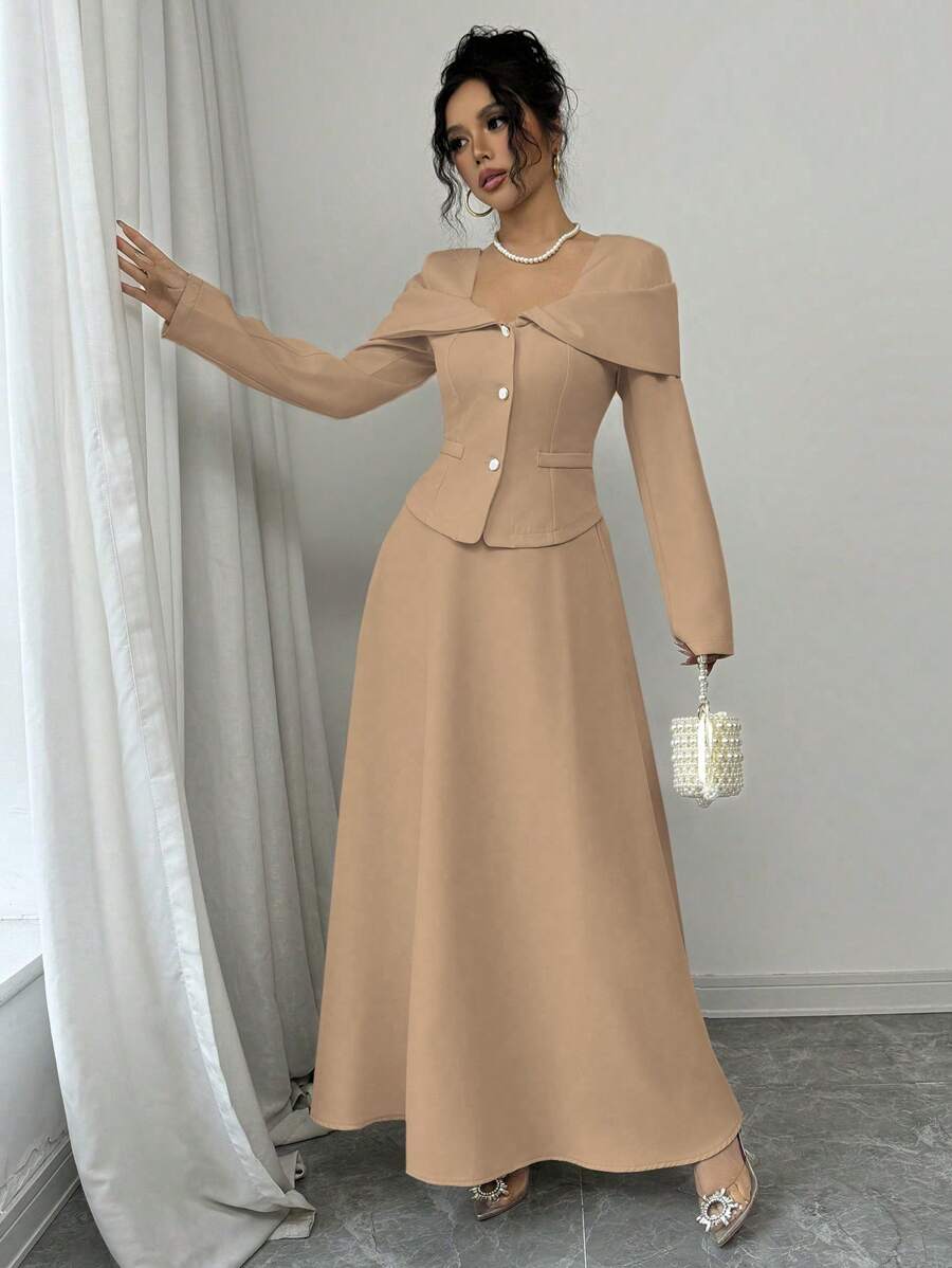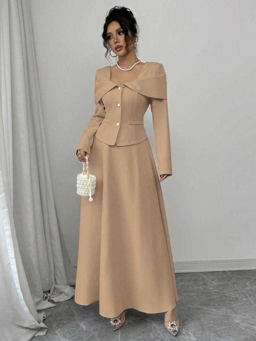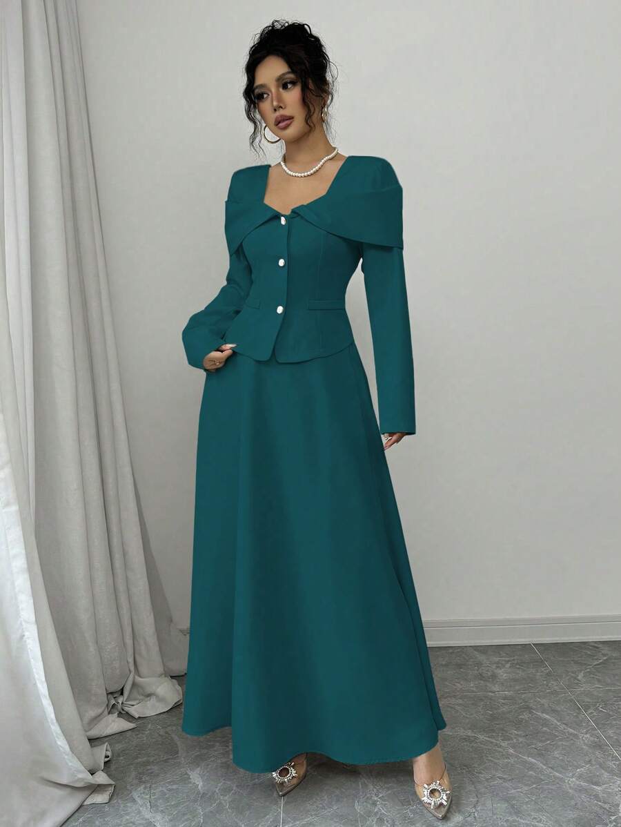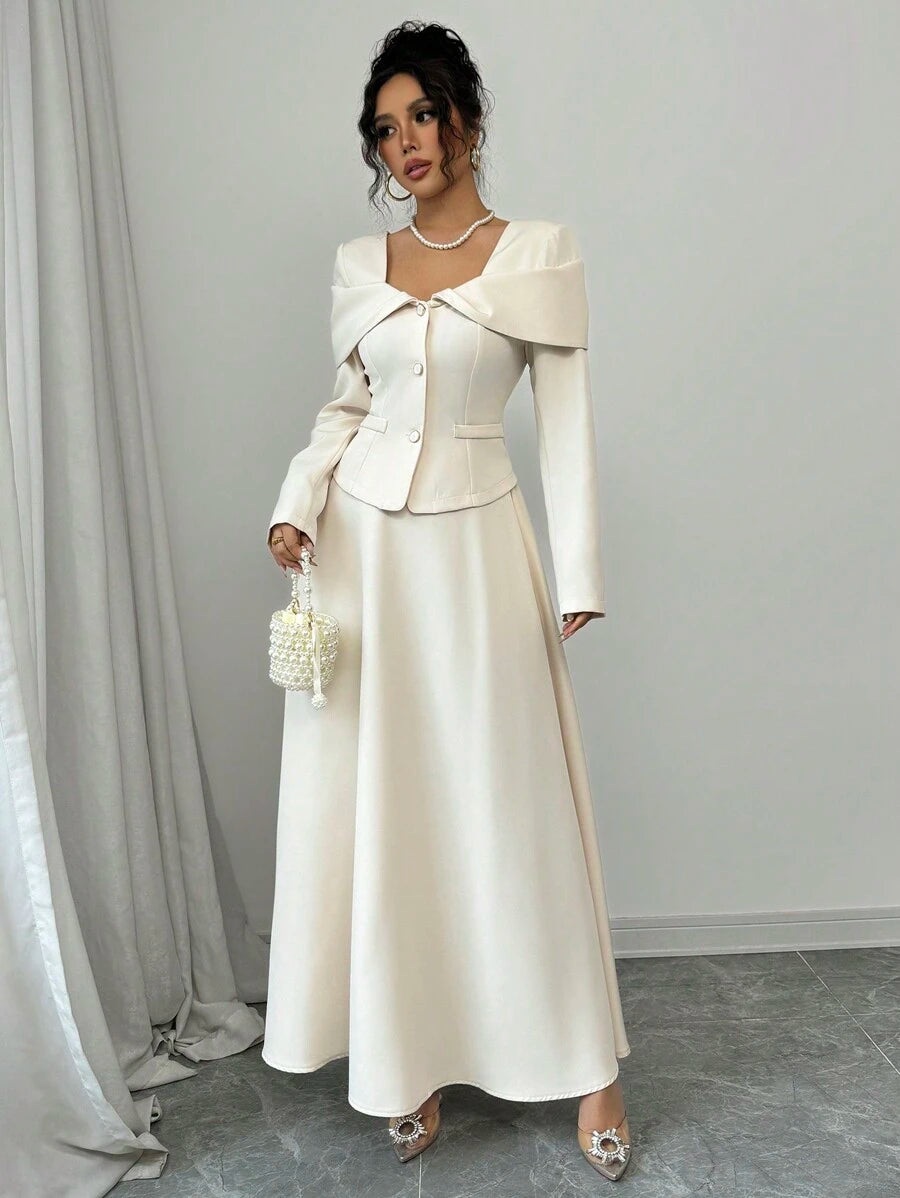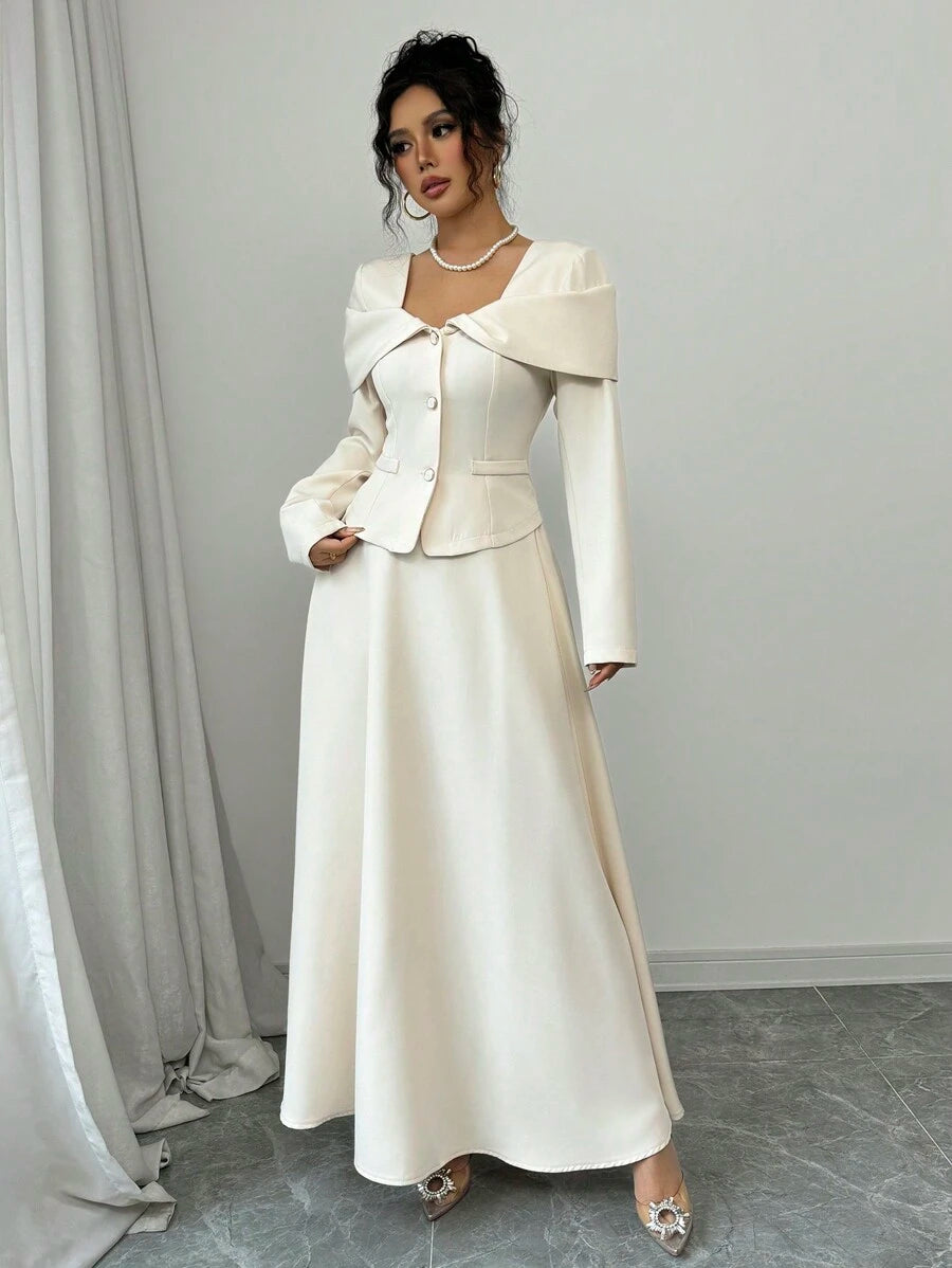 EMI Women's Elegant Commuter Solid Color Jacket And Extra-Long A-Line Skirt 2 Pieces Set Fall Cloth For Women