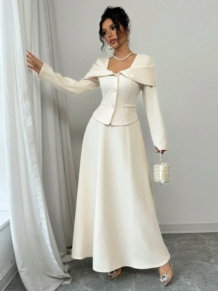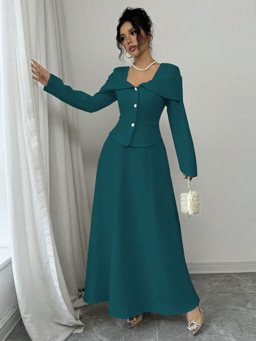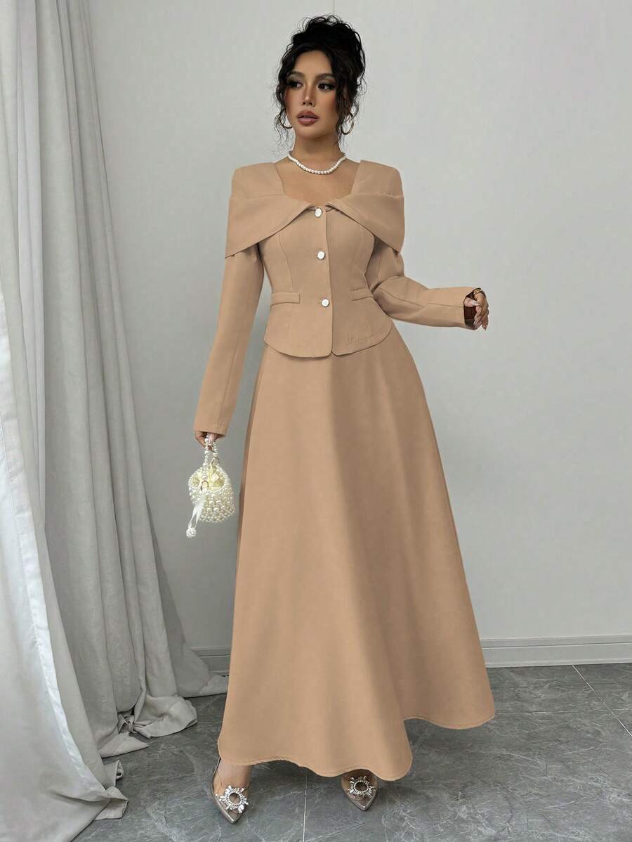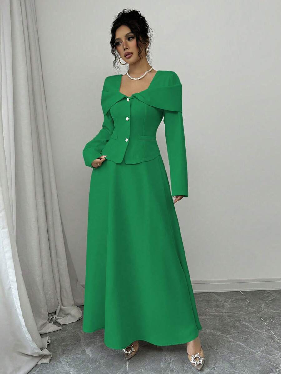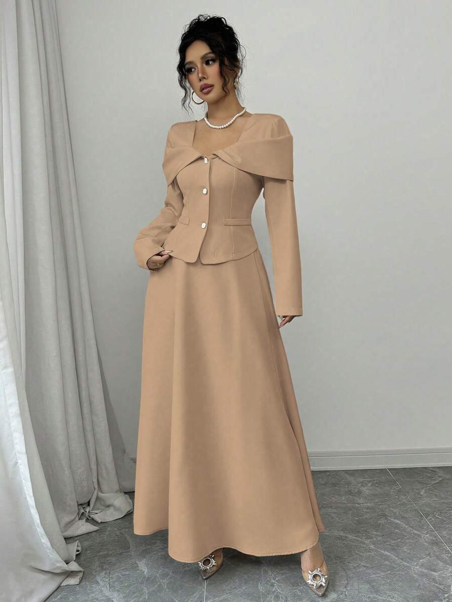 EMI Women's Elegant Commuter Solid Color Jacket And Extra-Long A-Line Skirt 2 Pieces Set Fall Cloth For Women