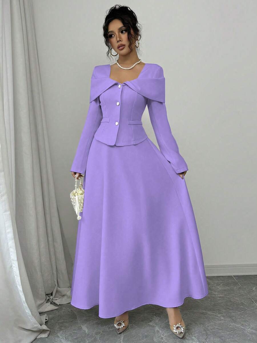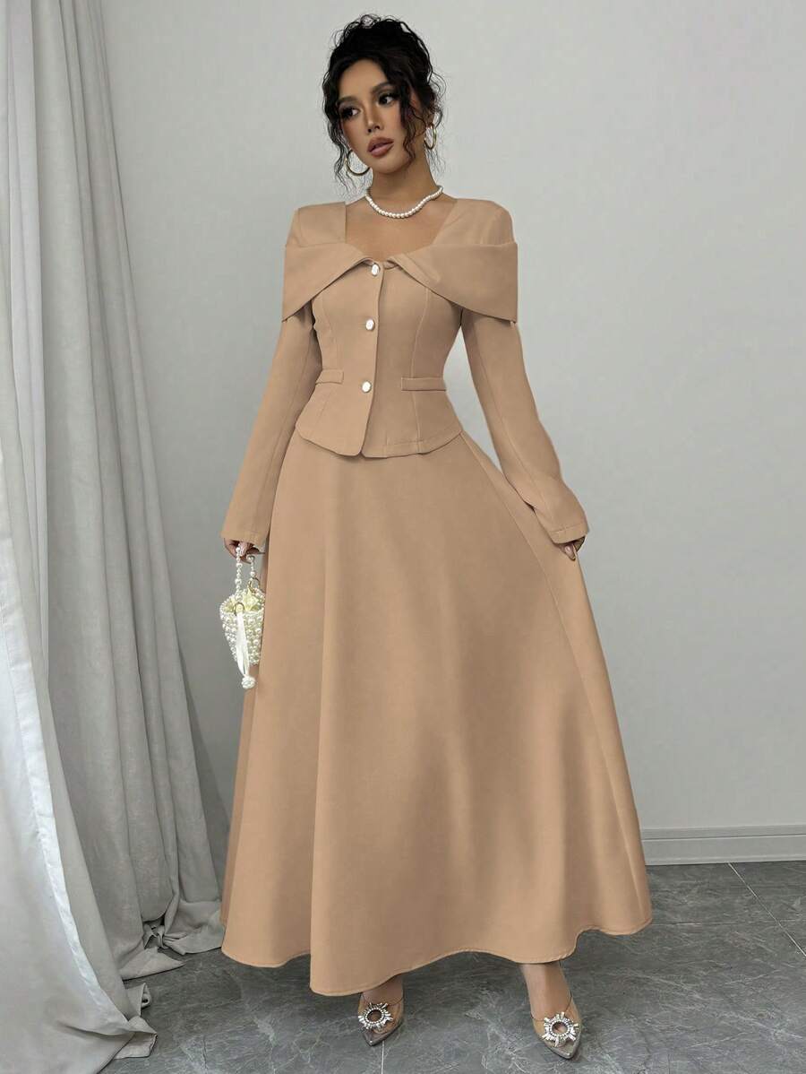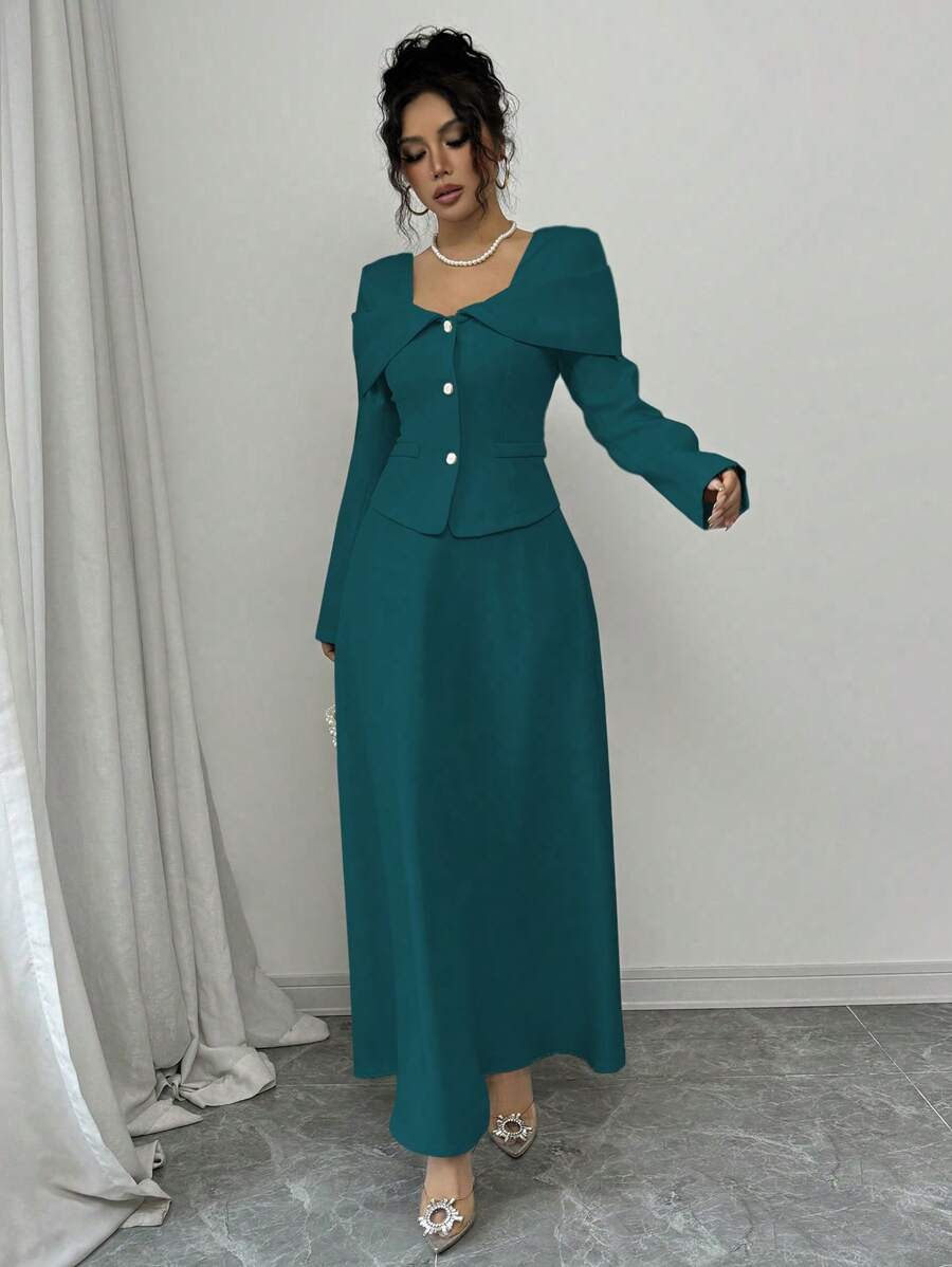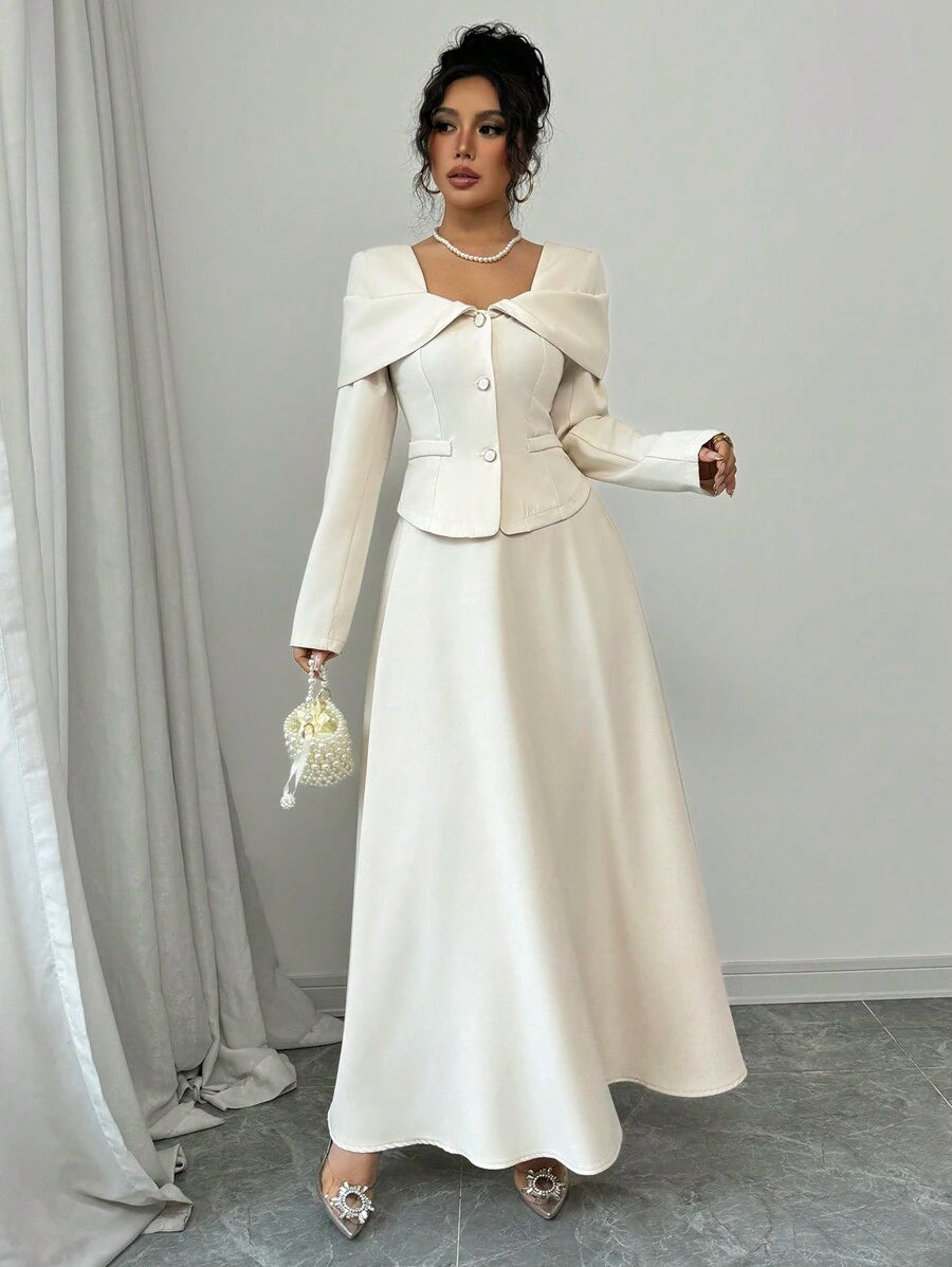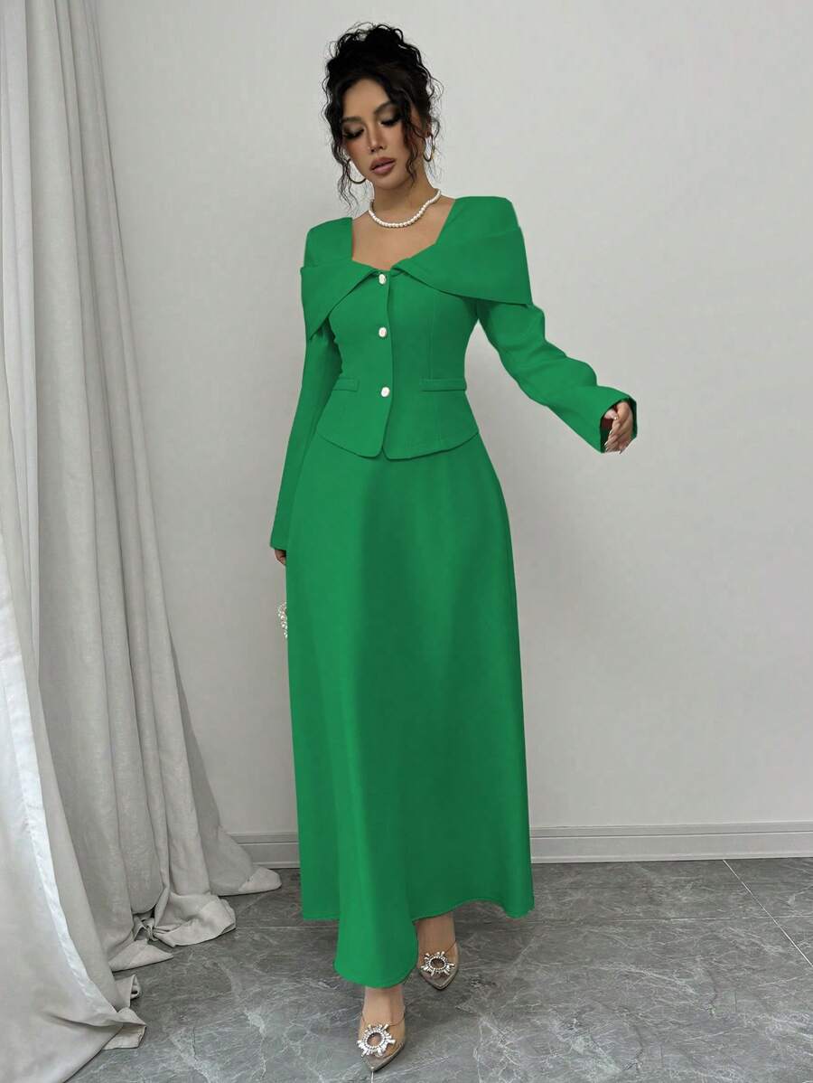 EMI Women's Elegant Commuter Solid Color Jacket And Extra-Long A-Line Skirt 2 Pieces Set Fall Cloth For Women
