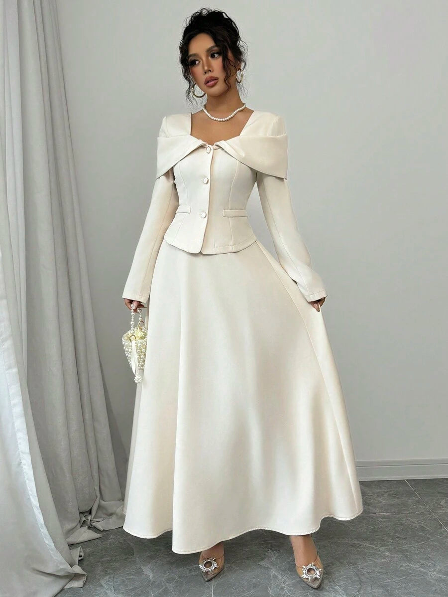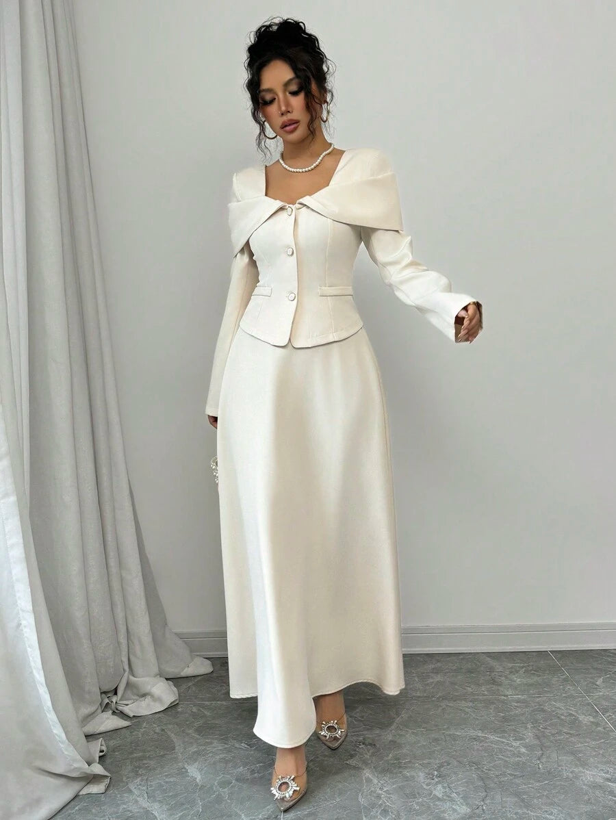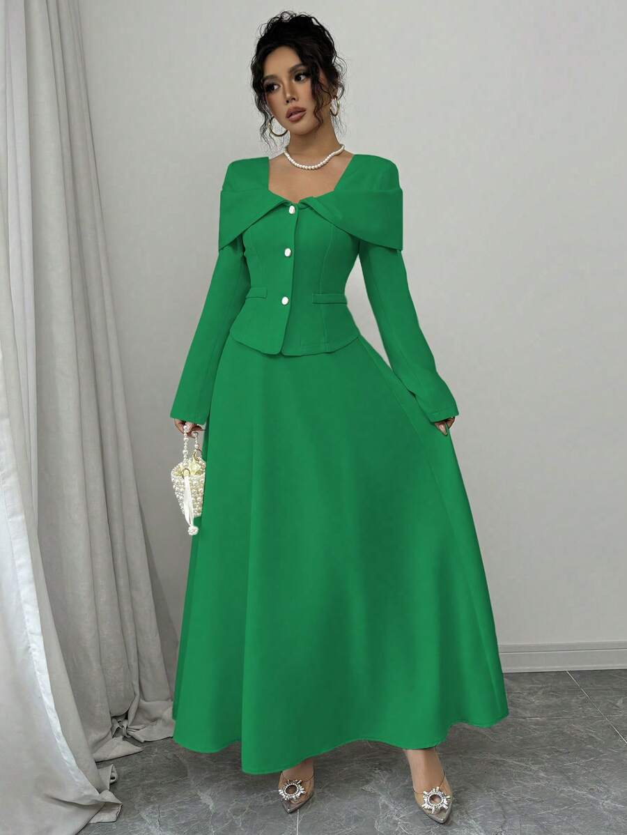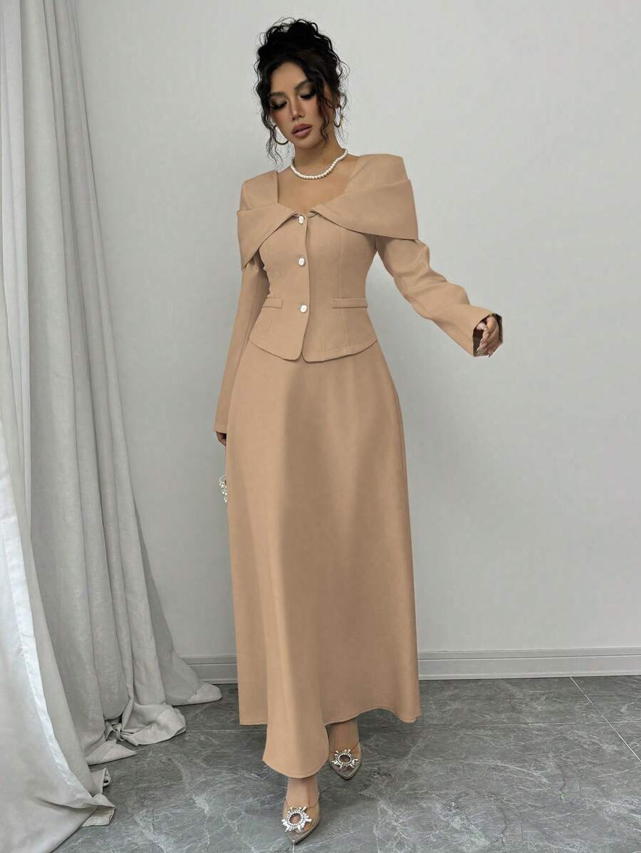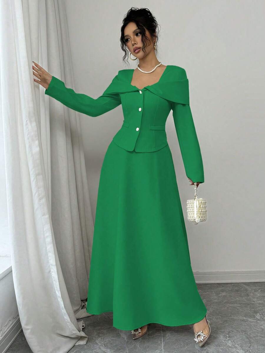 EMI Women's Elegant Commuter Solid Color Jacket And Extra-Long A-Line Skirt 2 Pieces Set Fall Cloth For Women