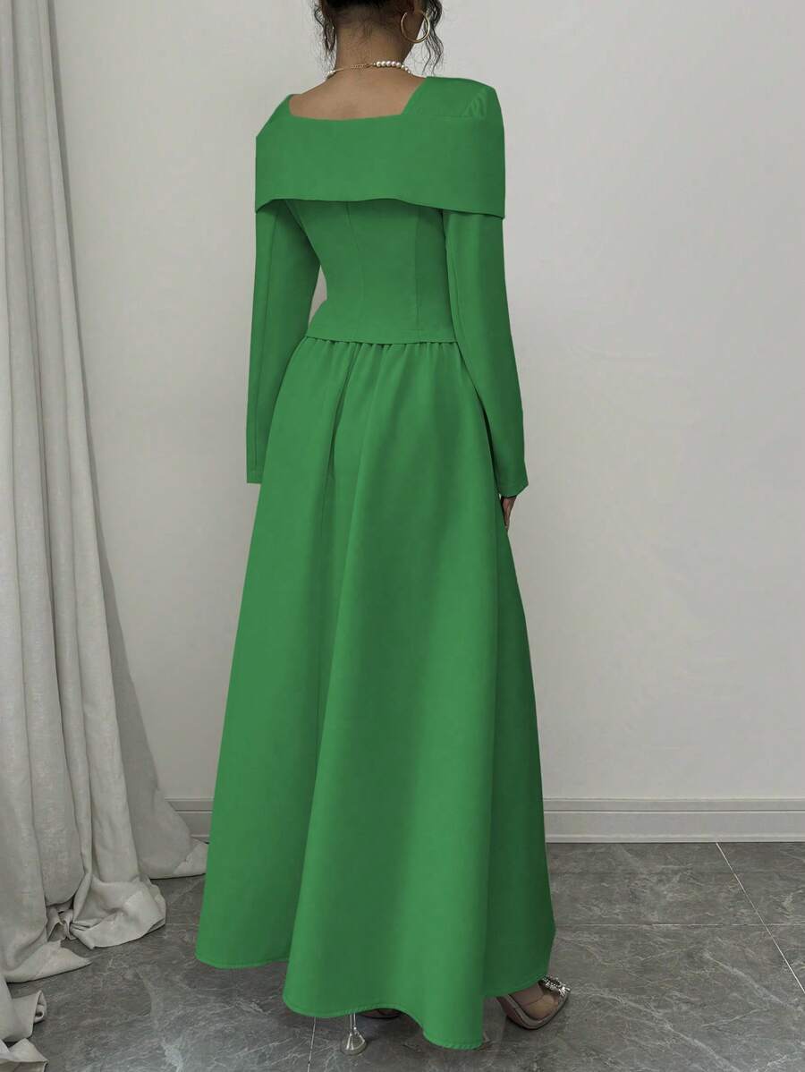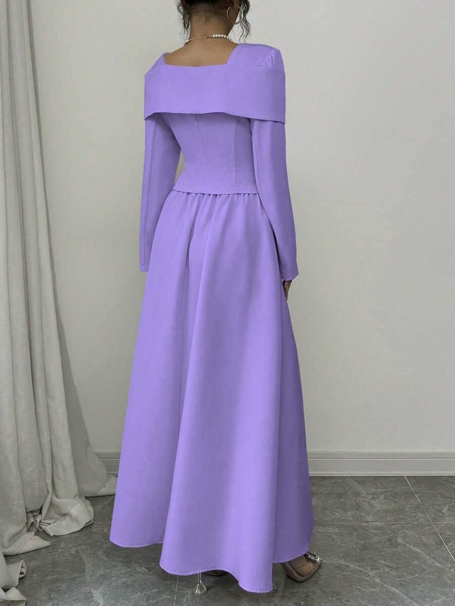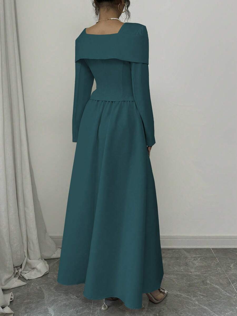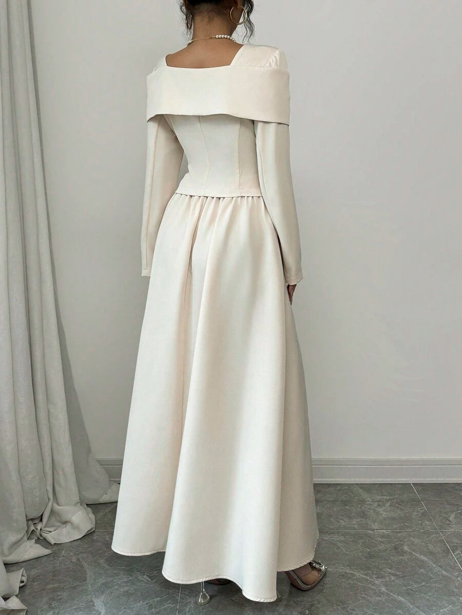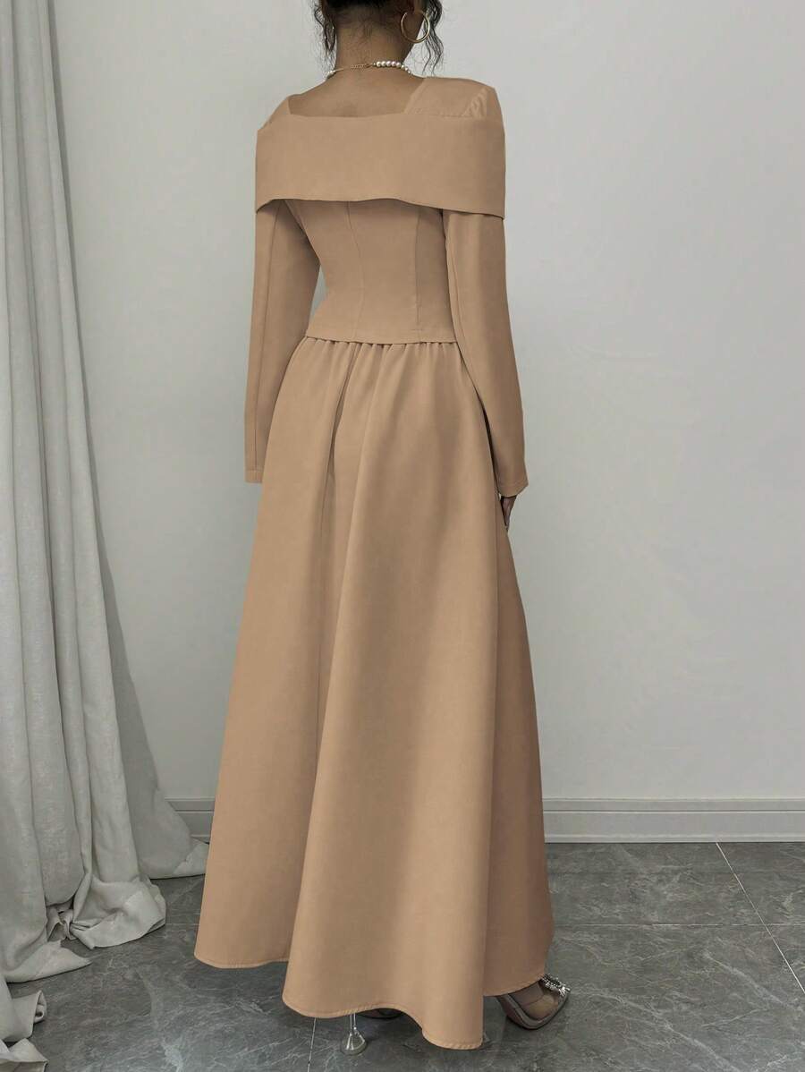 EMI Women's Elegant Commuter Solid Color Jacket And Extra-Long A-Line Skirt 2 Pieces Set Fall Cloth For Women