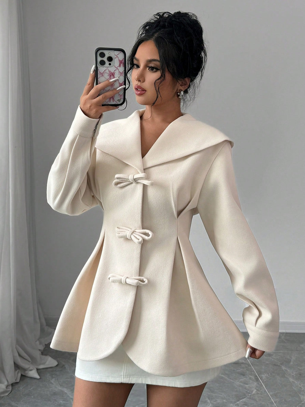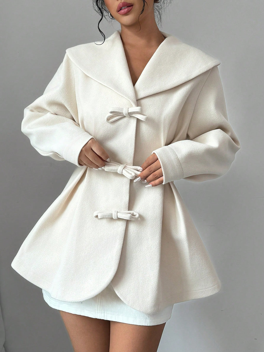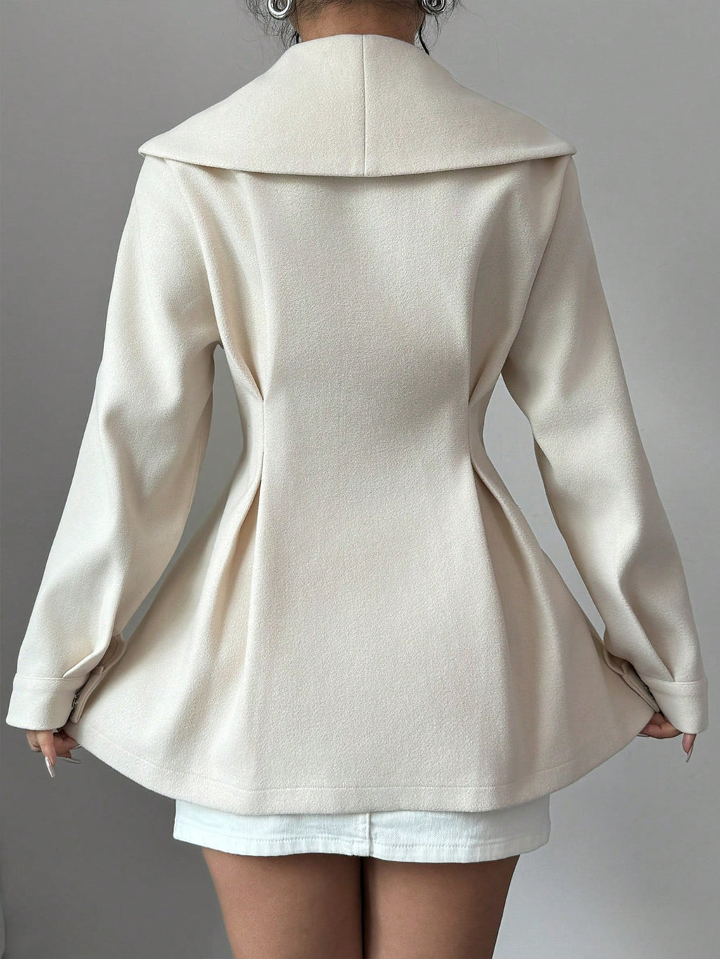 EMI Women's Solid Color Sailor Collar Button Front Elegant Long Sleeve Coat Fall Winter Cloth For Women