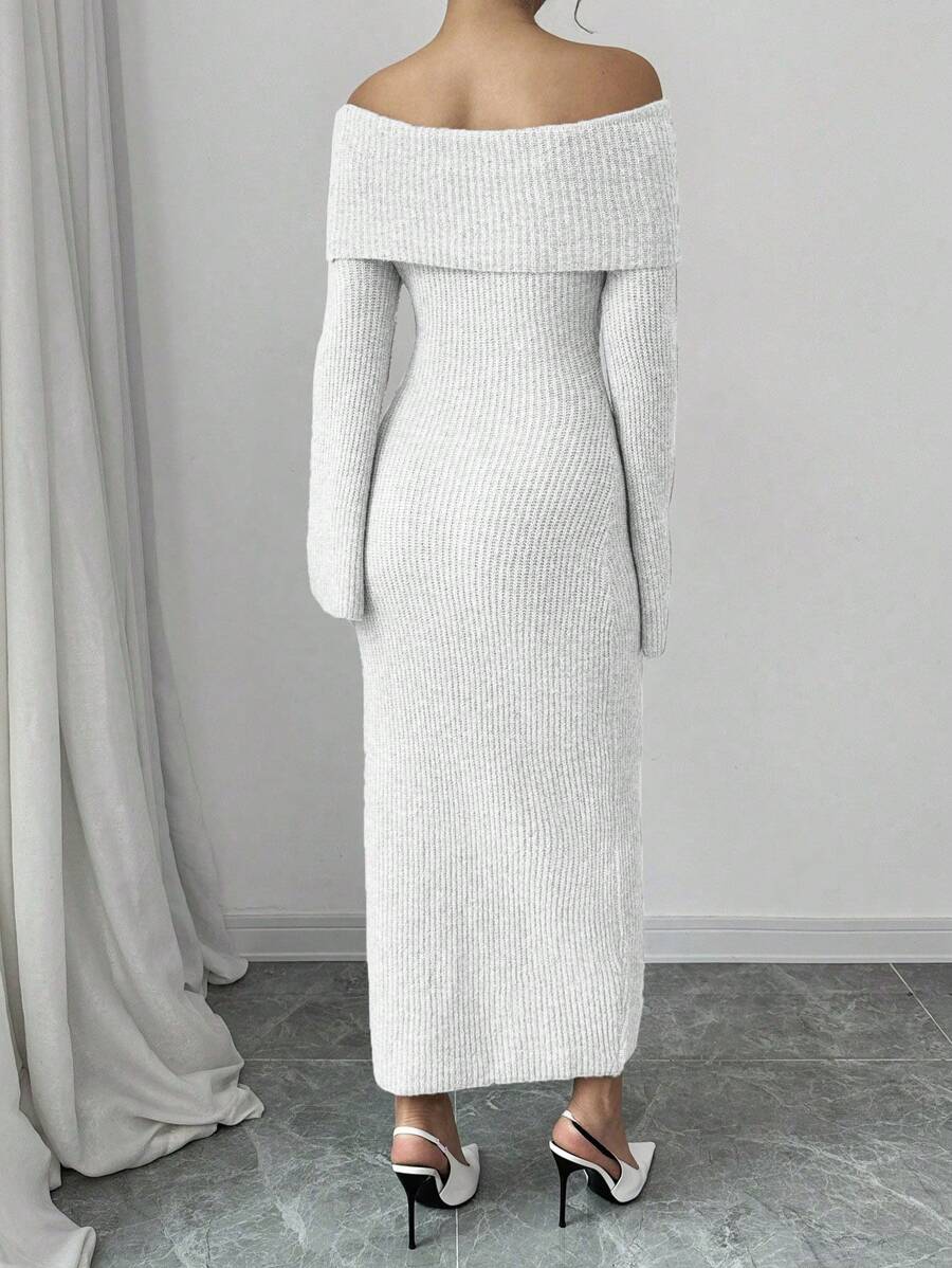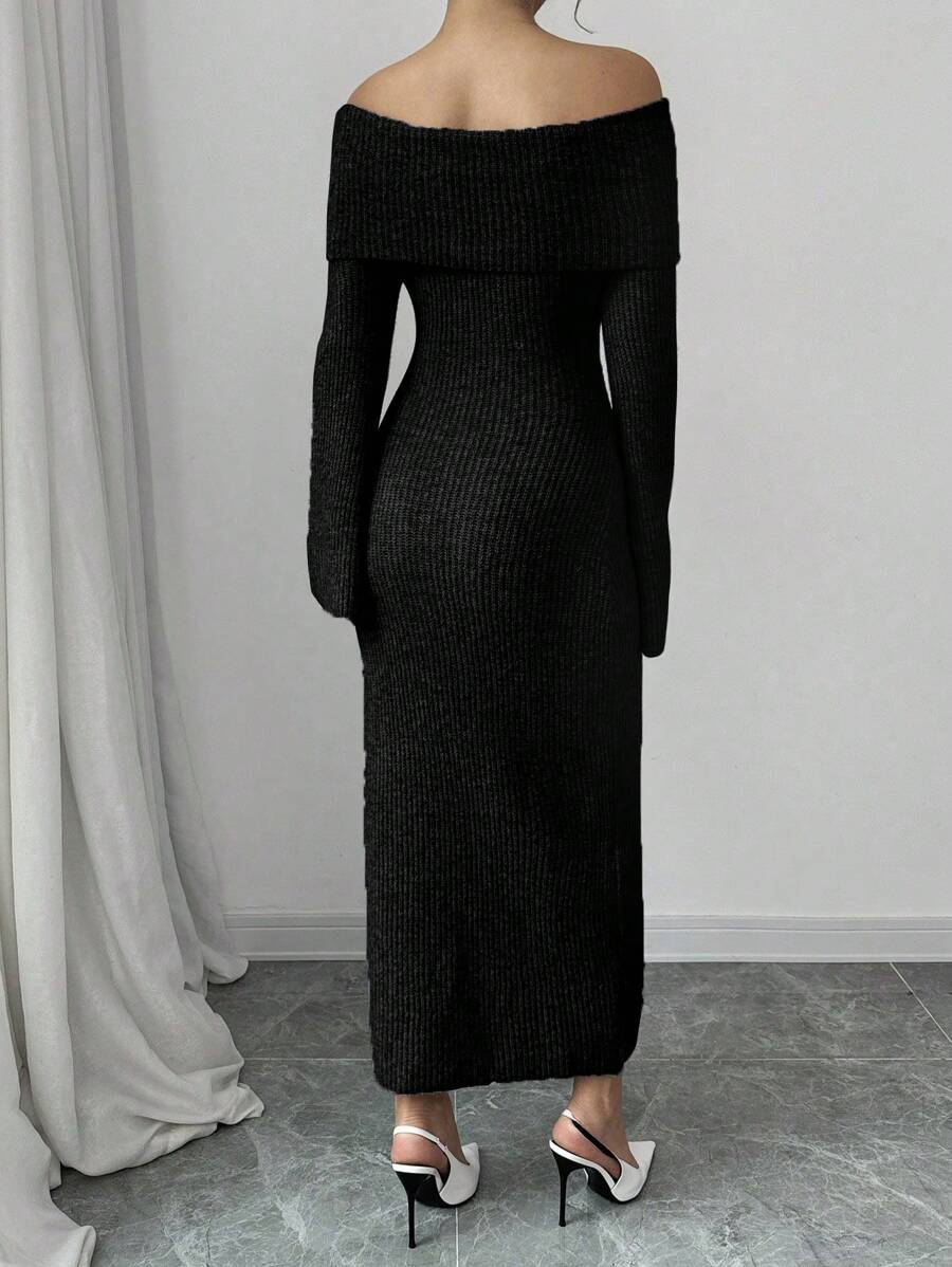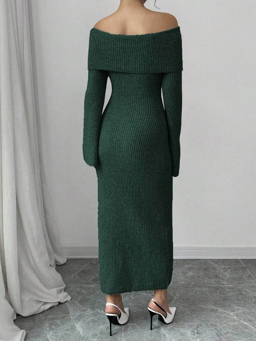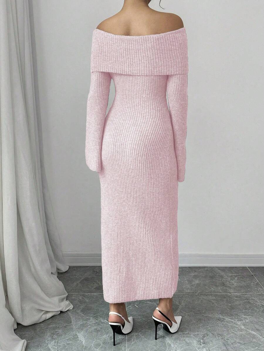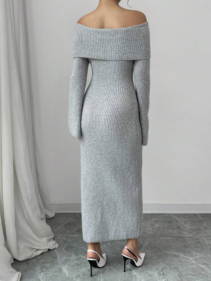 EMI Women's Solid Color Simple Off-Shoulder Long Sleeve Dress, Casual Fall Winter Cloth For Women