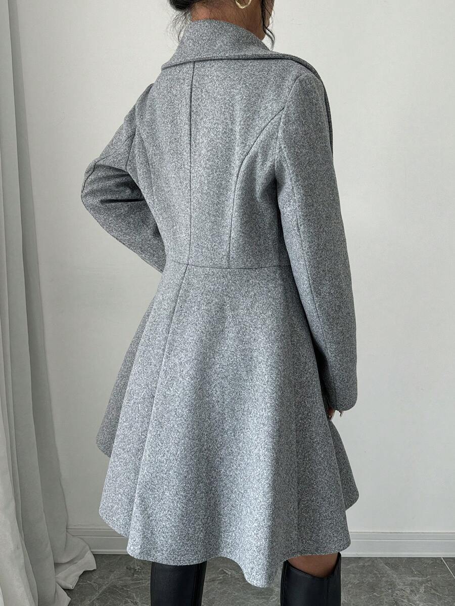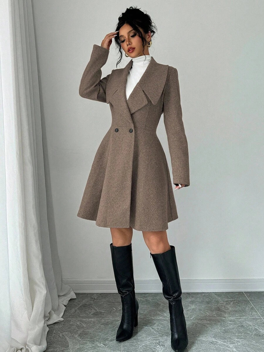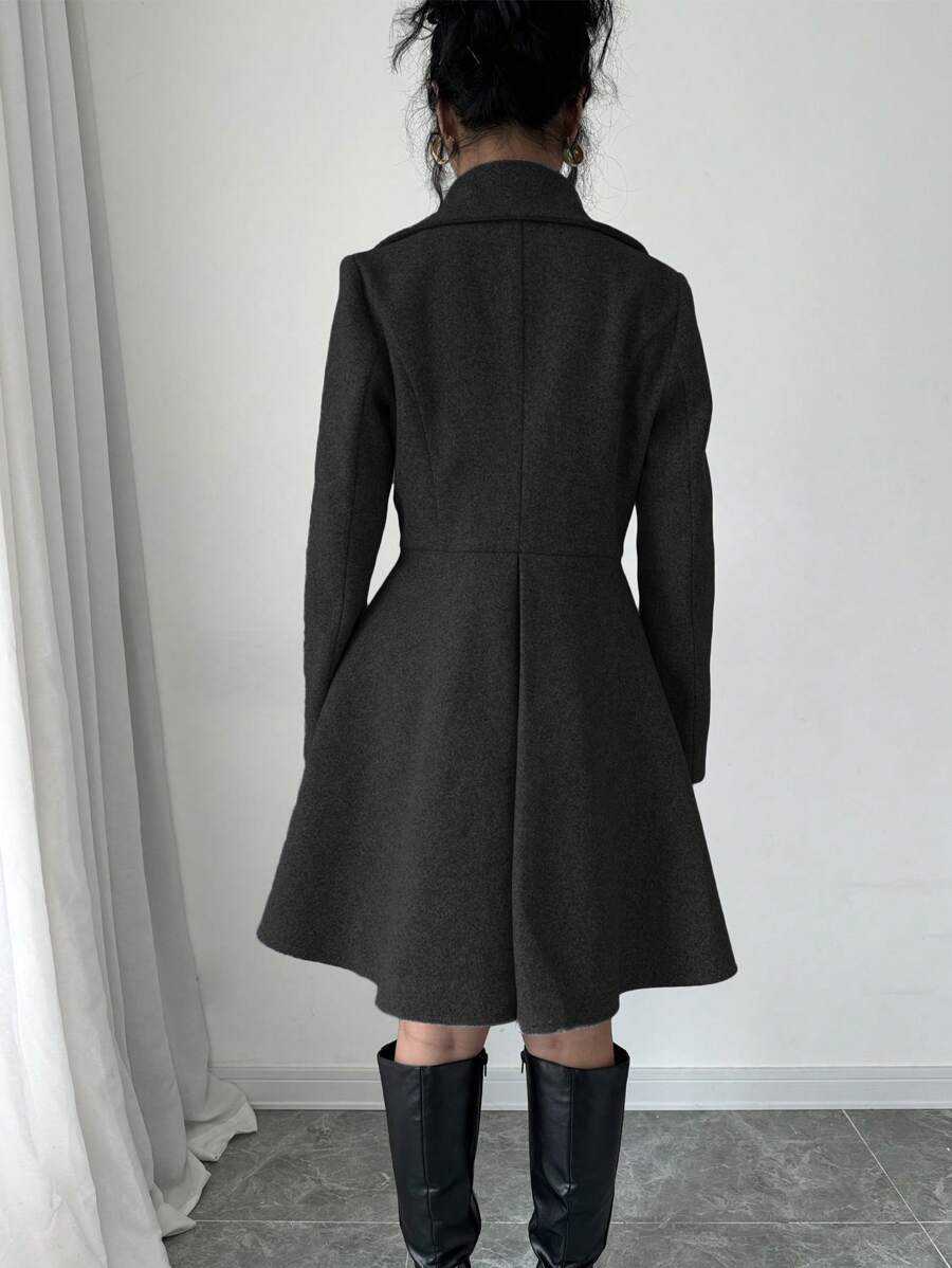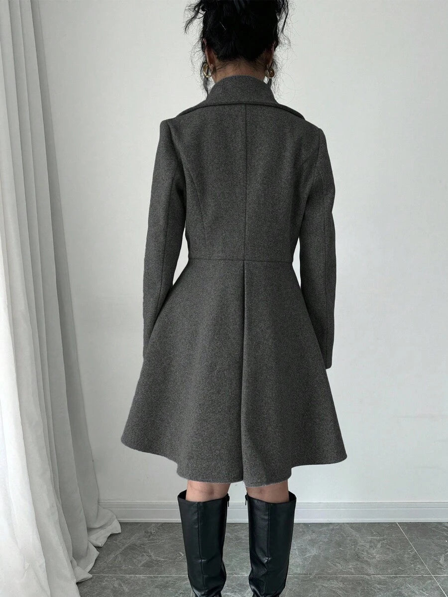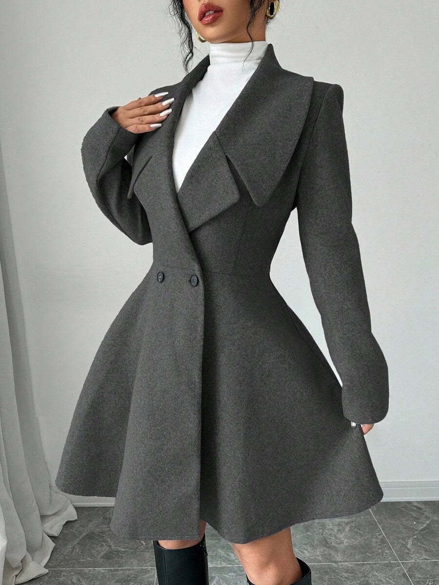 EMI Women's Solid Color Stand Collar Long Sleeve Double-Breasted Elegant Overcoat, Fall/Winter, Ladies Late Fall Elegant Button, Double Button Regular Sleeve Shawl Collar Loose Grey Tweed Plain Women Overcoats, Casual Daily Wear
