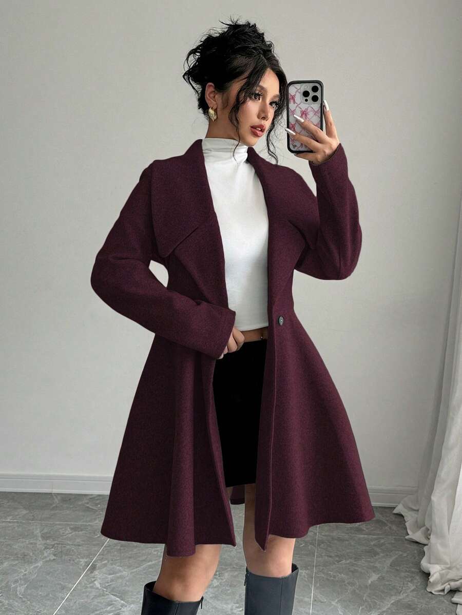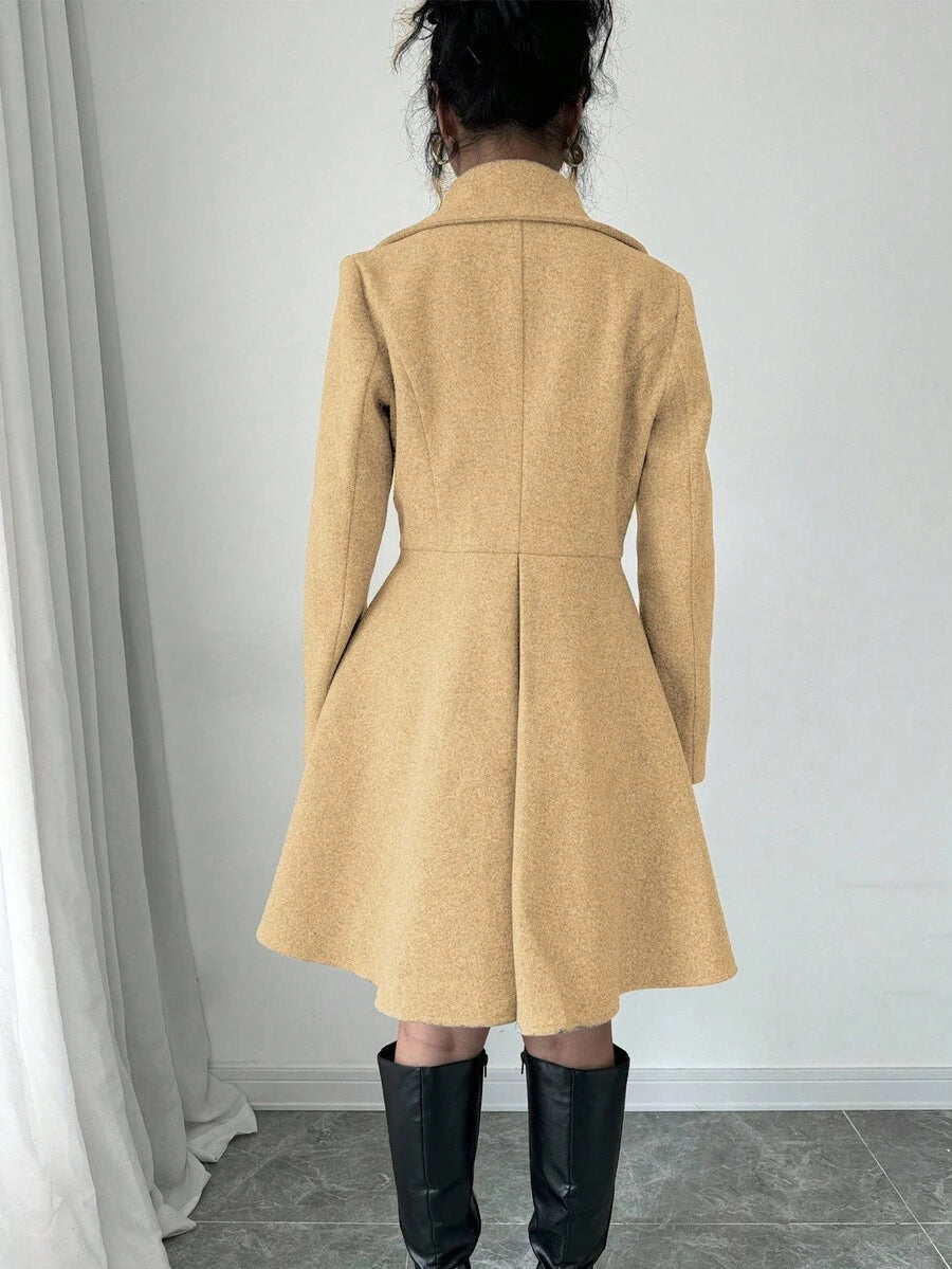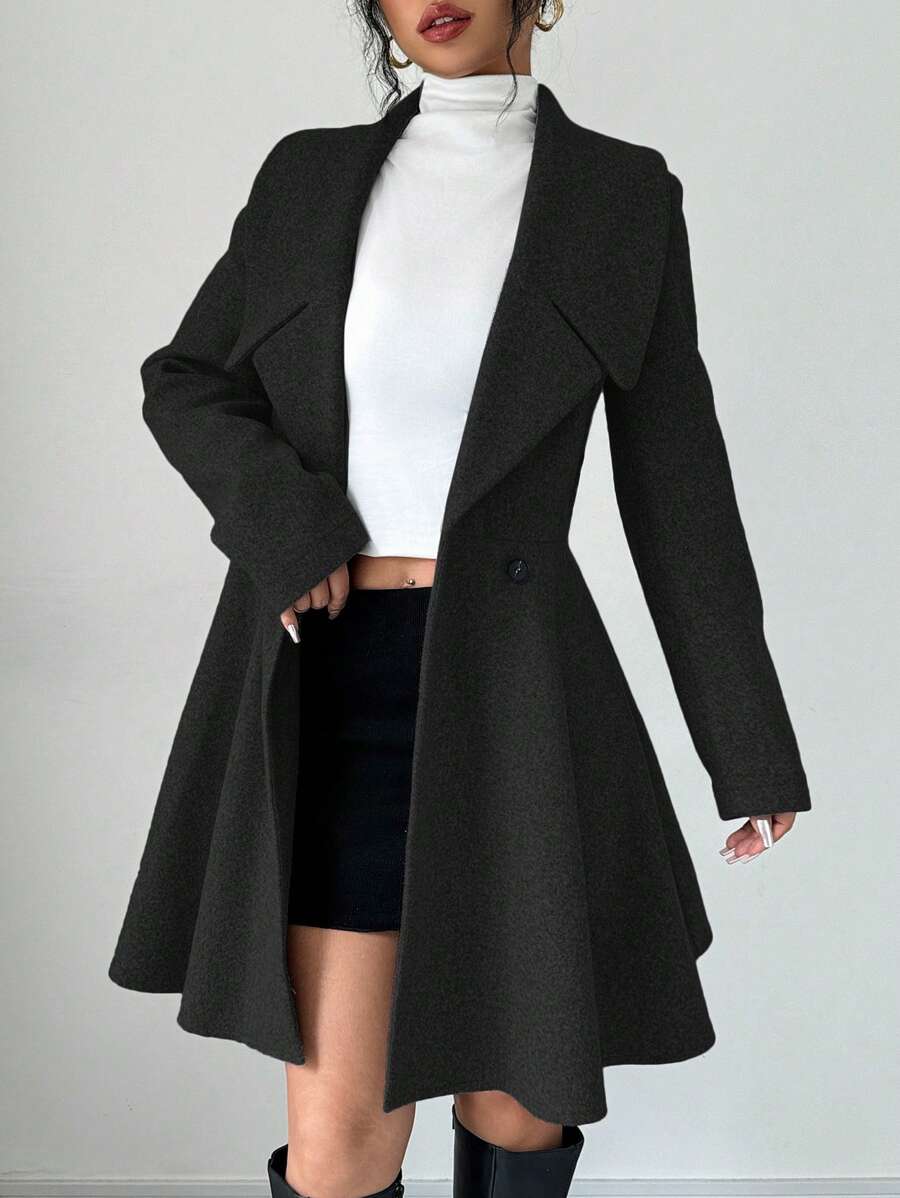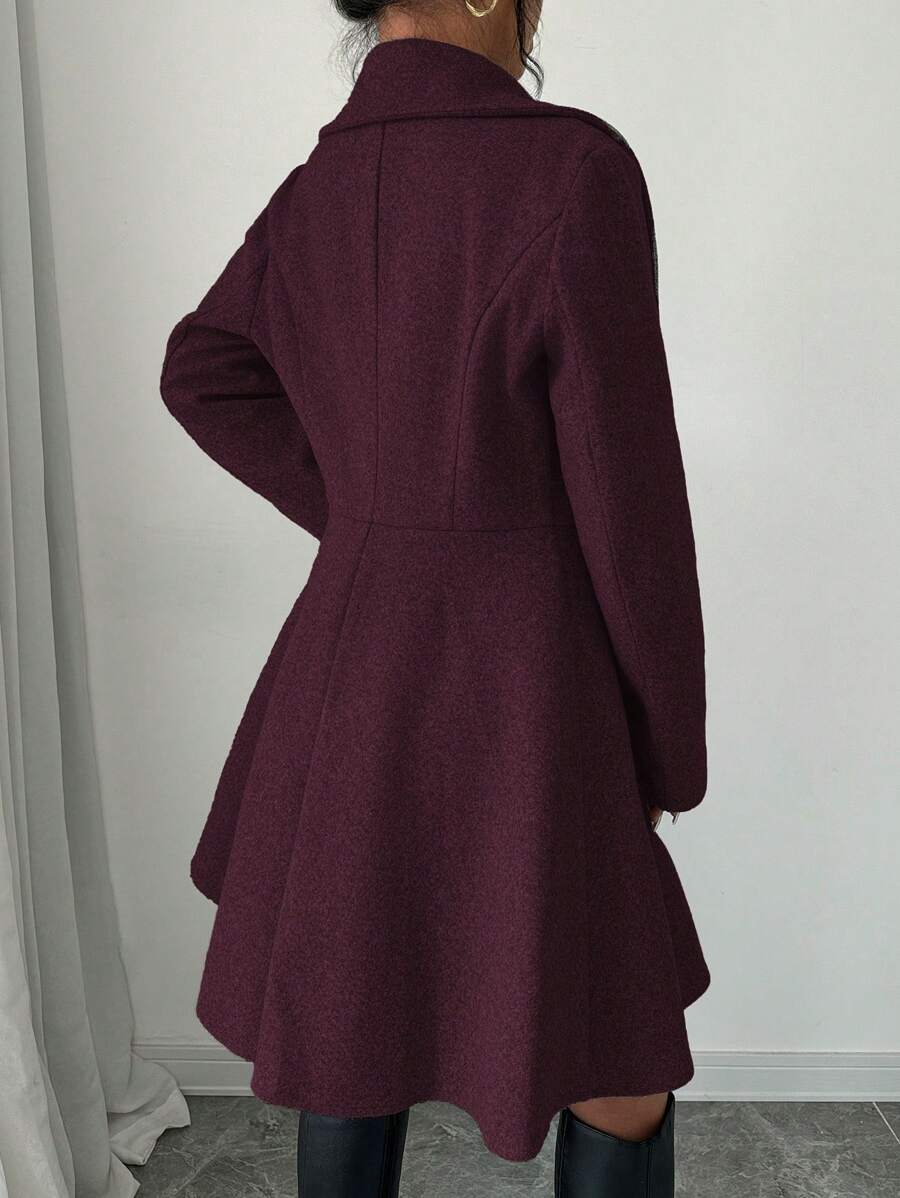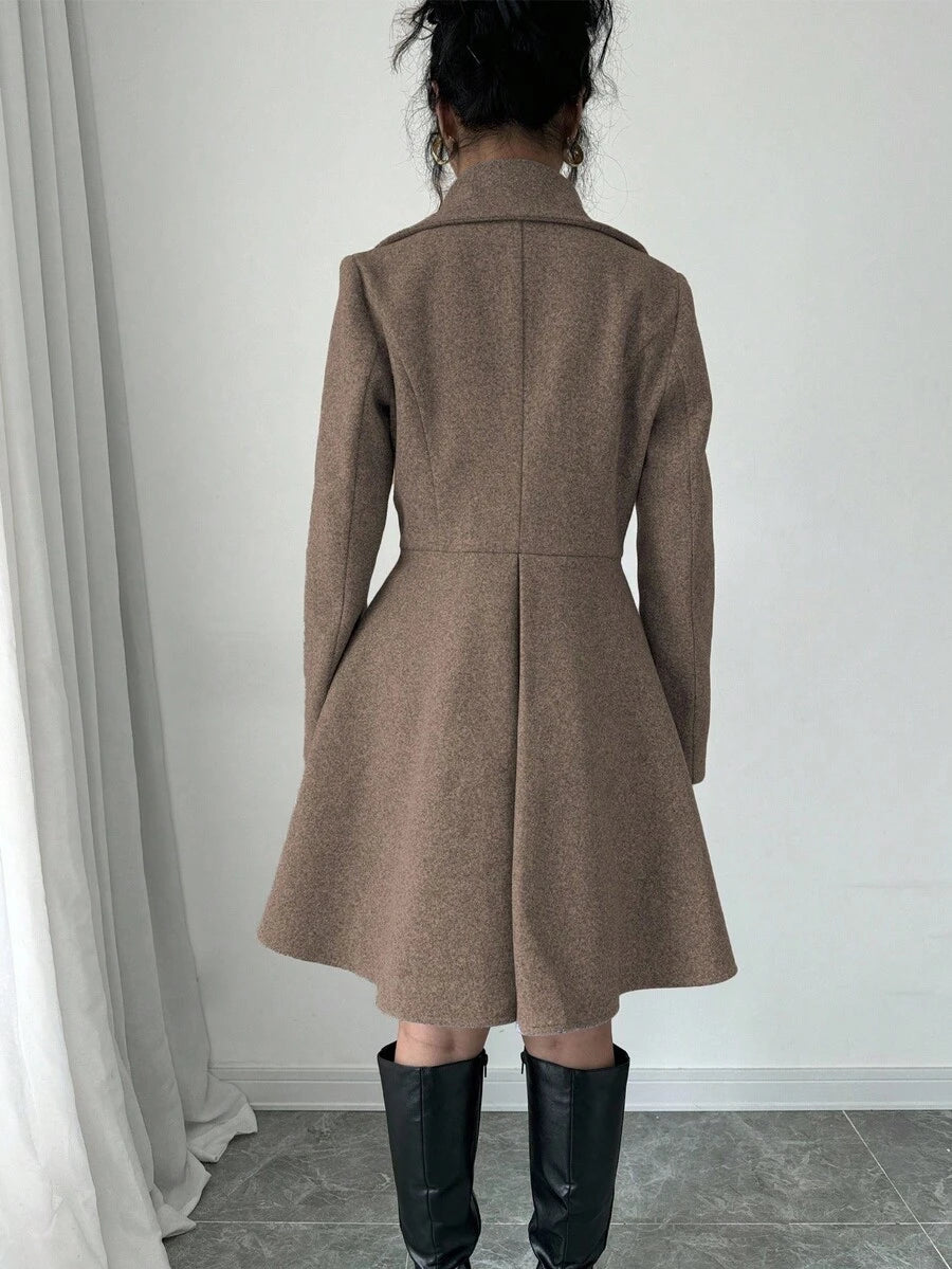 EMI Women's Solid Color Stand Collar Long Sleeve Double-Breasted Elegant Overcoat, Fall/Winter, Ladies Late Fall Elegant Button, Double Button Regular Sleeve Shawl Collar Loose Grey Tweed Plain Women Overcoats, Casual Daily Wear