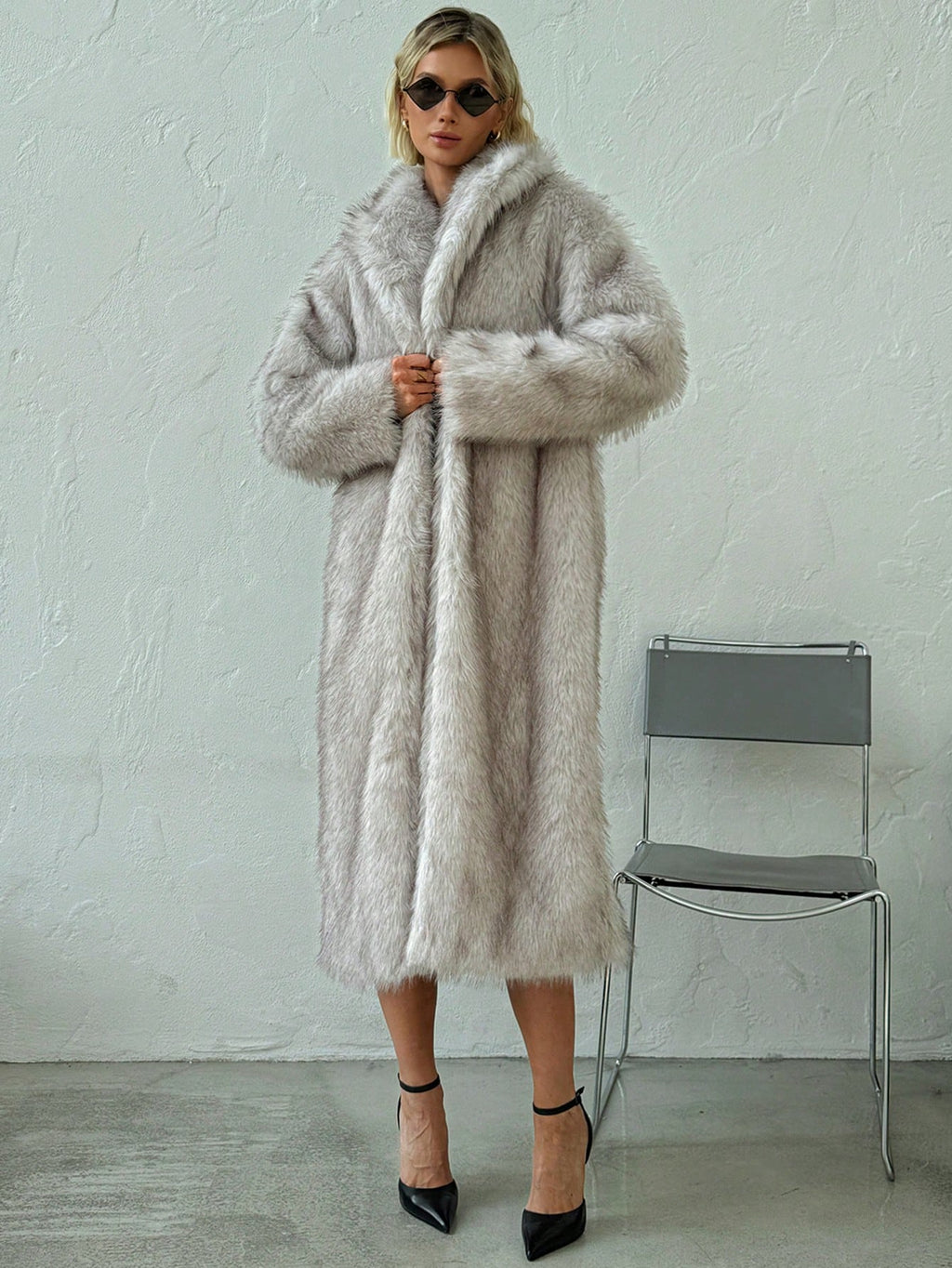 MAJA jesenja/zimska nova topla elegantna jakna za zabave, sastanke i izlazak, s rever-ovratnikom, dugi pahuljasti kaput, visokokvalitetni dizajn