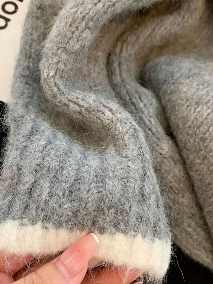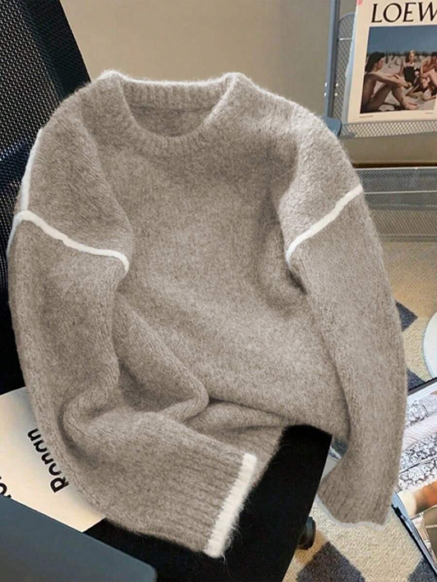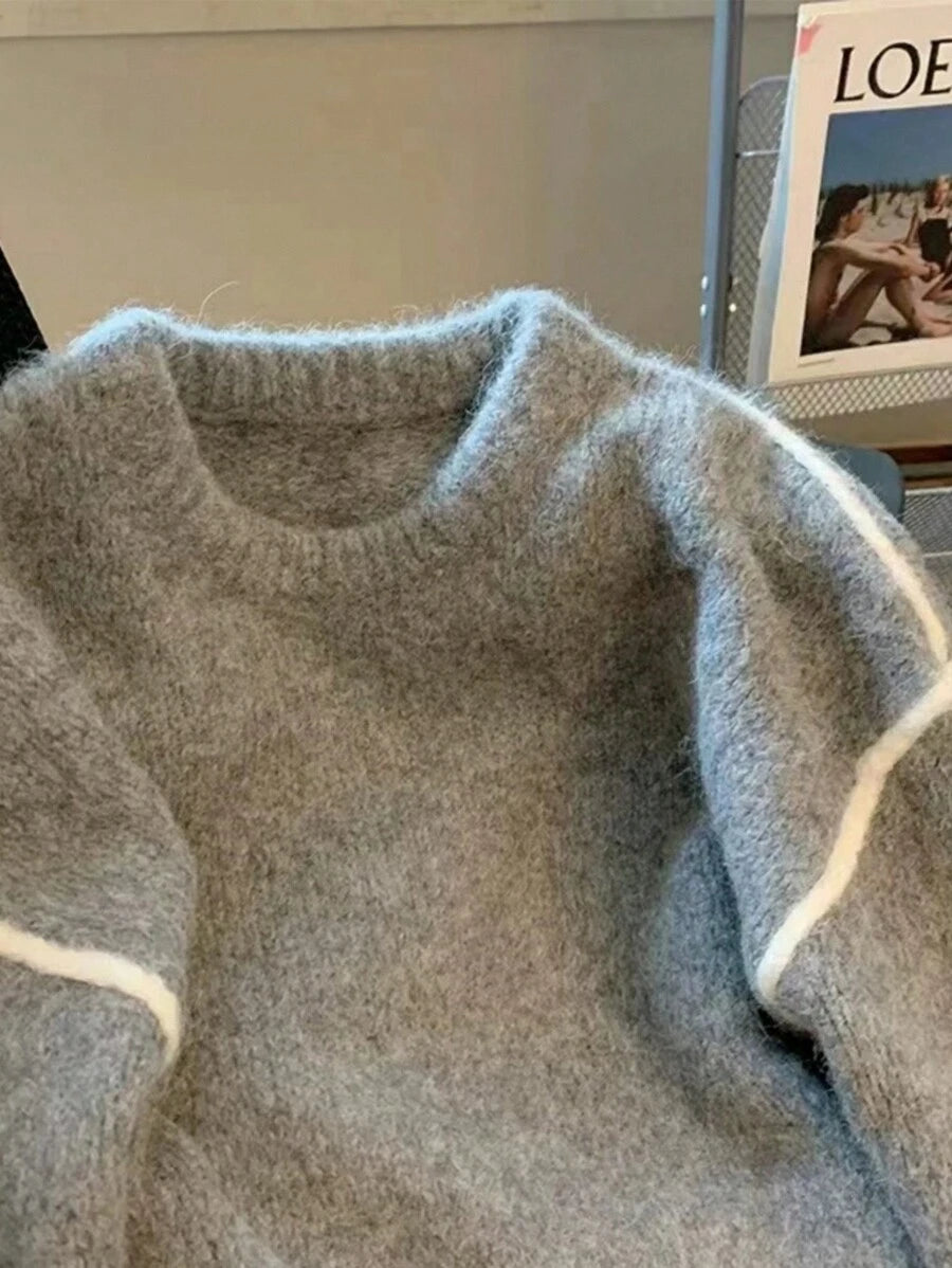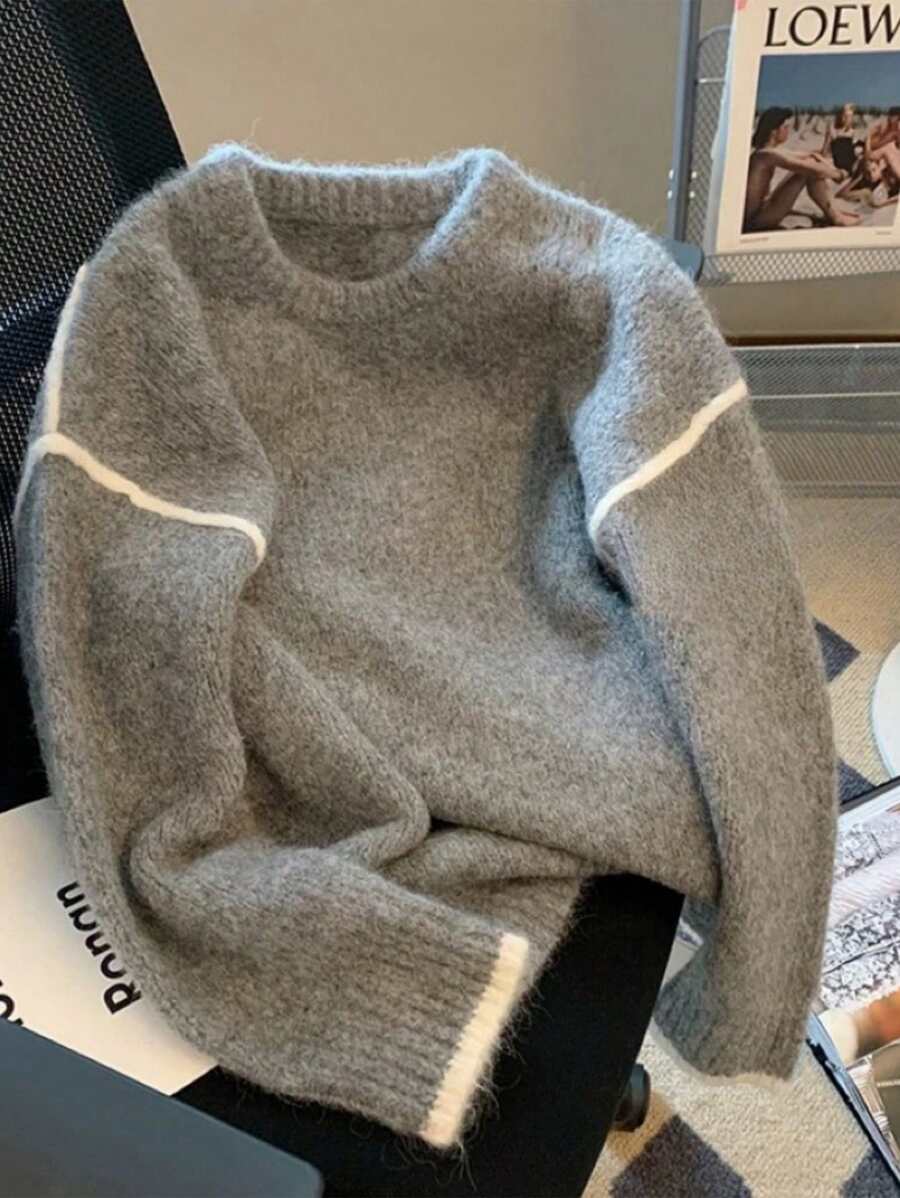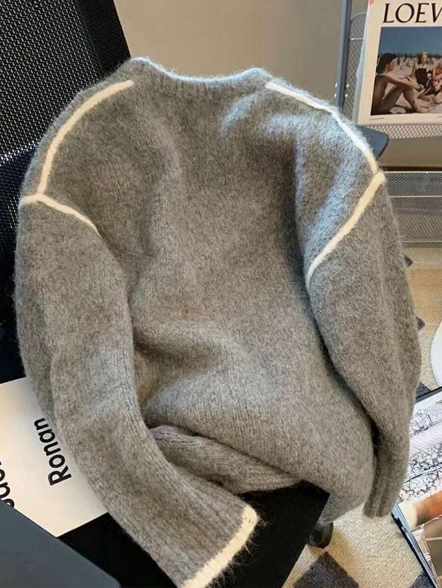 Franclia Retro Gray Knitted Sweater For Women, Soft Slouchy Oversized Pullover, Autumn/Winter 2024 New Arrival Fall