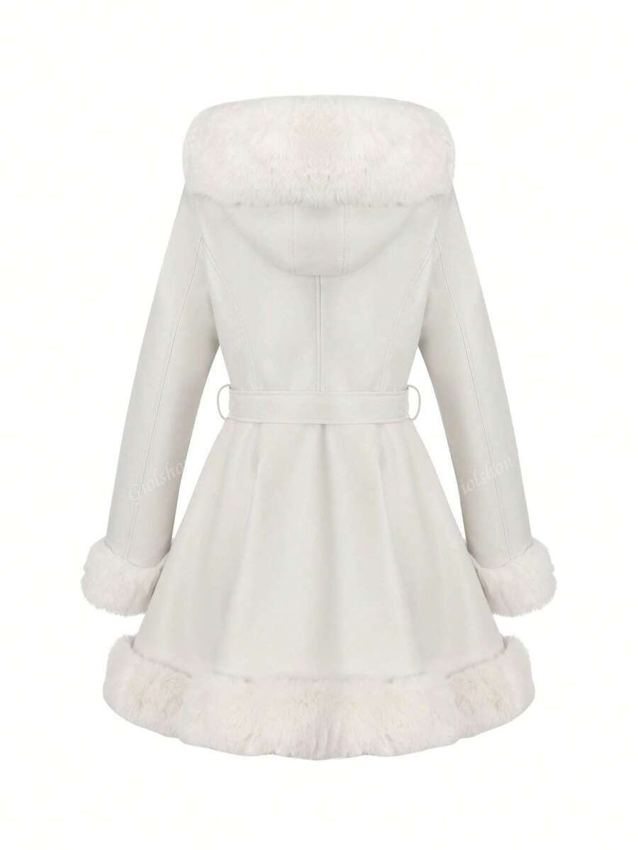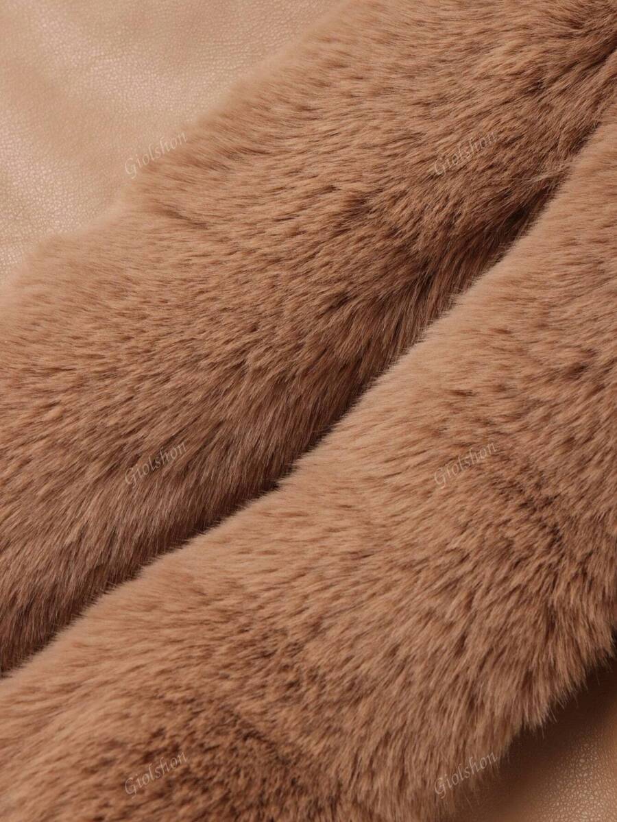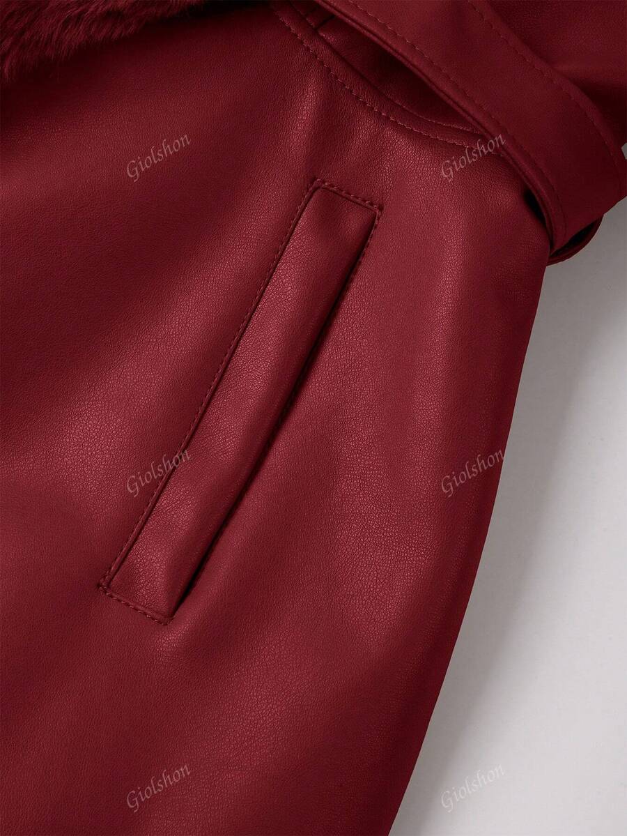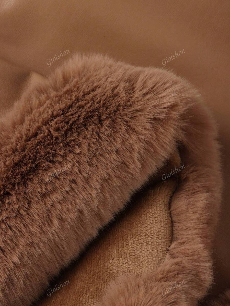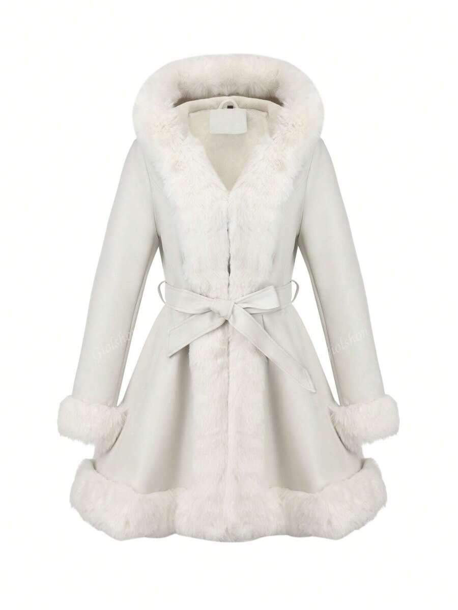 Giolshon ženska PU jakna s postavom od umjetnog krzna, kapuljačom i pojasom — jednostavna i stilizovana za ovu jesen i zimsku sezonu