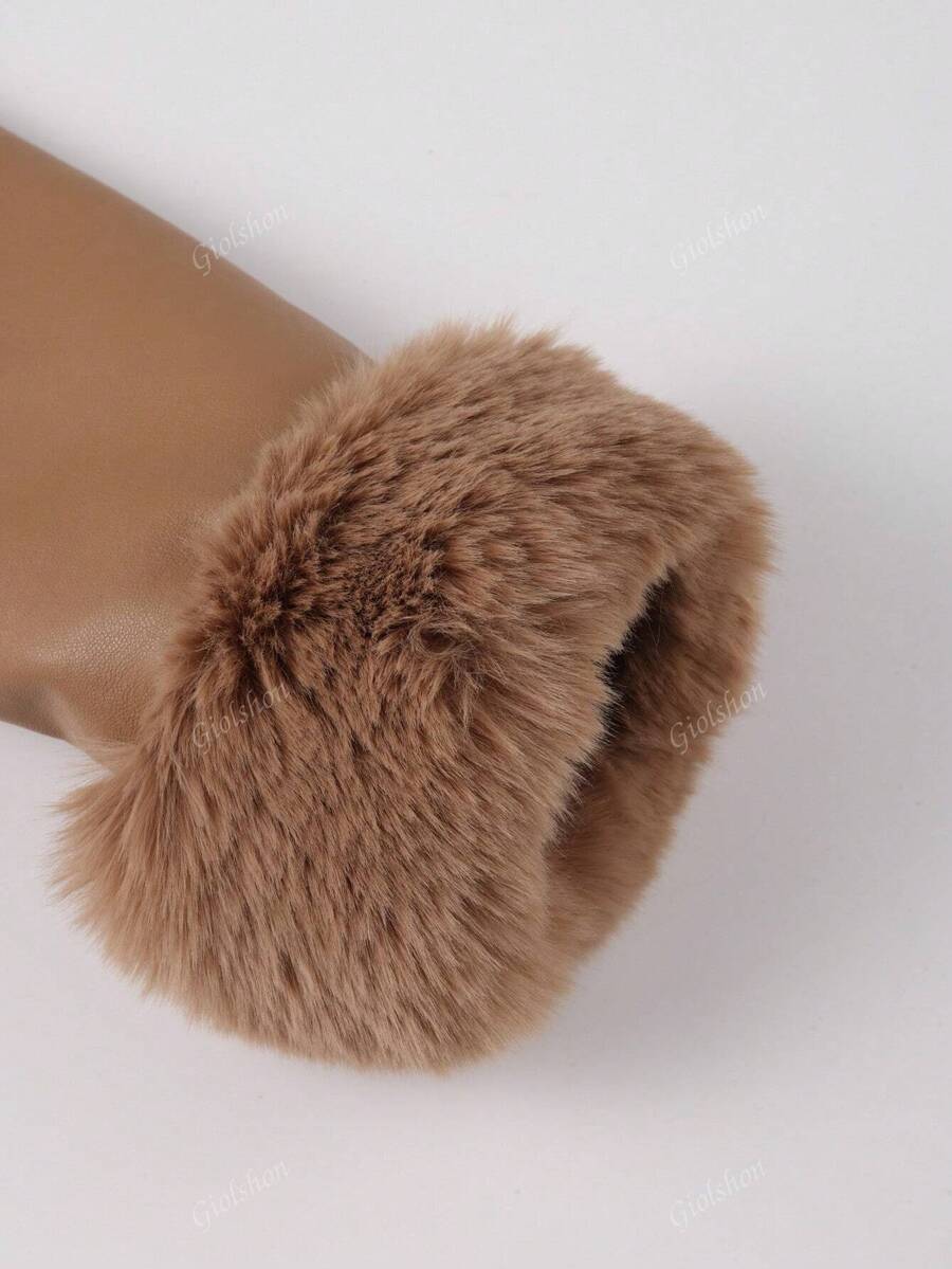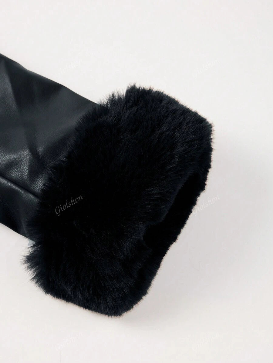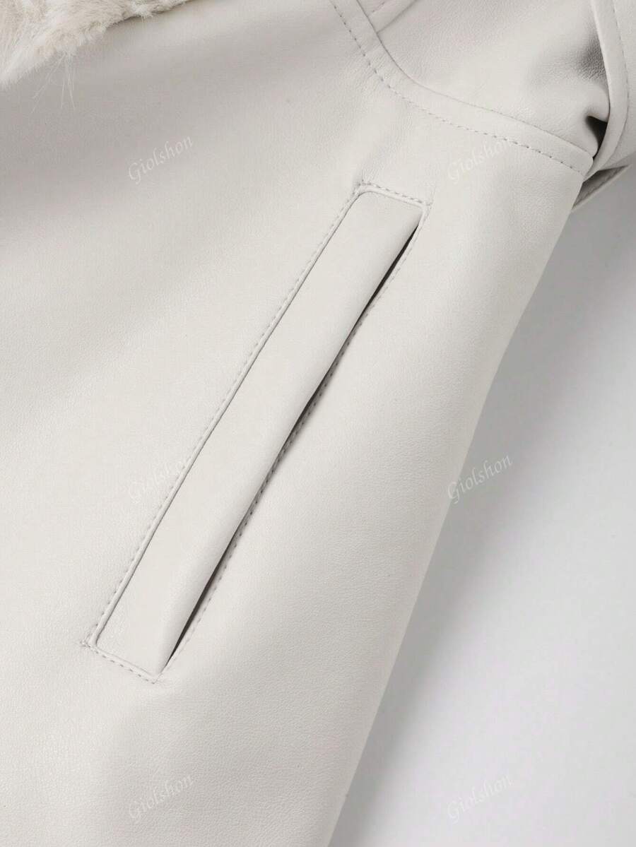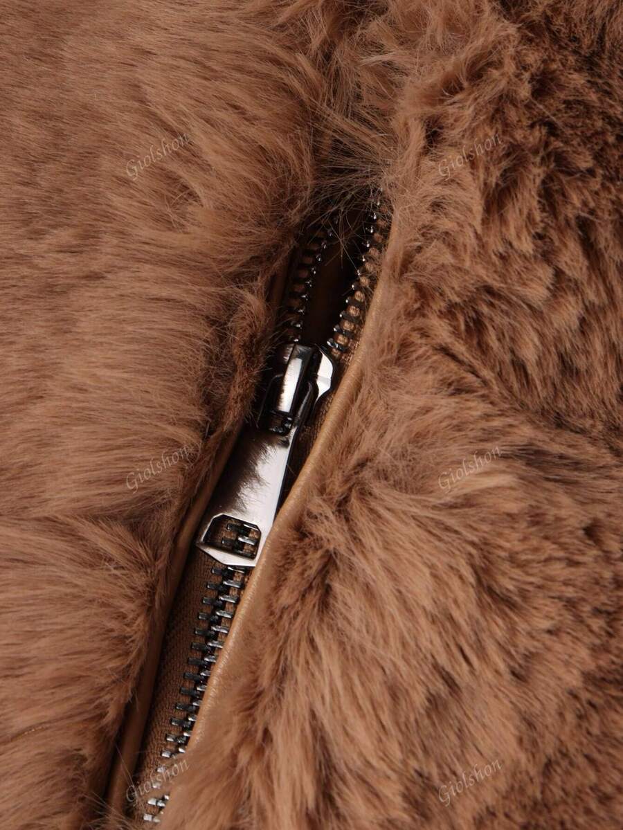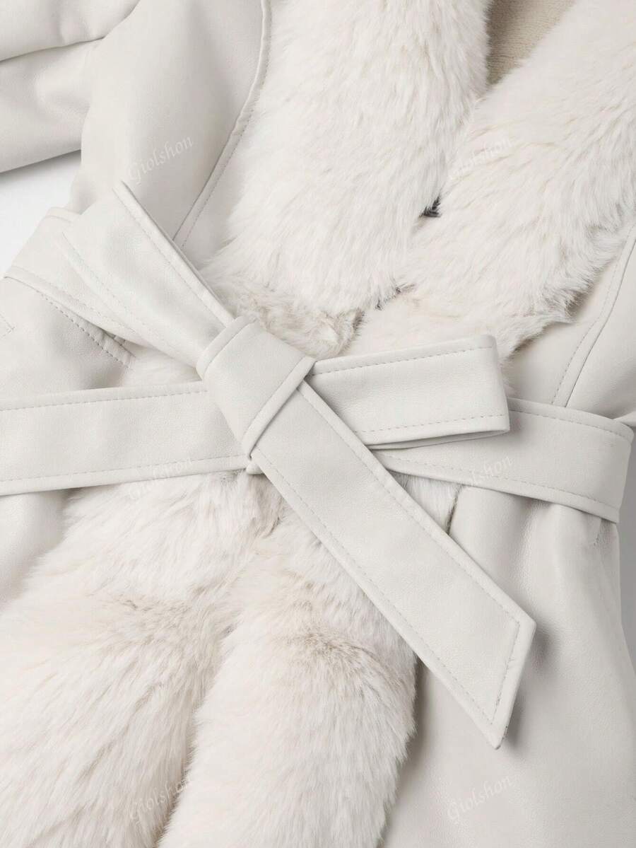 Giolshon ženska PU jakna s postavom od umjetnog krzna, kapuljačom i pojasom — jednostavna i stilizovana za ovu jesen i zimsku sezonu