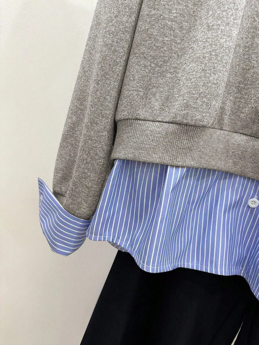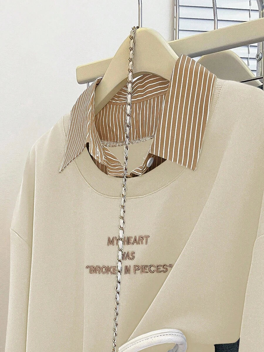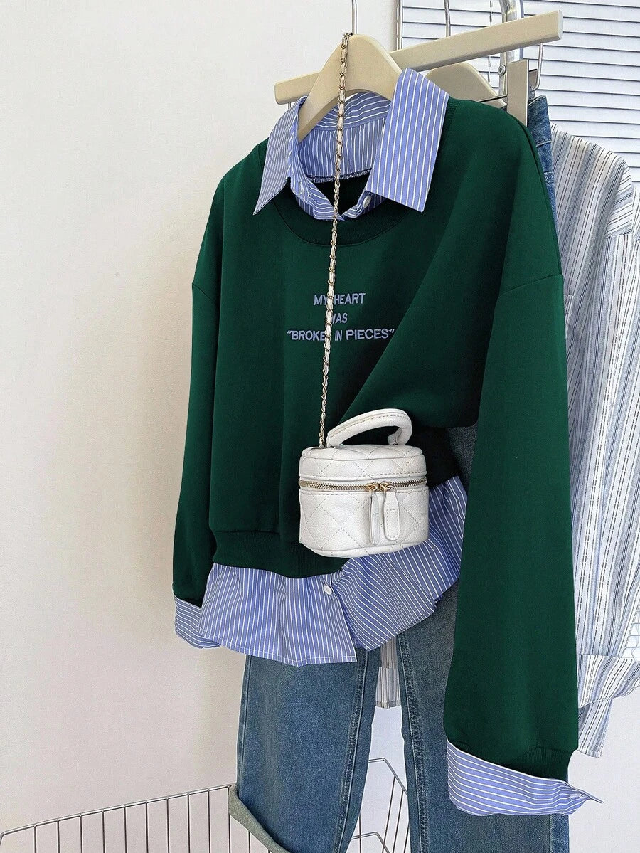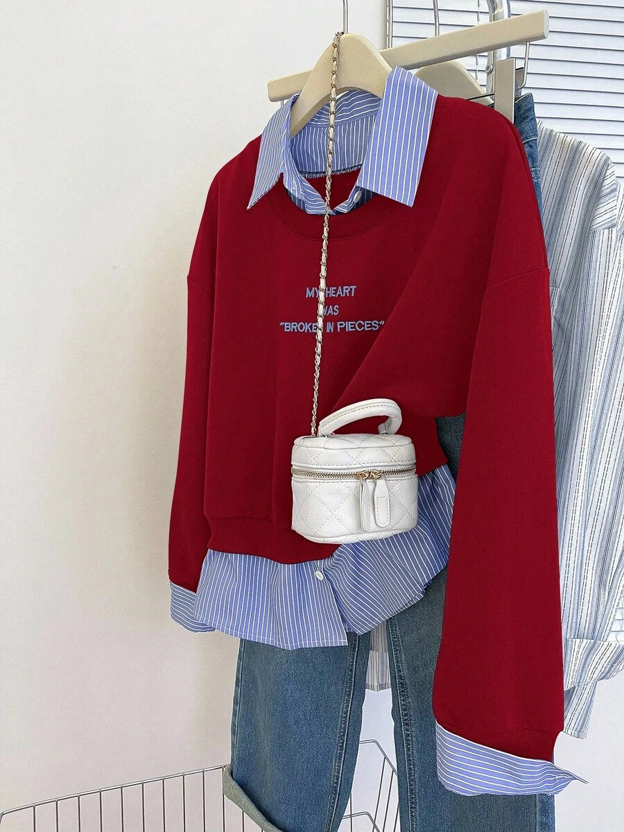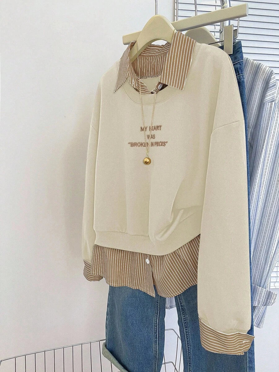 Glimmora Women's Fashionable Casual 2 In 1 Collared Long Sleeve Sweatshirt Pullover Fall