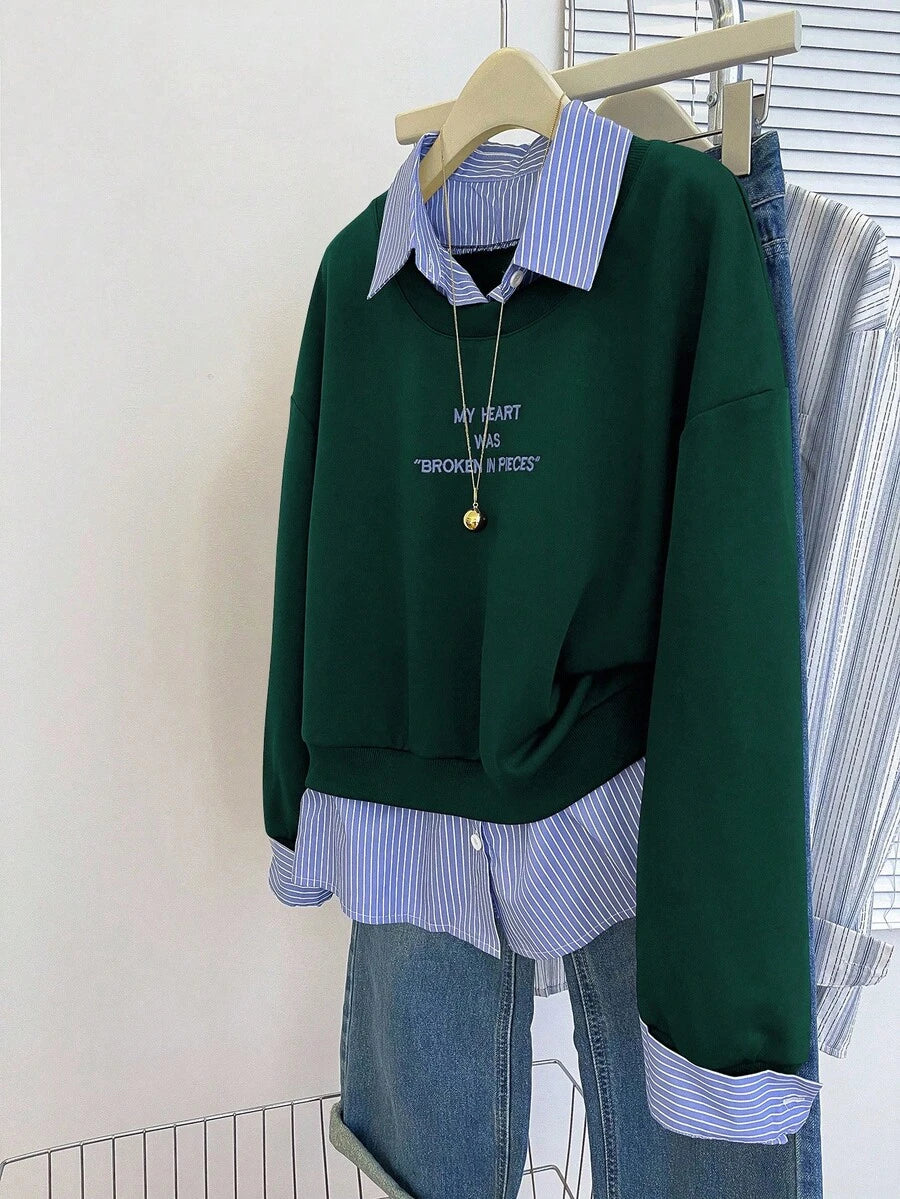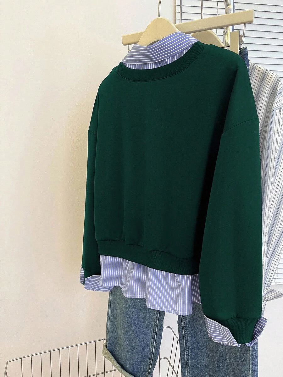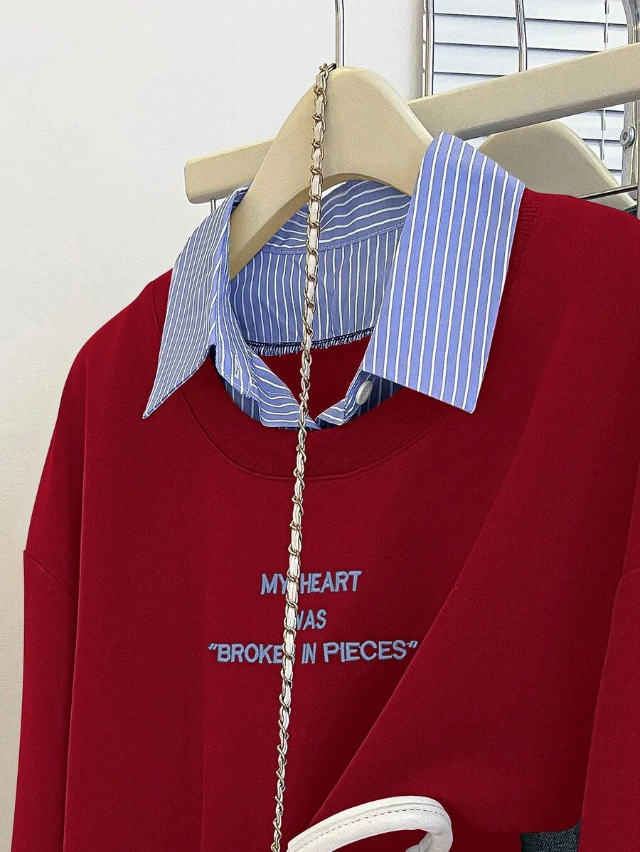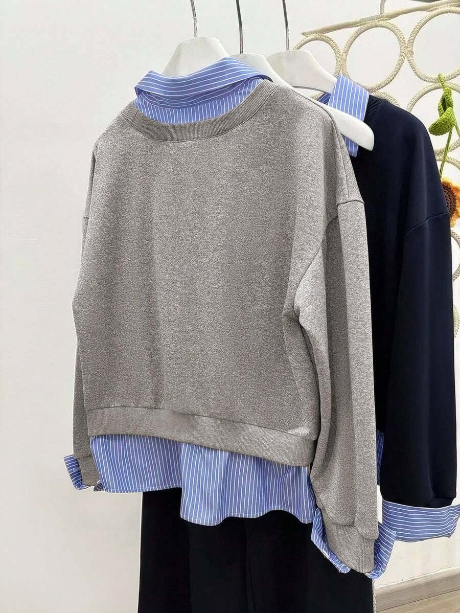 Glimmora Women's Fashionable Casual 2 In 1 Collared Long Sleeve Sweatshirt Pullover Fall