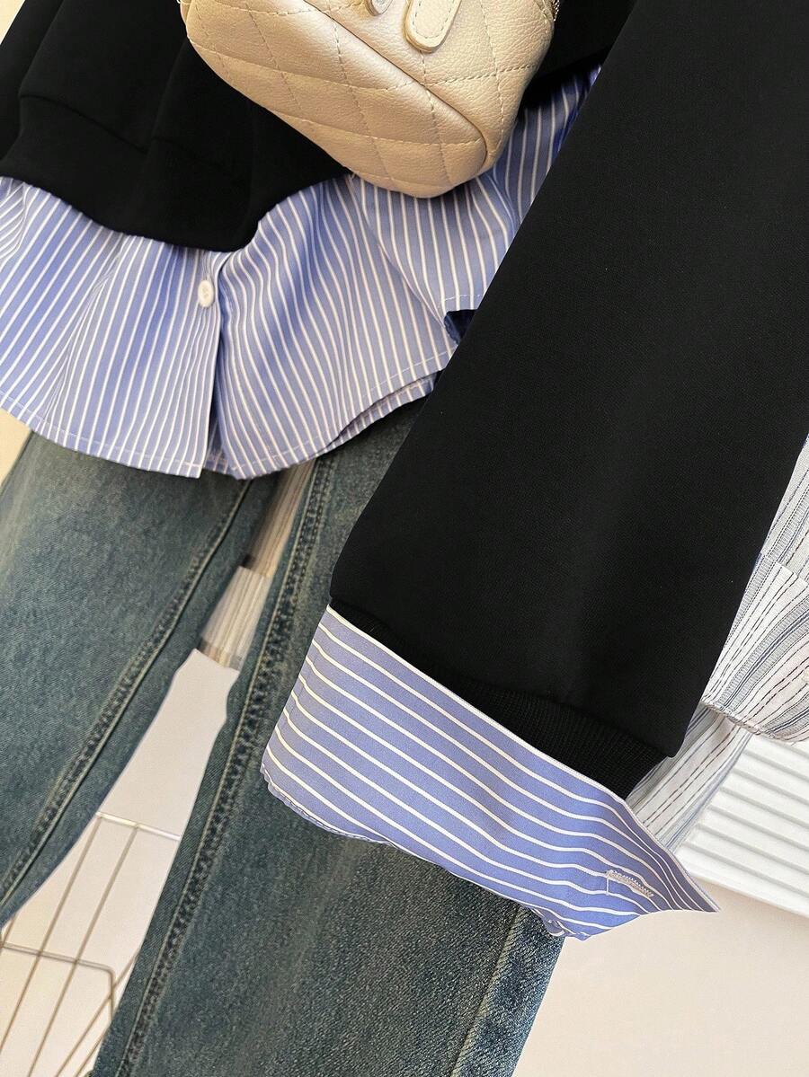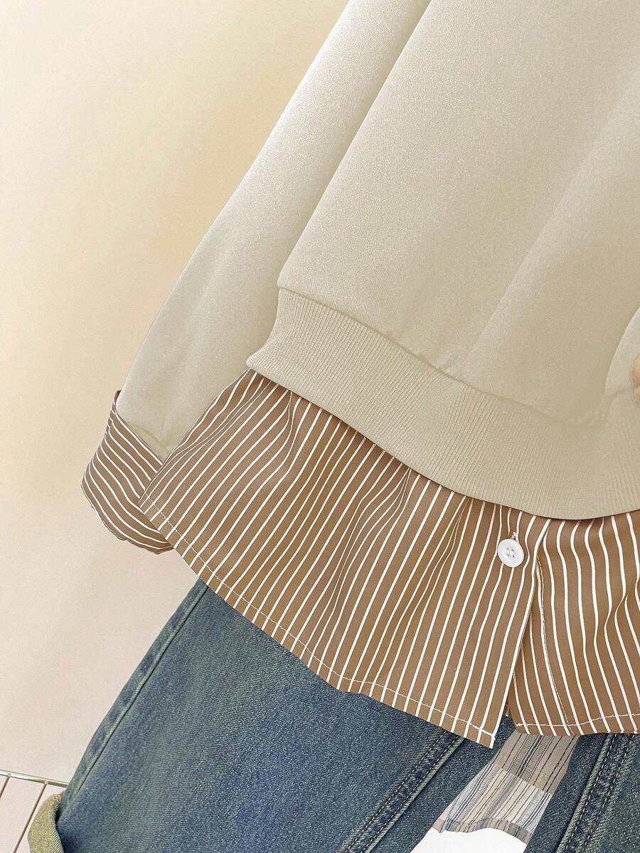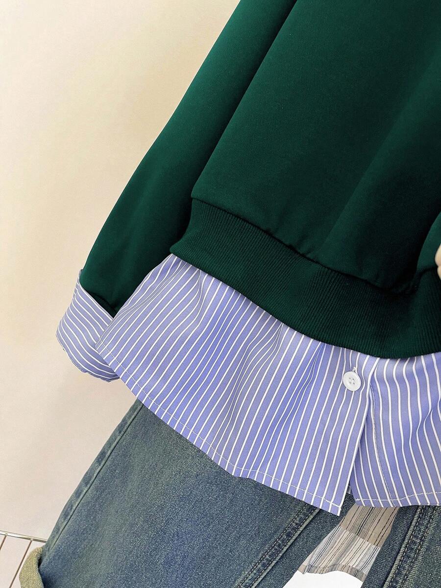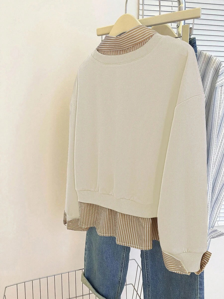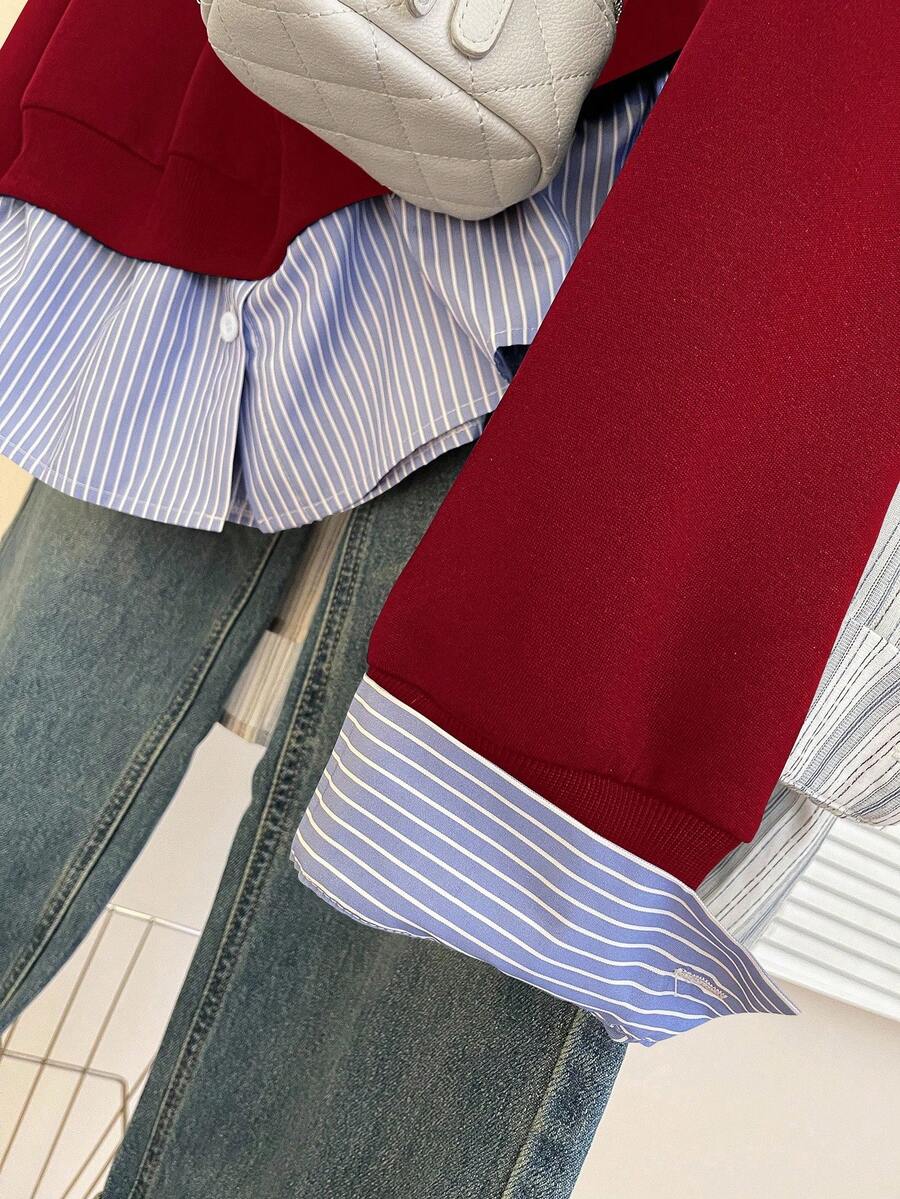 Glimmora Women's Fashionable Casual 2 In 1 Collared Long Sleeve Sweatshirt Pullover Fall