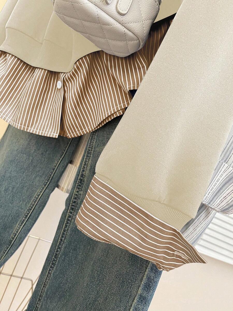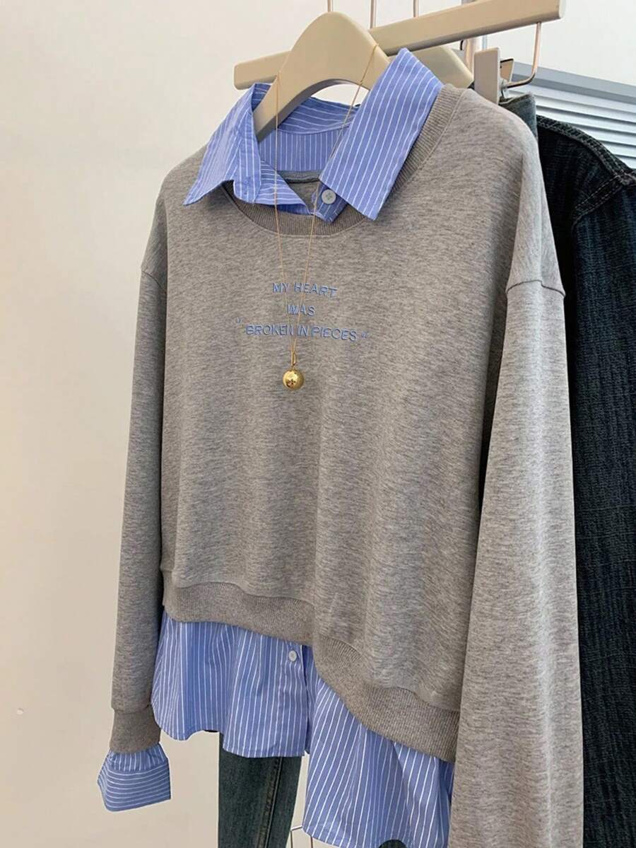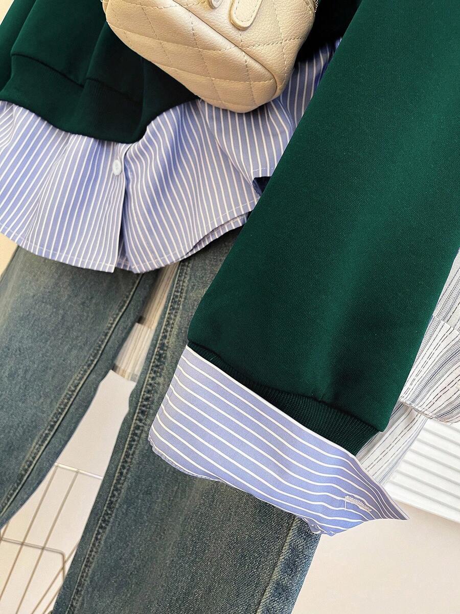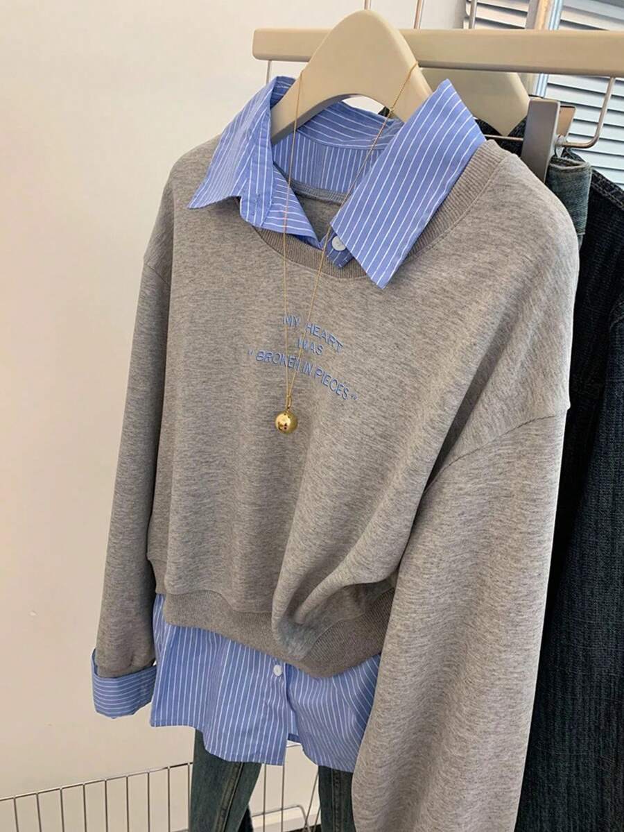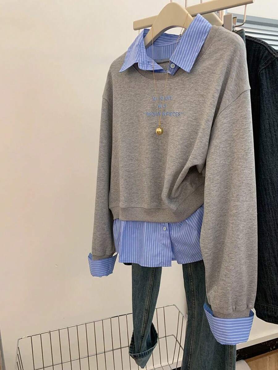 Glimmora Women's Fashionable Casual 2 In 1 Collared Long Sleeve Sweatshirt Pullover Fall