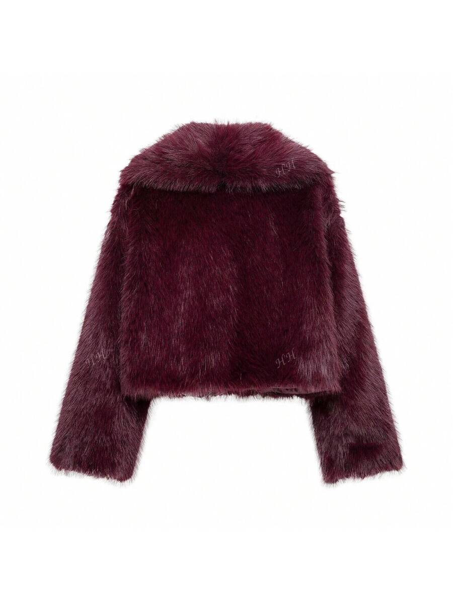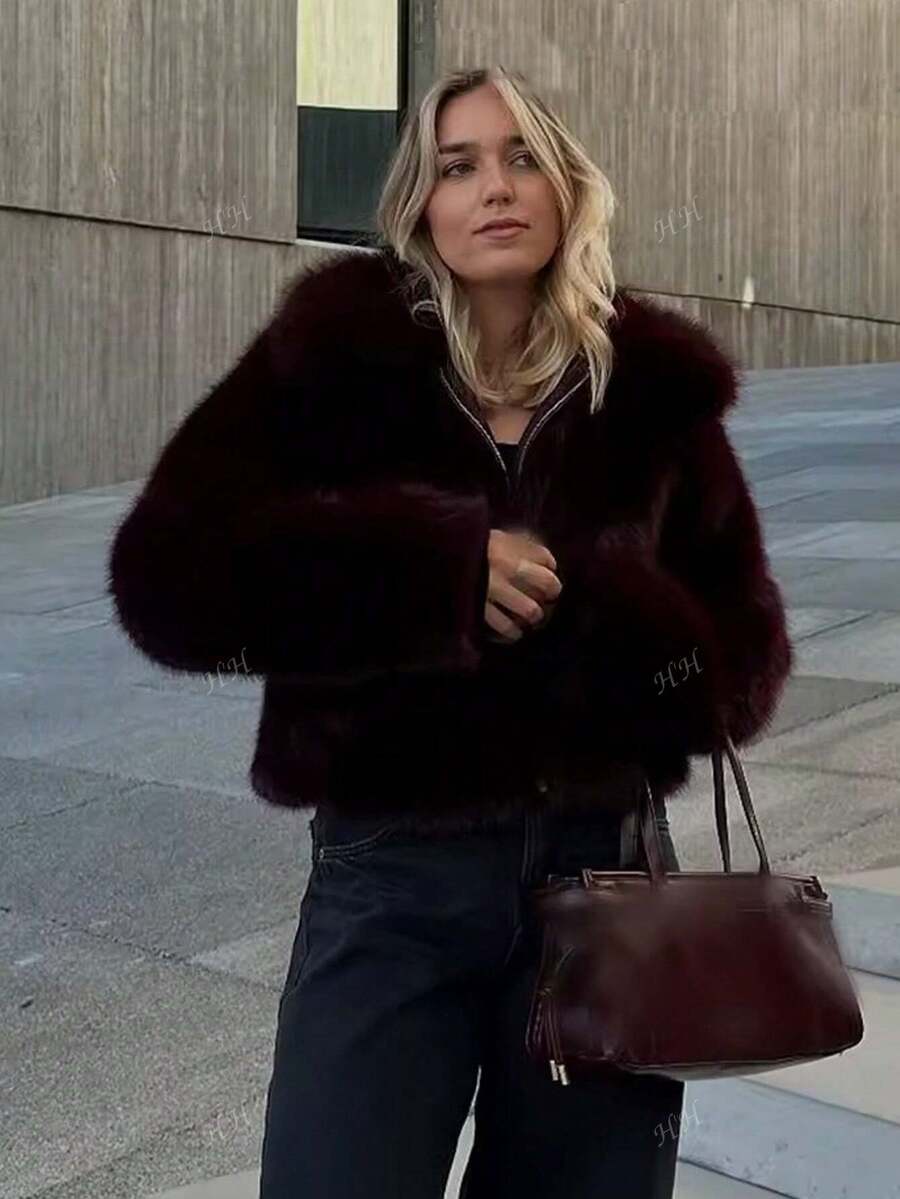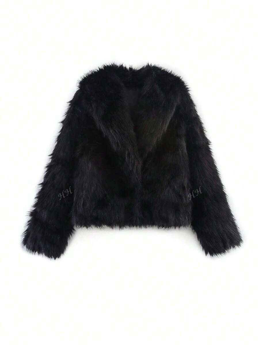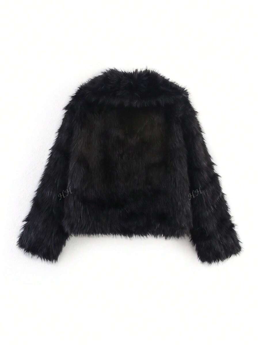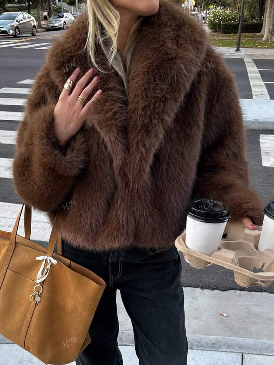 HH ženska jednobojna jakna od umjetnog krzna — dugi rukavi za toplinu, savršena za zimu