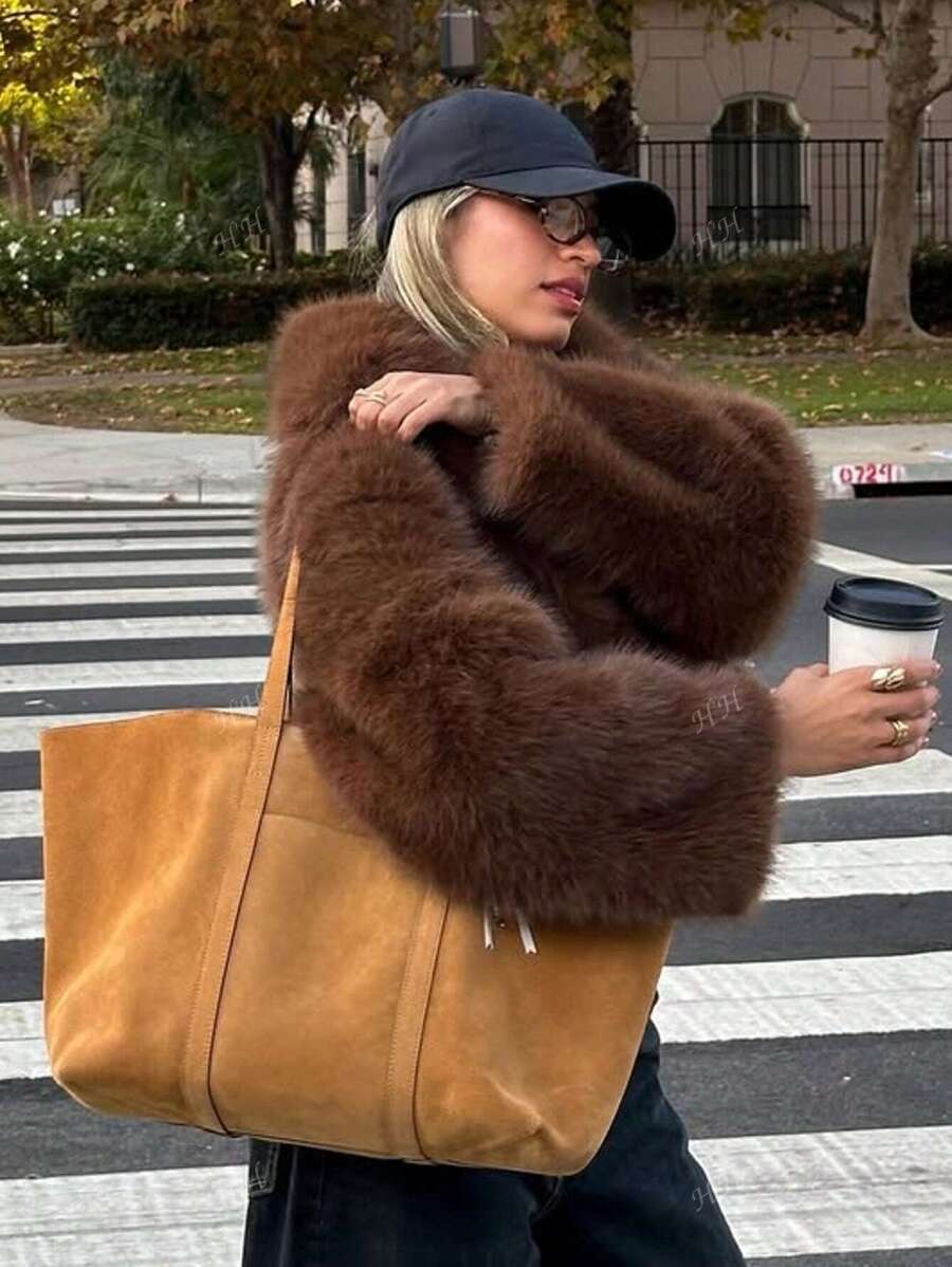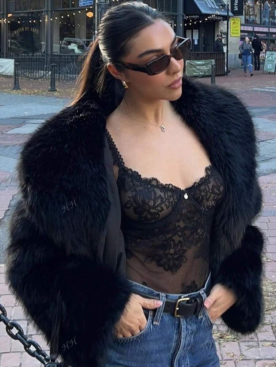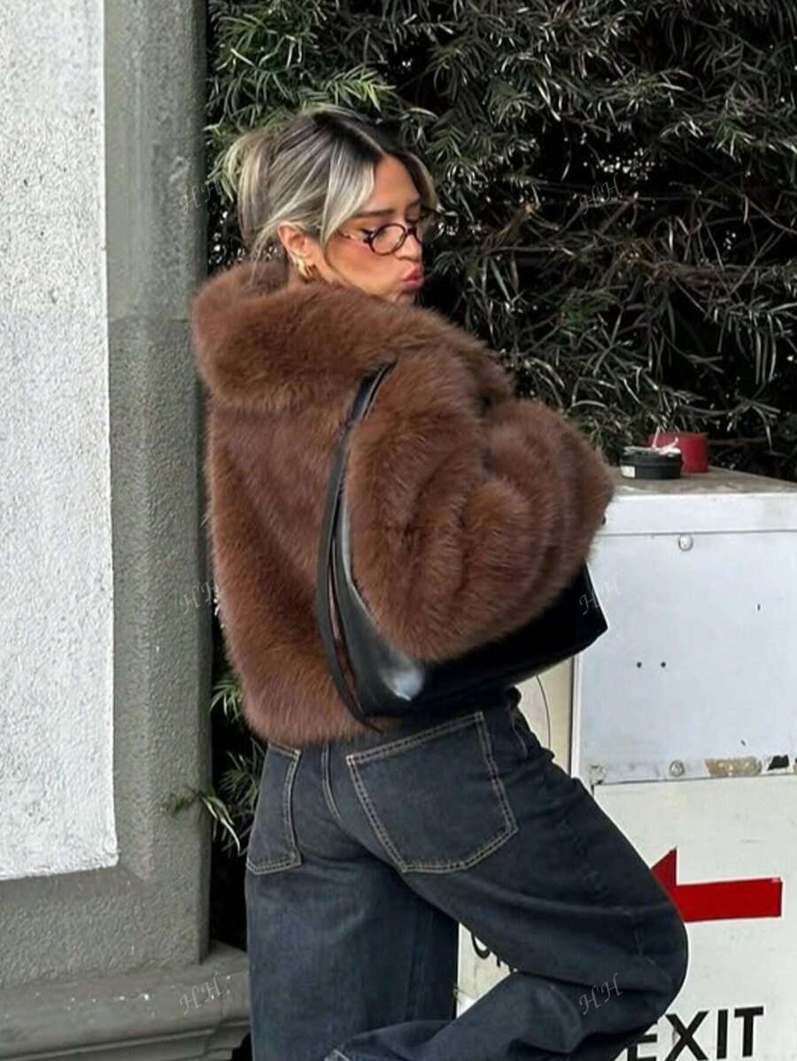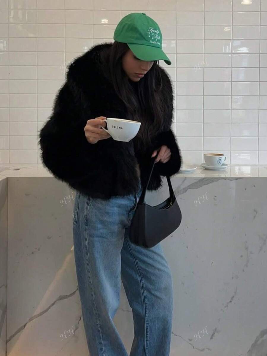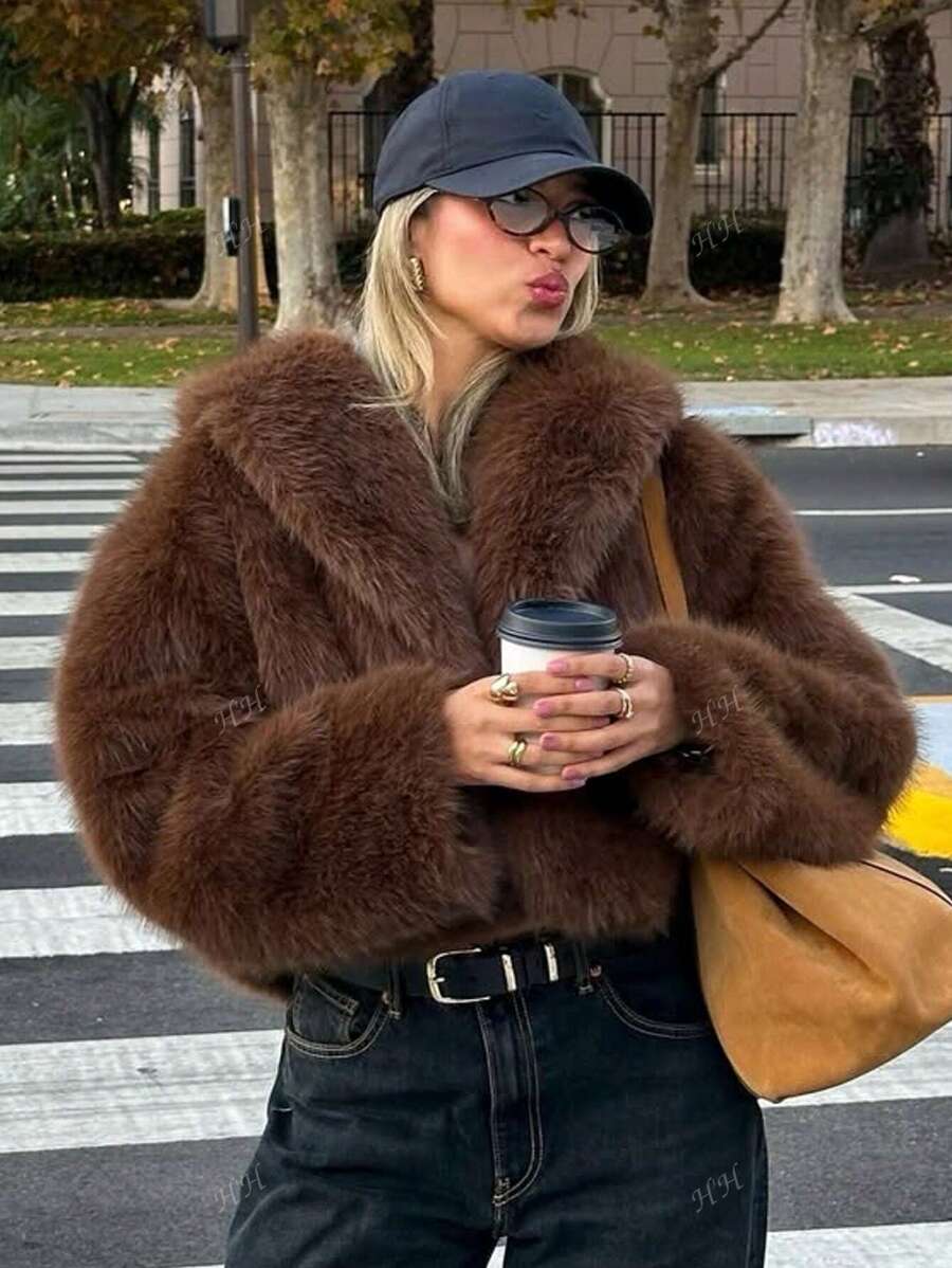 HH ženska jednobojna jakna od umjetnog krzna — dugi rukavi za toplinu, savršena za zimu