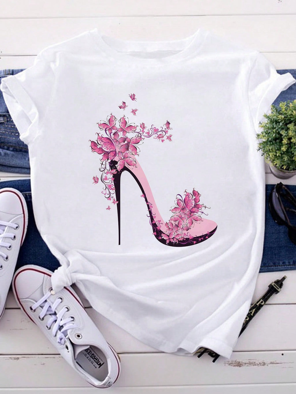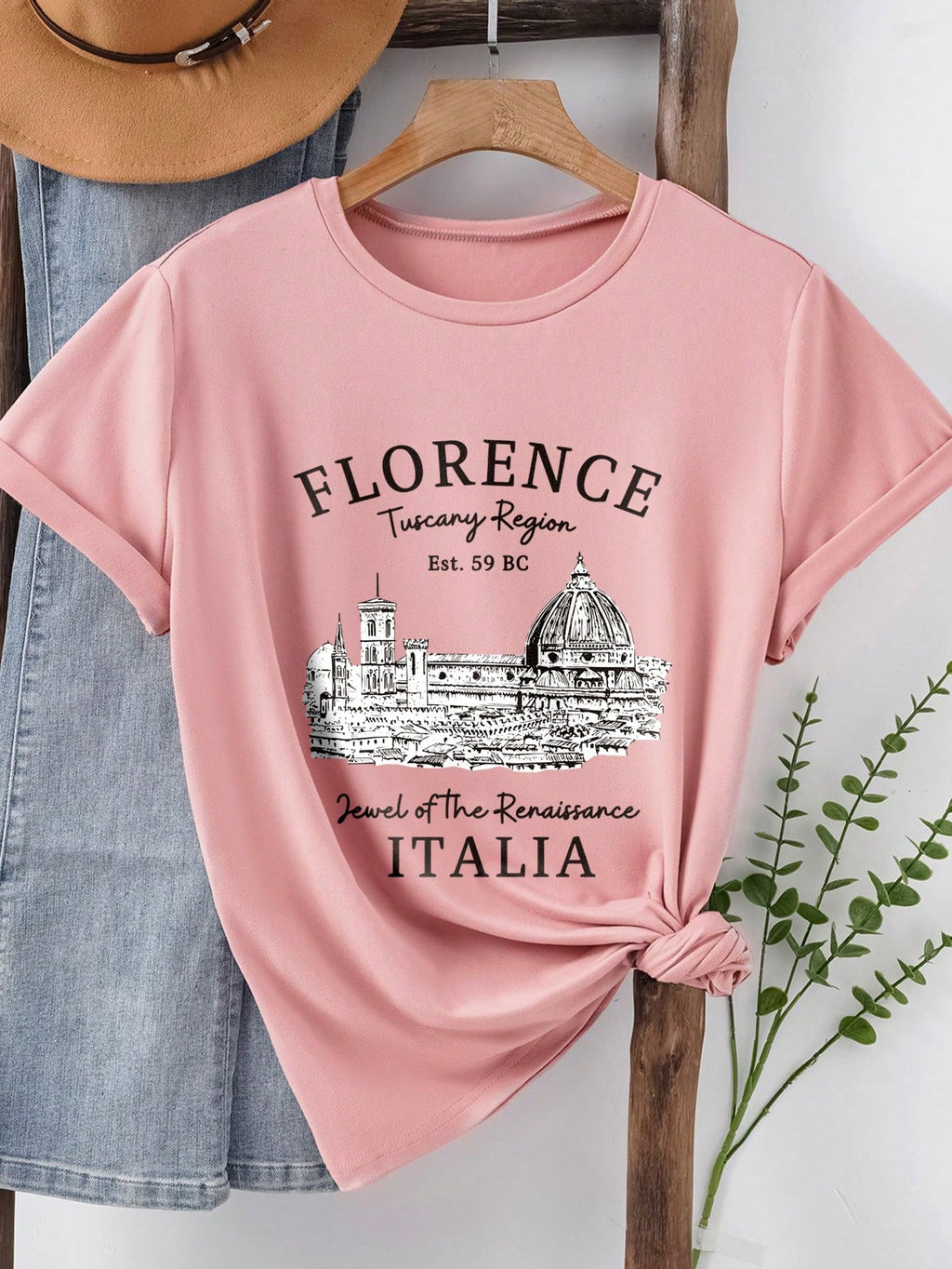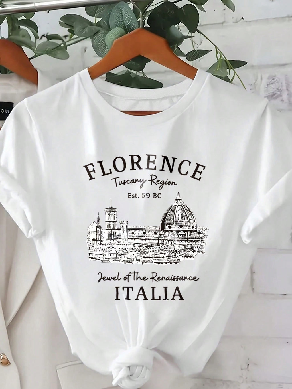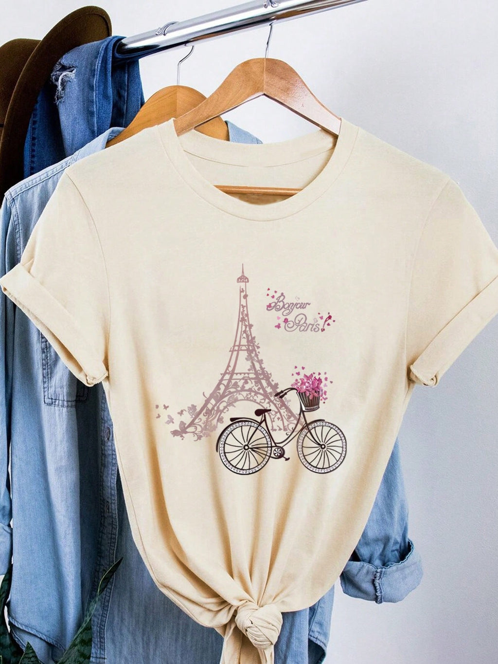 INAWLY Ženska majica kratkih rukava s okruglim izrezom i kratkim rukavima s printom na cvijet, Eiffelov toranj i bicikl