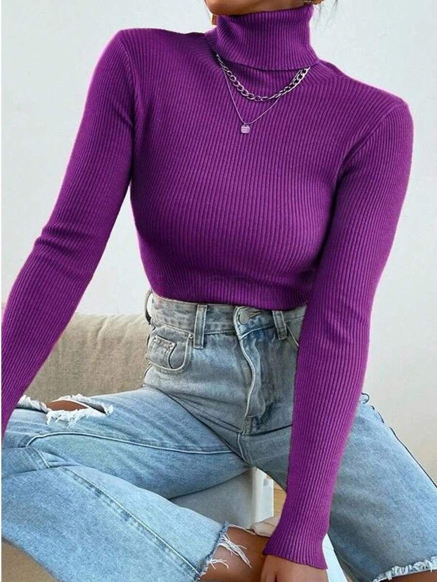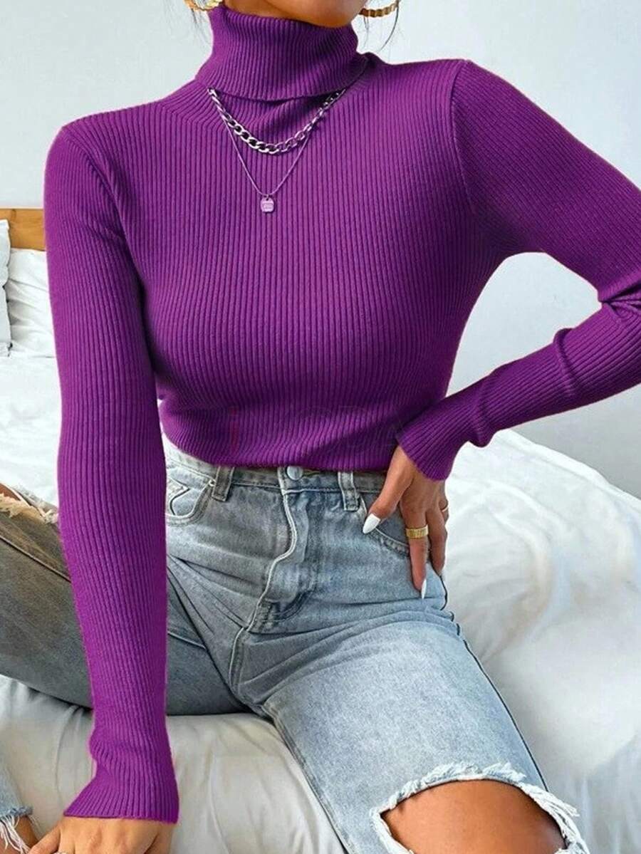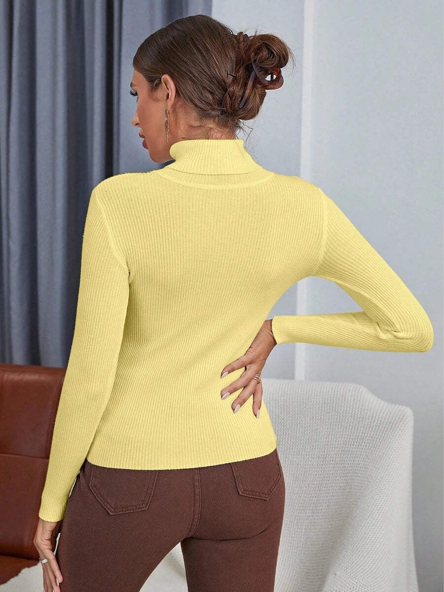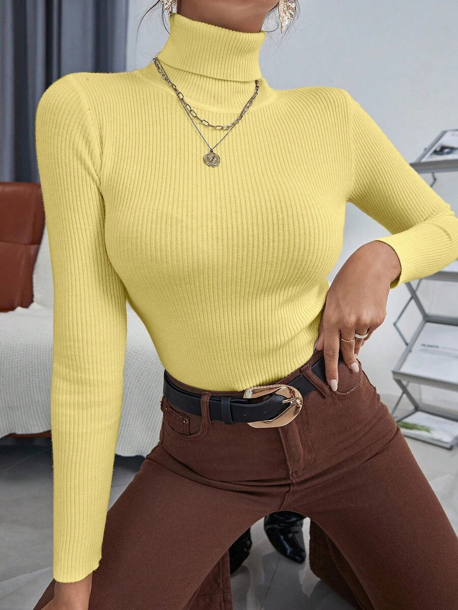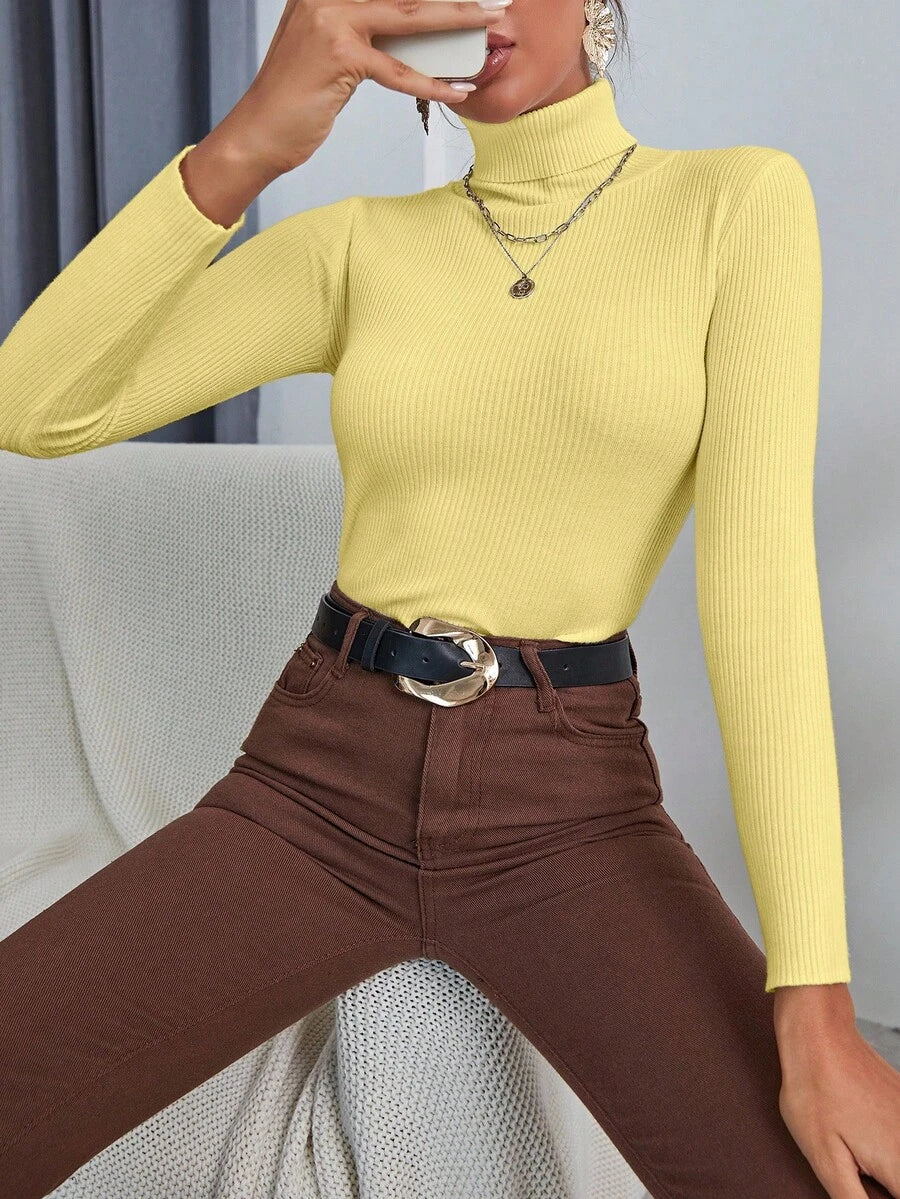 INAWLY Solid High Neck Rib Knit Sweater,Long Sleeve Tops Knit Pullover Fall Winter Outfit