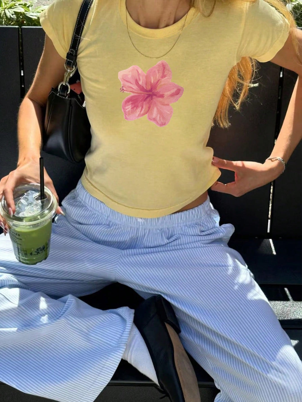 INAWLY Y2K Ljetna majica s cvjetnim printom, kratka majica za bebe, grafičke majice za žene