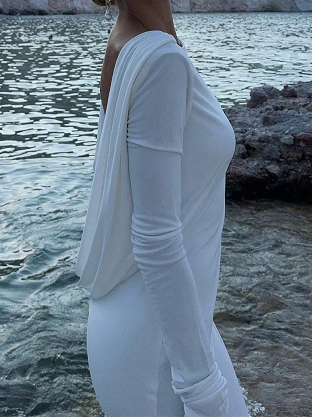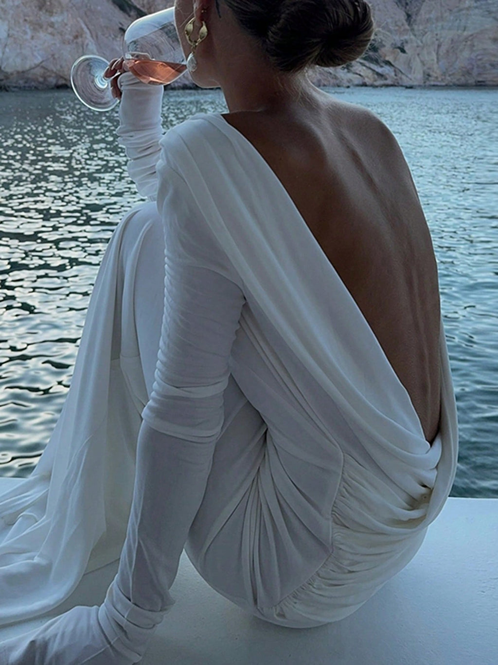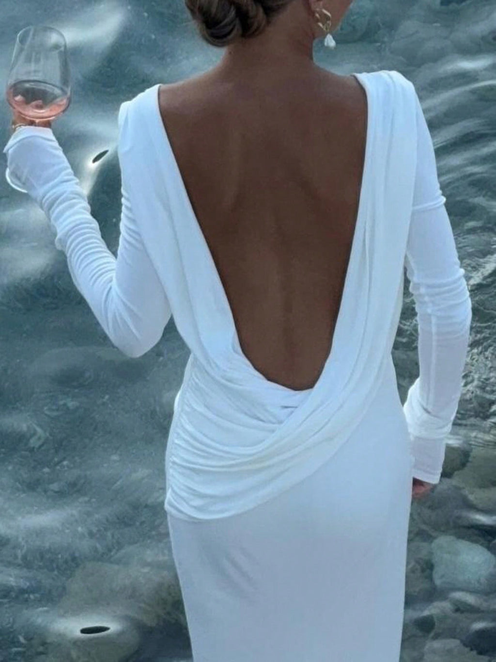 Jednostavna seksi haljina bez leđa s nabranošću dugih rukava