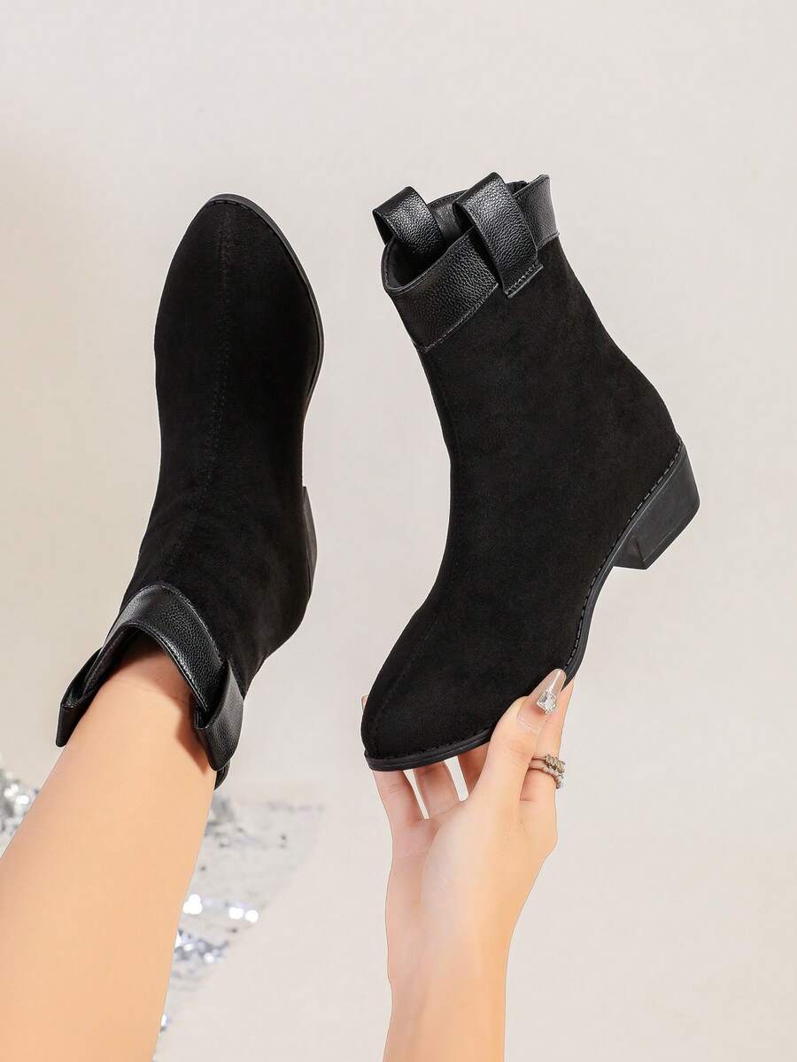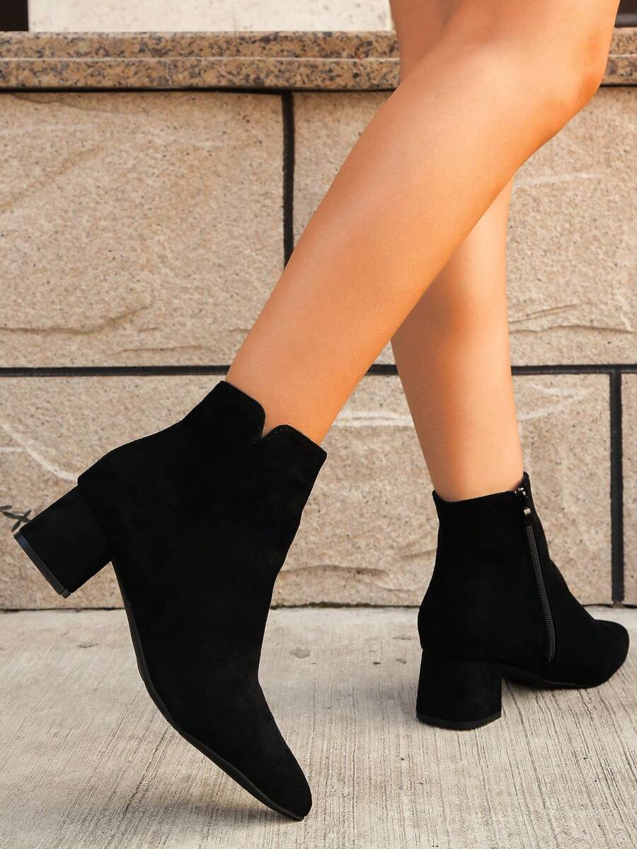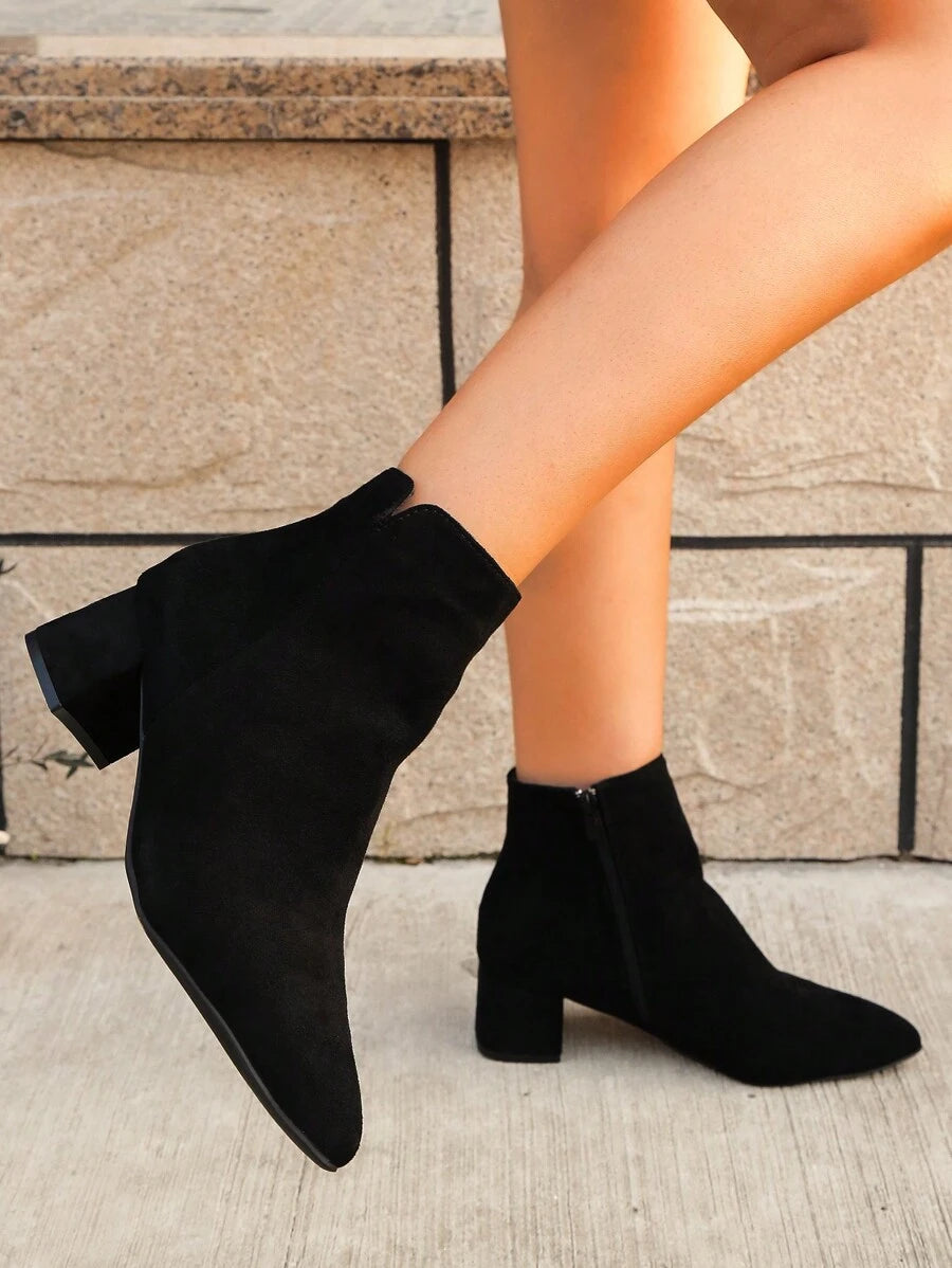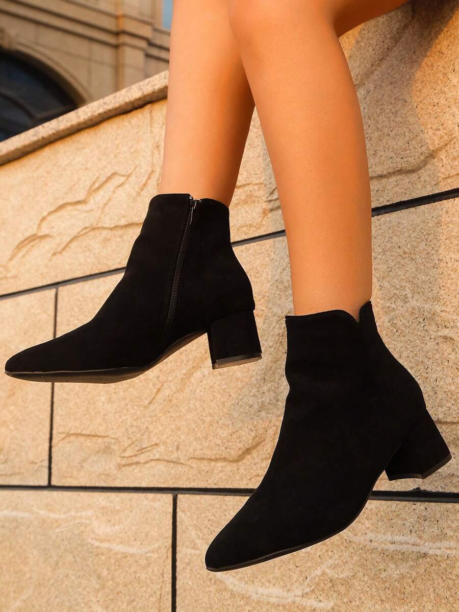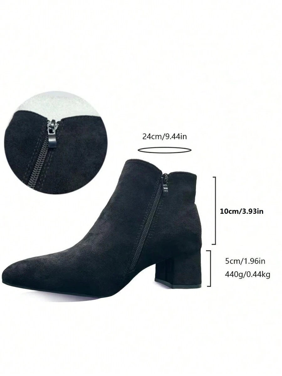 Jesen/Zima Ženske Modne Crne Jednostavne Čizme S Oštrim Prstom, Chunky Petom I Bočnim Rajsferšlusom Za Jesen, Uparite Sa Trenerkama, Čizme Za Žene
