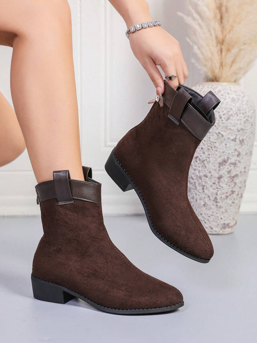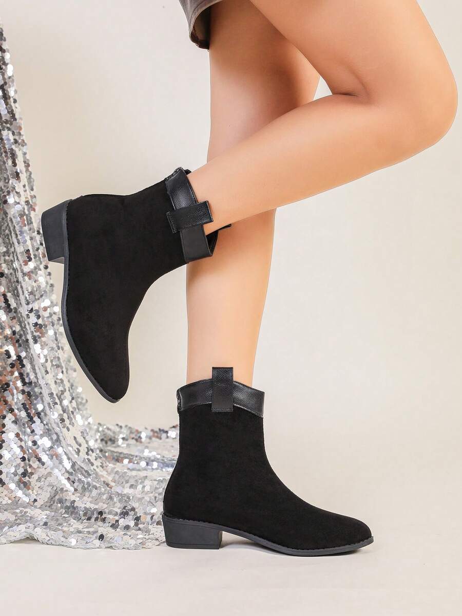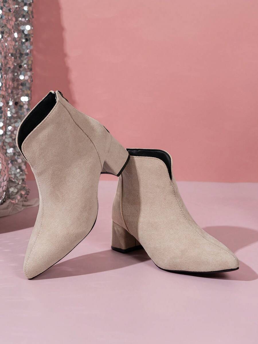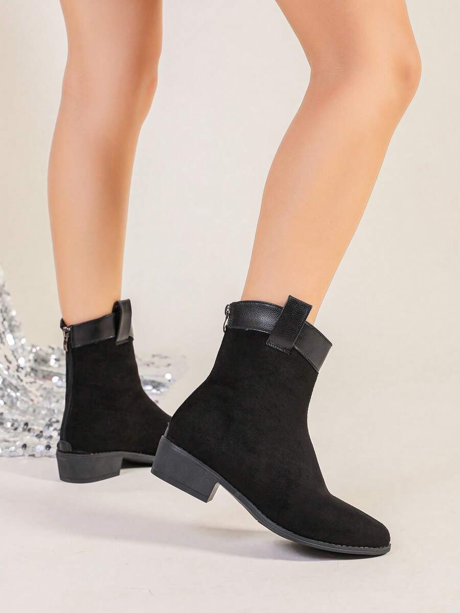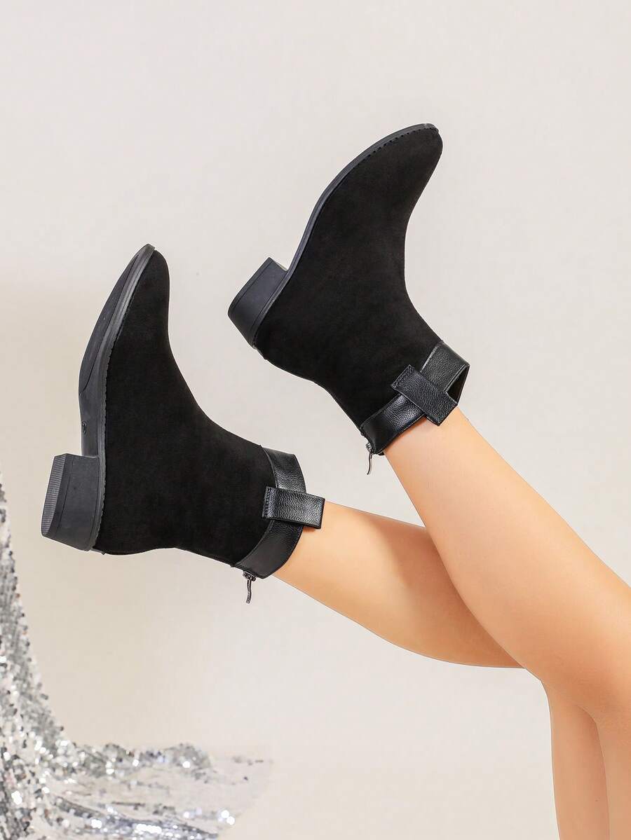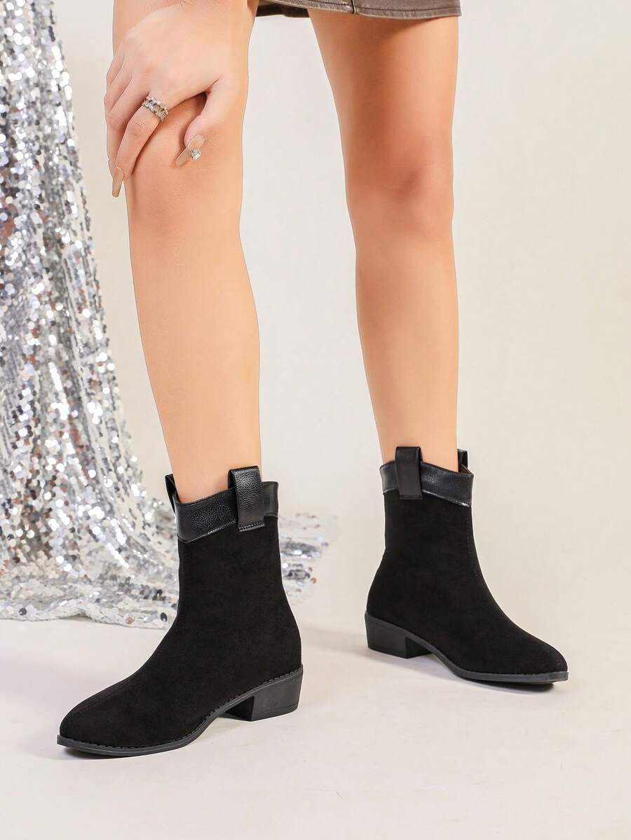 Jesen/Zima Ženske Modne Crne Jednostavne Čizme S Oštrim Prstom, Chunky Petom I Bočnim Rajsferšlusom Za Jesen, Uparite Sa Trenerkama, Čizme Za Žene