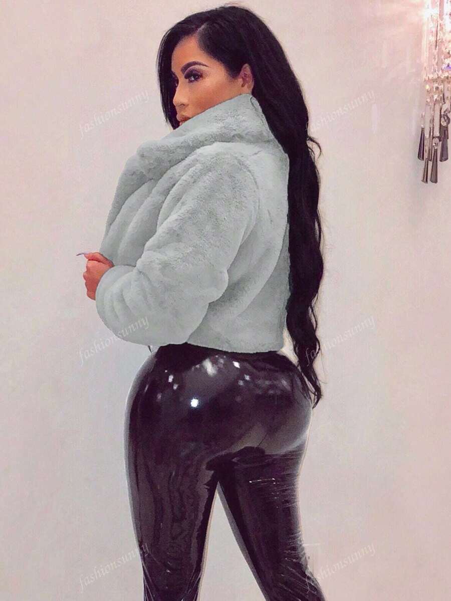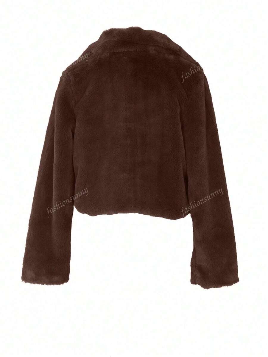 Ležerna jednobojna skraćena plišana jakna, jesen/zima