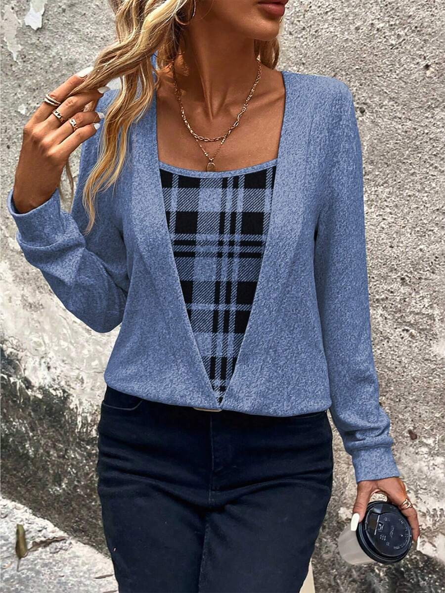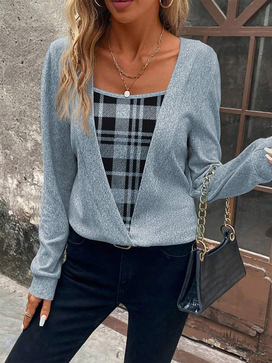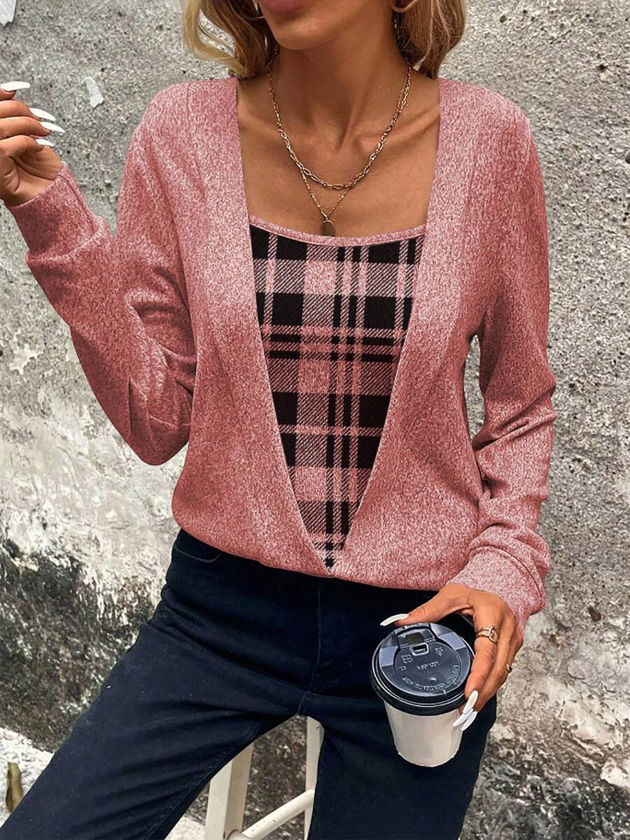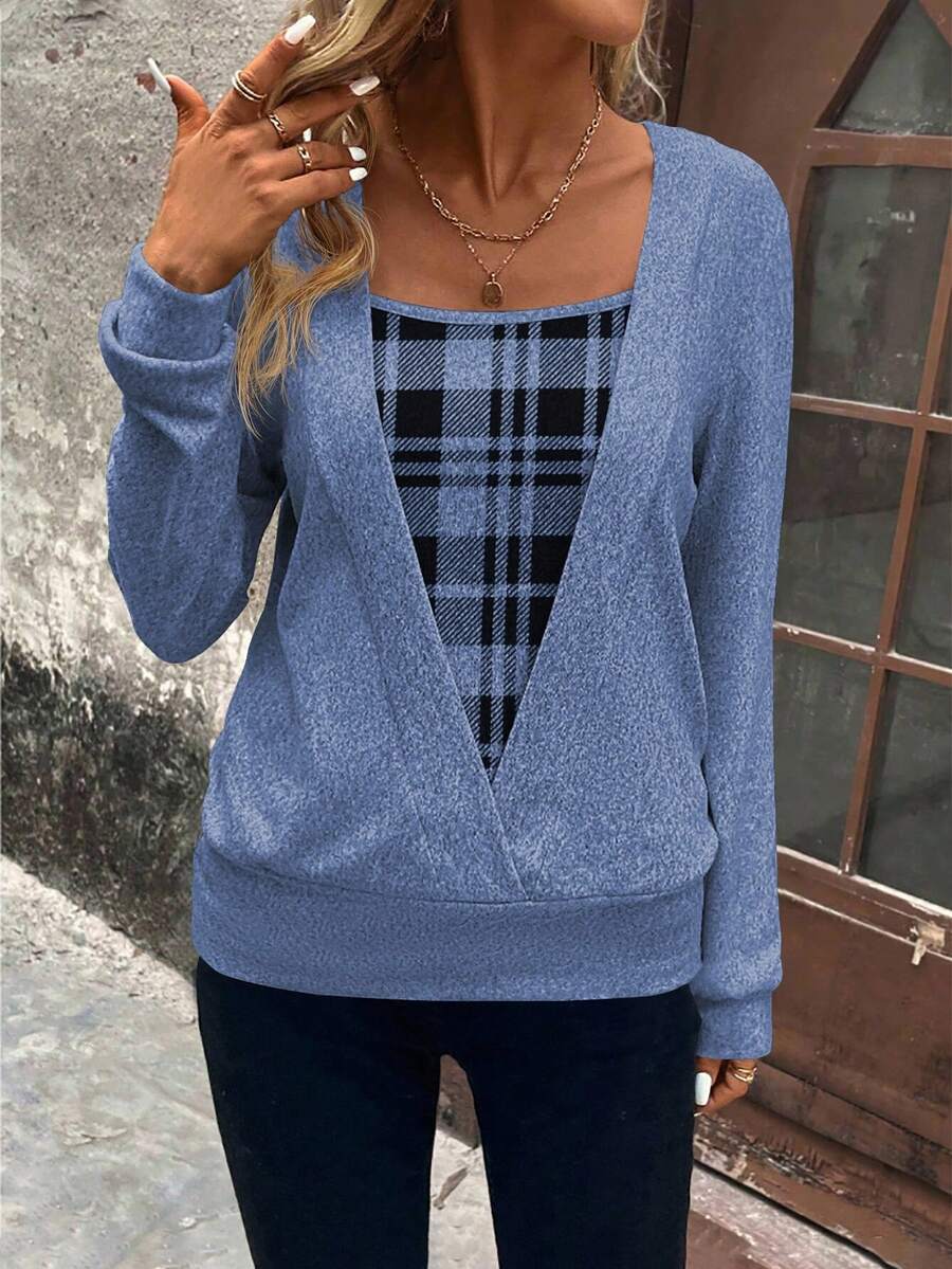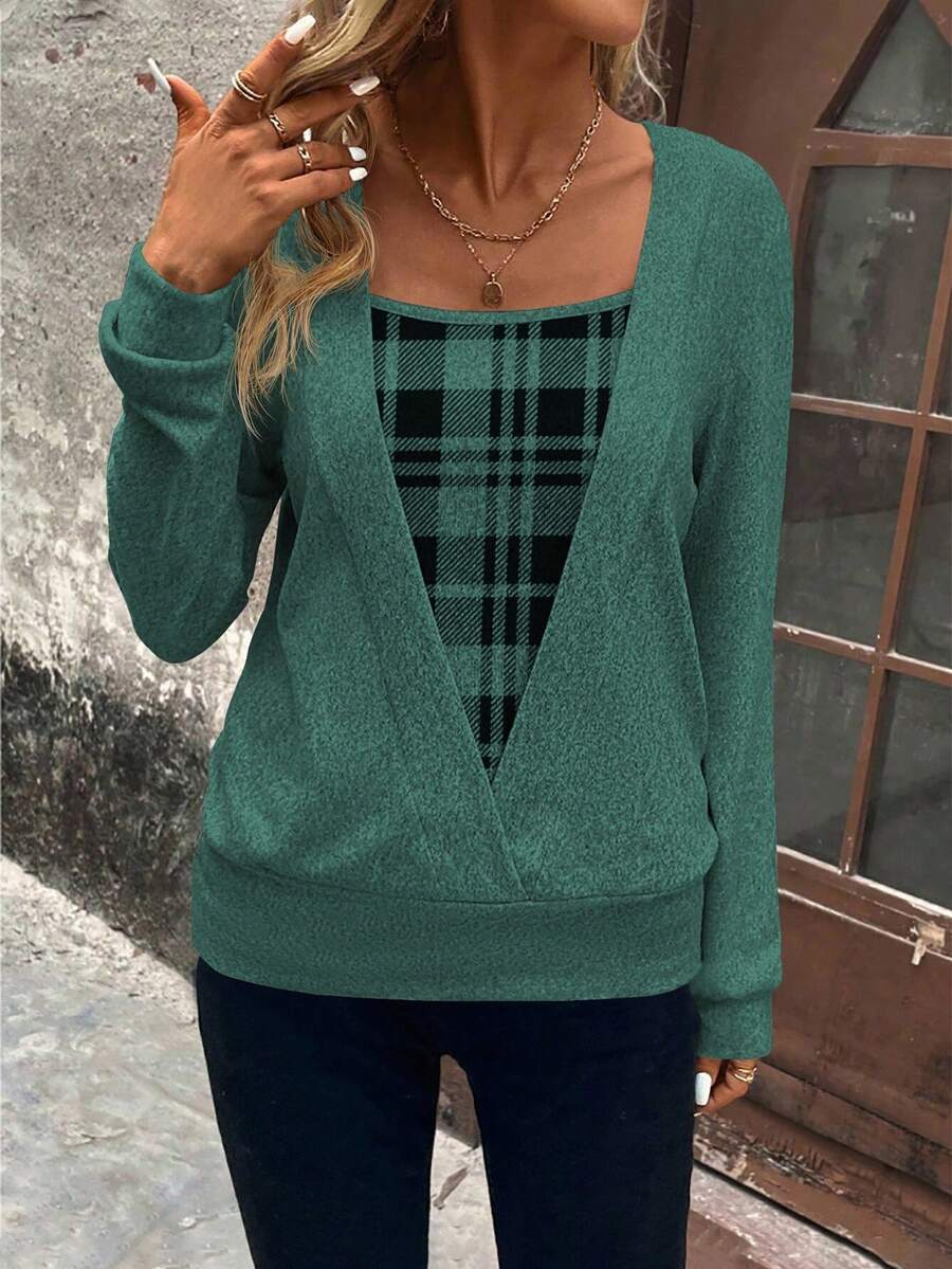 Lunelith MAJA Lunessa Ženski Oversized Crew Neck Casual Dukserica sa Kariranim Printom, Dugi Rukavi, Outfit za Maturu, Outfit za Povratak u Školu, Outfit za Učiteljice