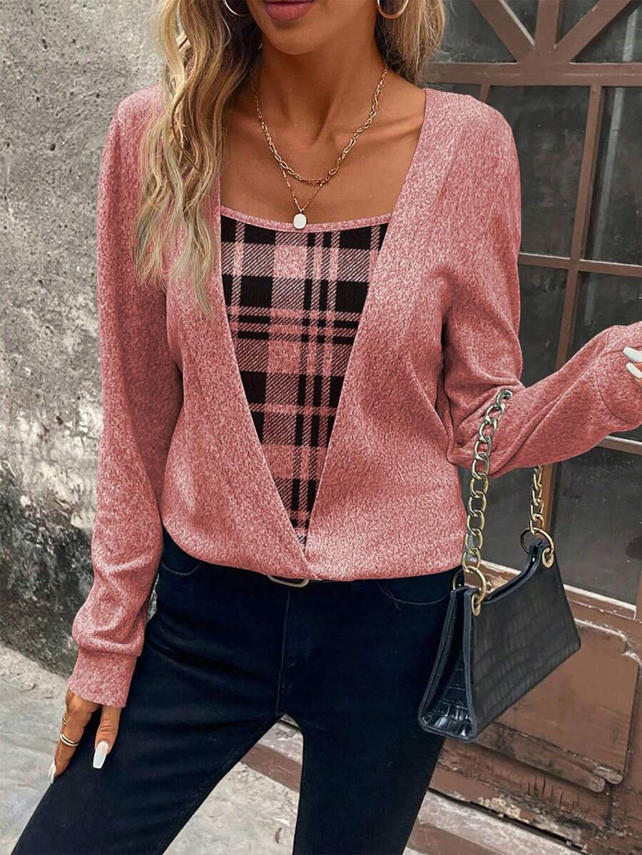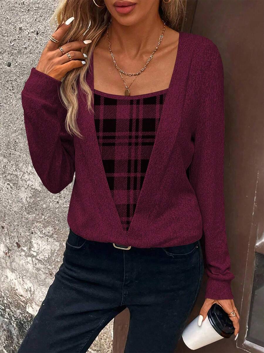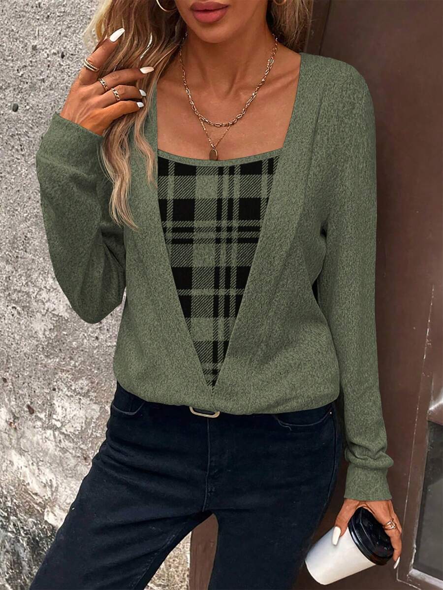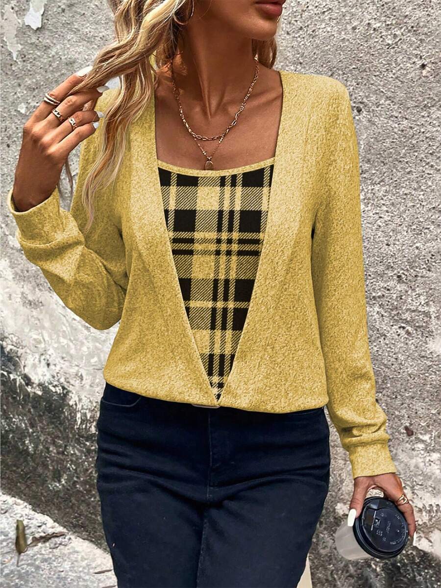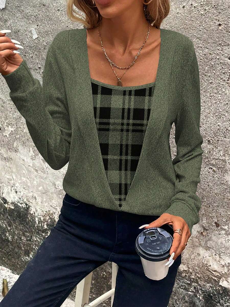 Lunelith MAJA Lunessa Ženski Oversized Crew Neck Casual Dukserica sa Kariranim Printom, Dugi Rukavi, Outfit za Maturu, Outfit za Povratak u Školu, Outfit za Učiteljice