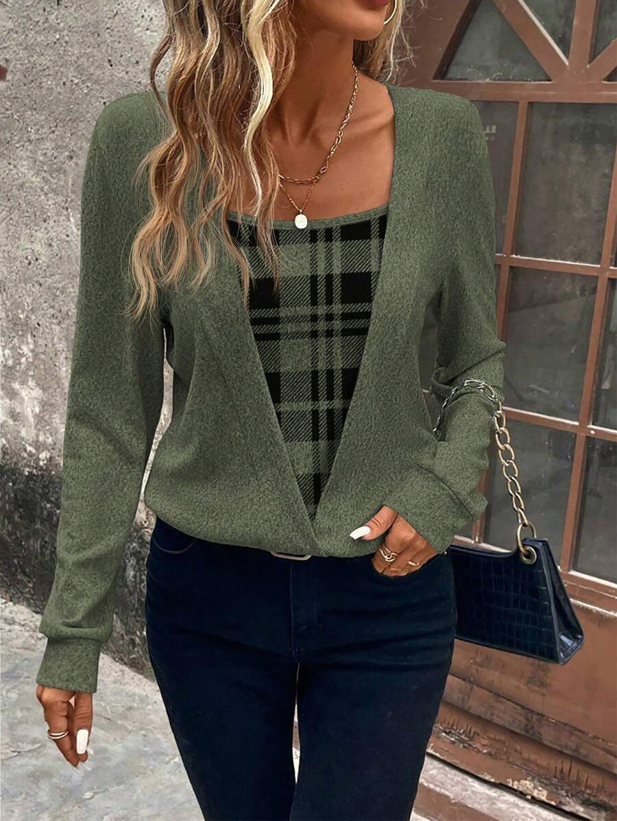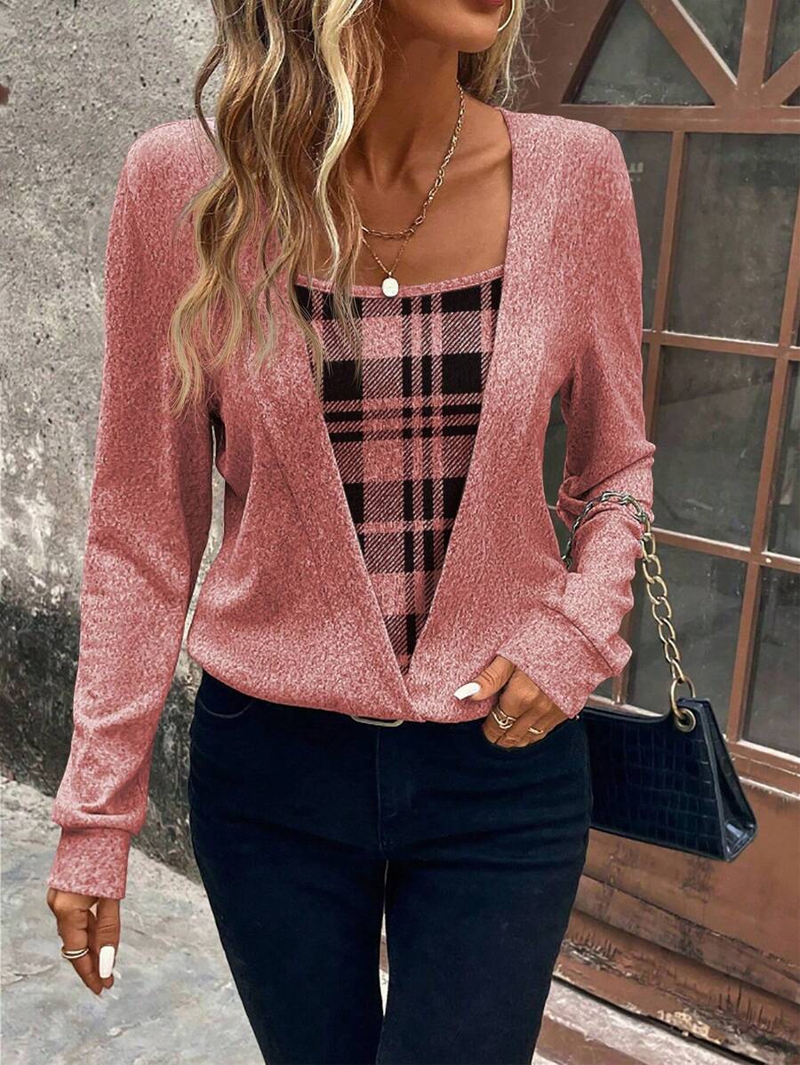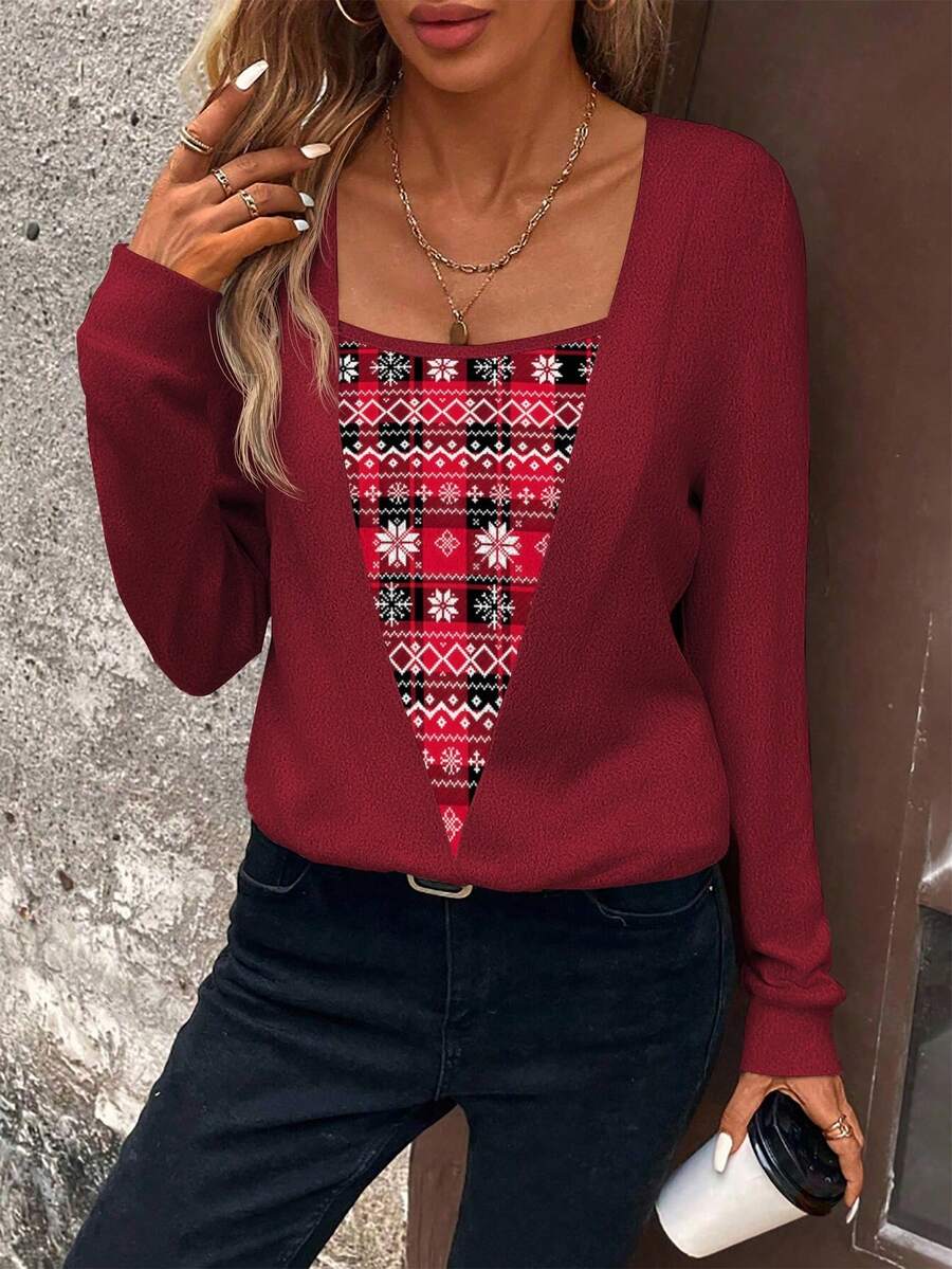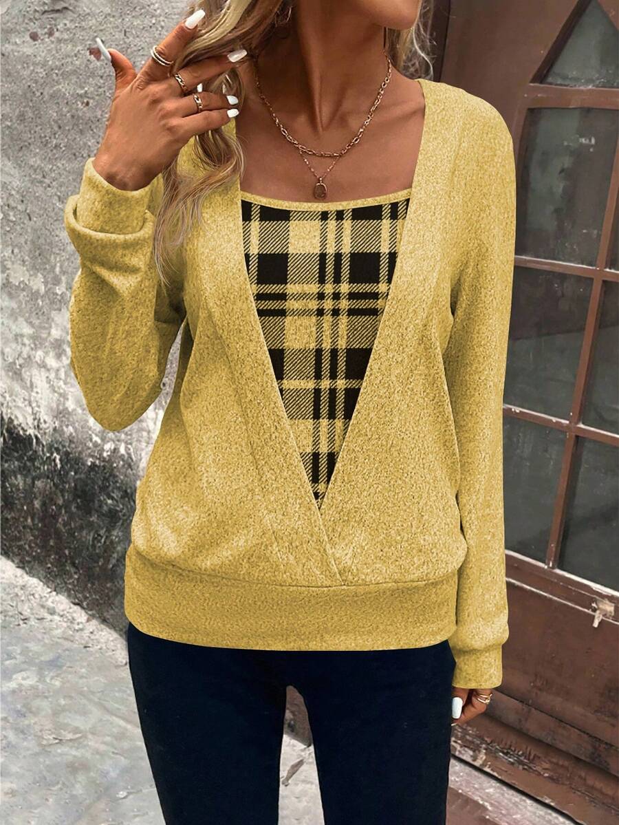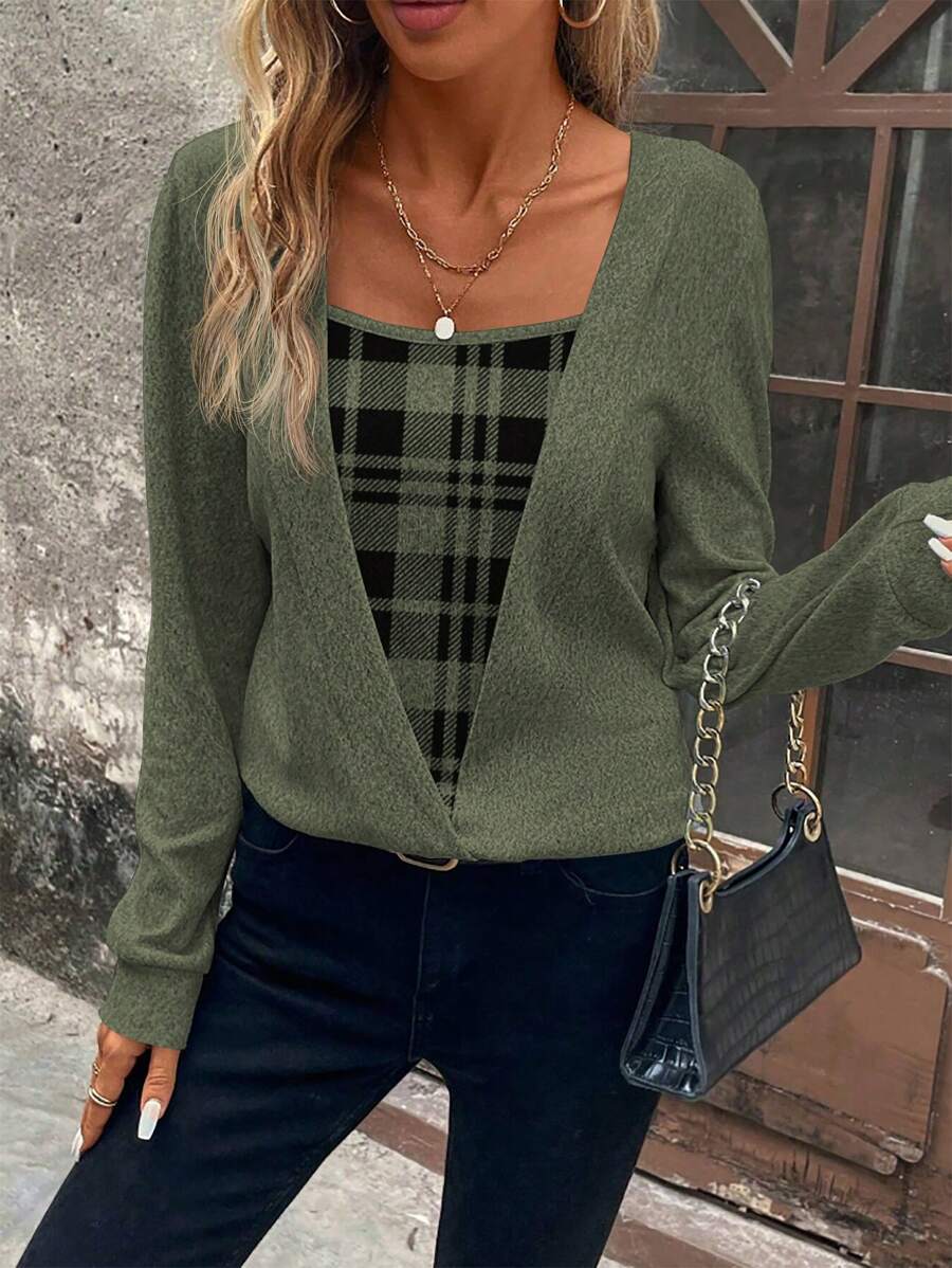 Lunelith MAJA Lunessa Ženski Oversized Crew Neck Casual Dukserica sa Kariranim Printom, Dugi Rukavi, Outfit za Maturu, Outfit za Povratak u Školu, Outfit za Učiteljice