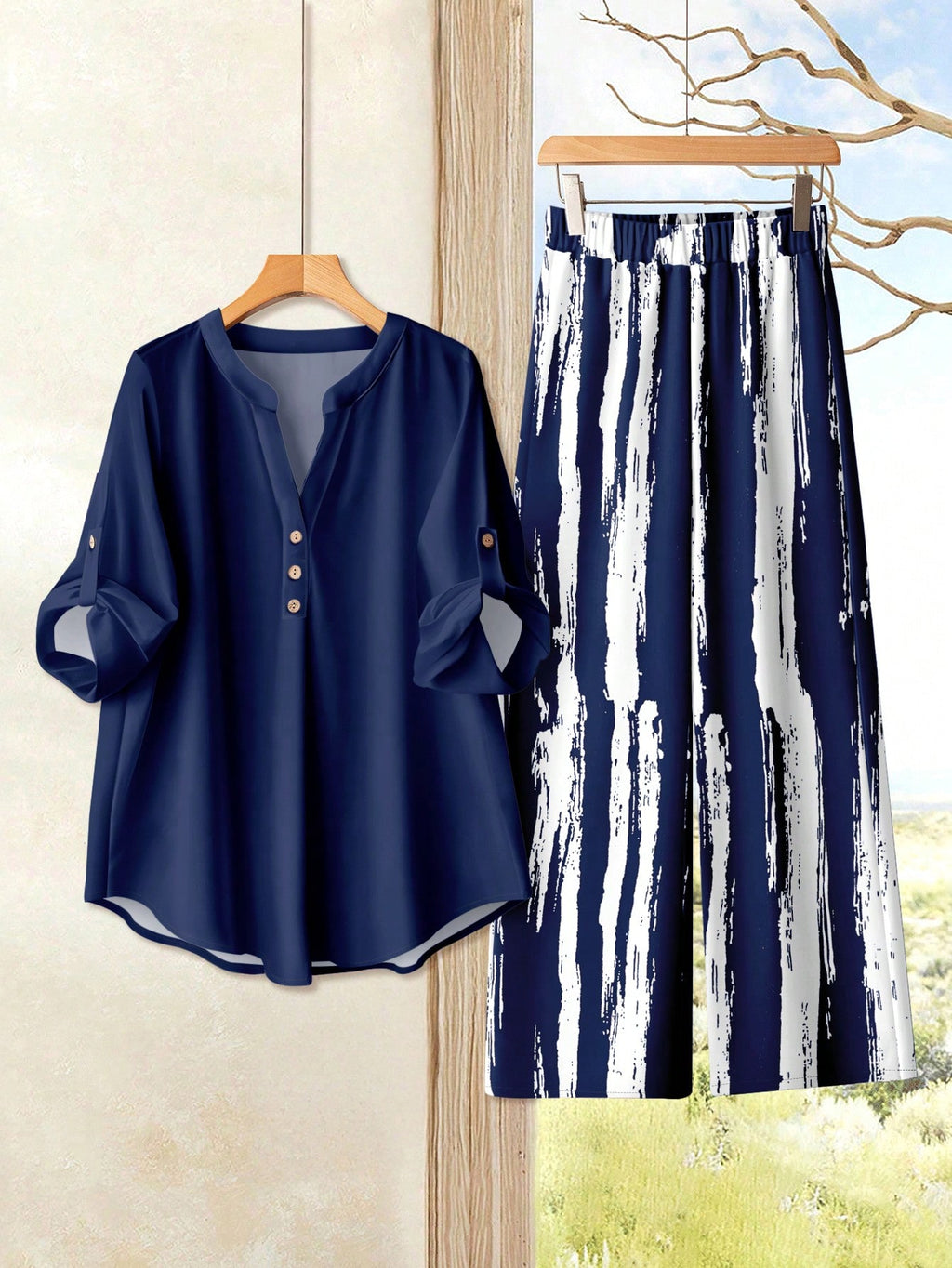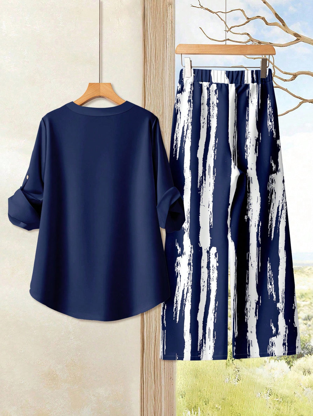 MAJA Casualna Ukombinovana Dvodelna Odjeća sa Rolovanim Rukavima i Isečenim Izrezom, Ženski Dvodelni Komplet, Ženski Jesen/Zima Dvodelni Komplet, Ženski Set Suknje i Majice, Ženski Svakodnevni Komplet, Ženski Dvodelni Outfit, Ženski Plus Size Outfit, Jes