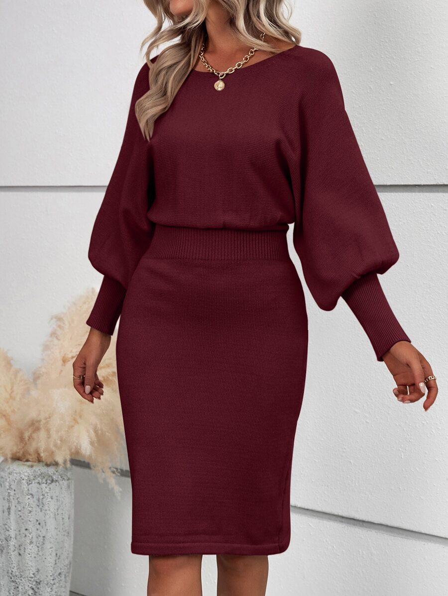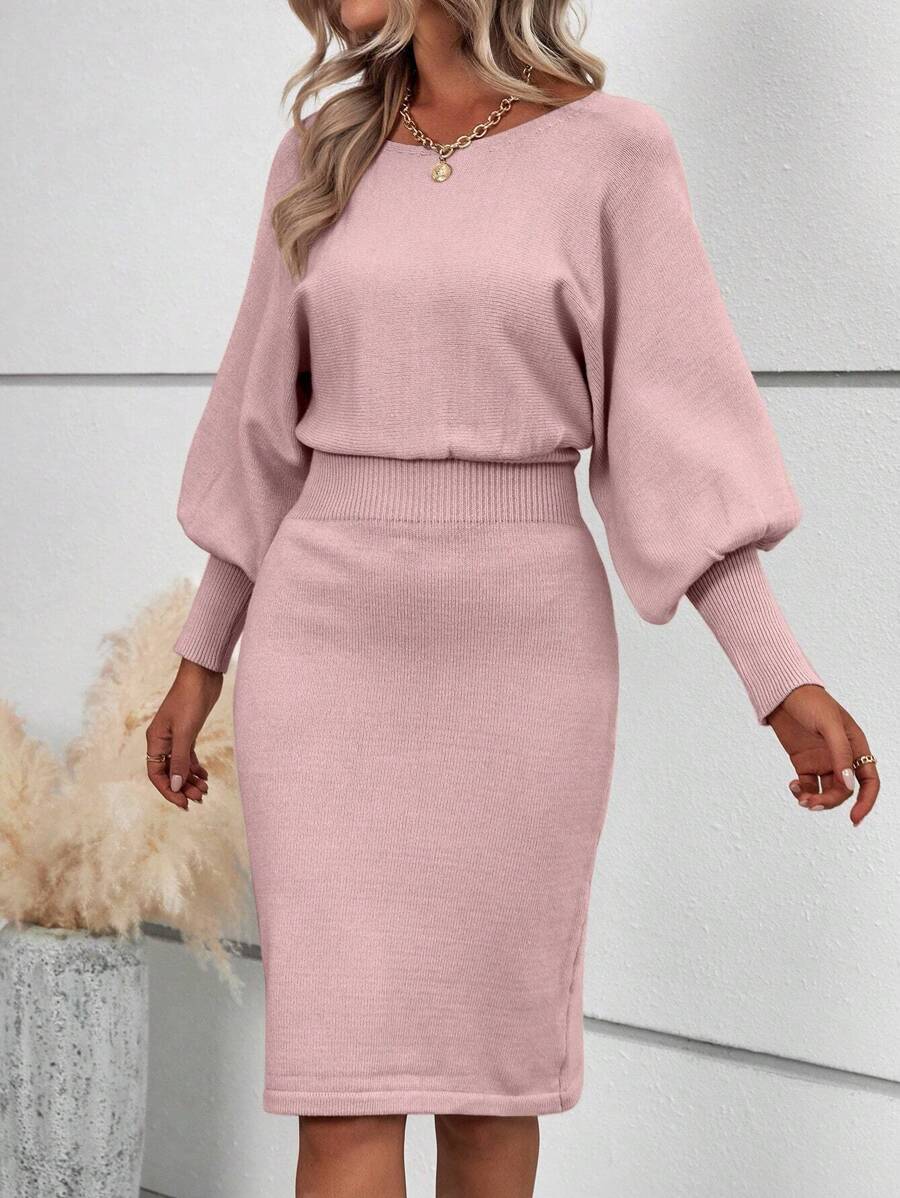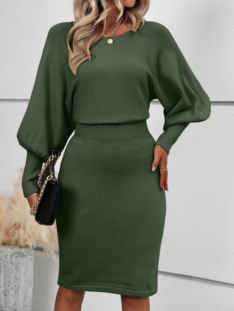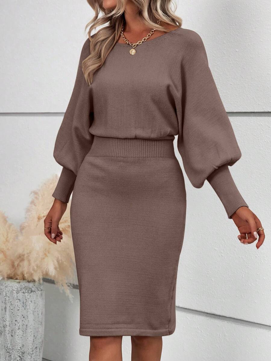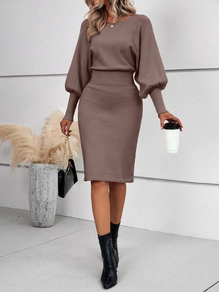 MAJA Čvrsta Lantern Rukava Pletena Haljina Jesen Zima