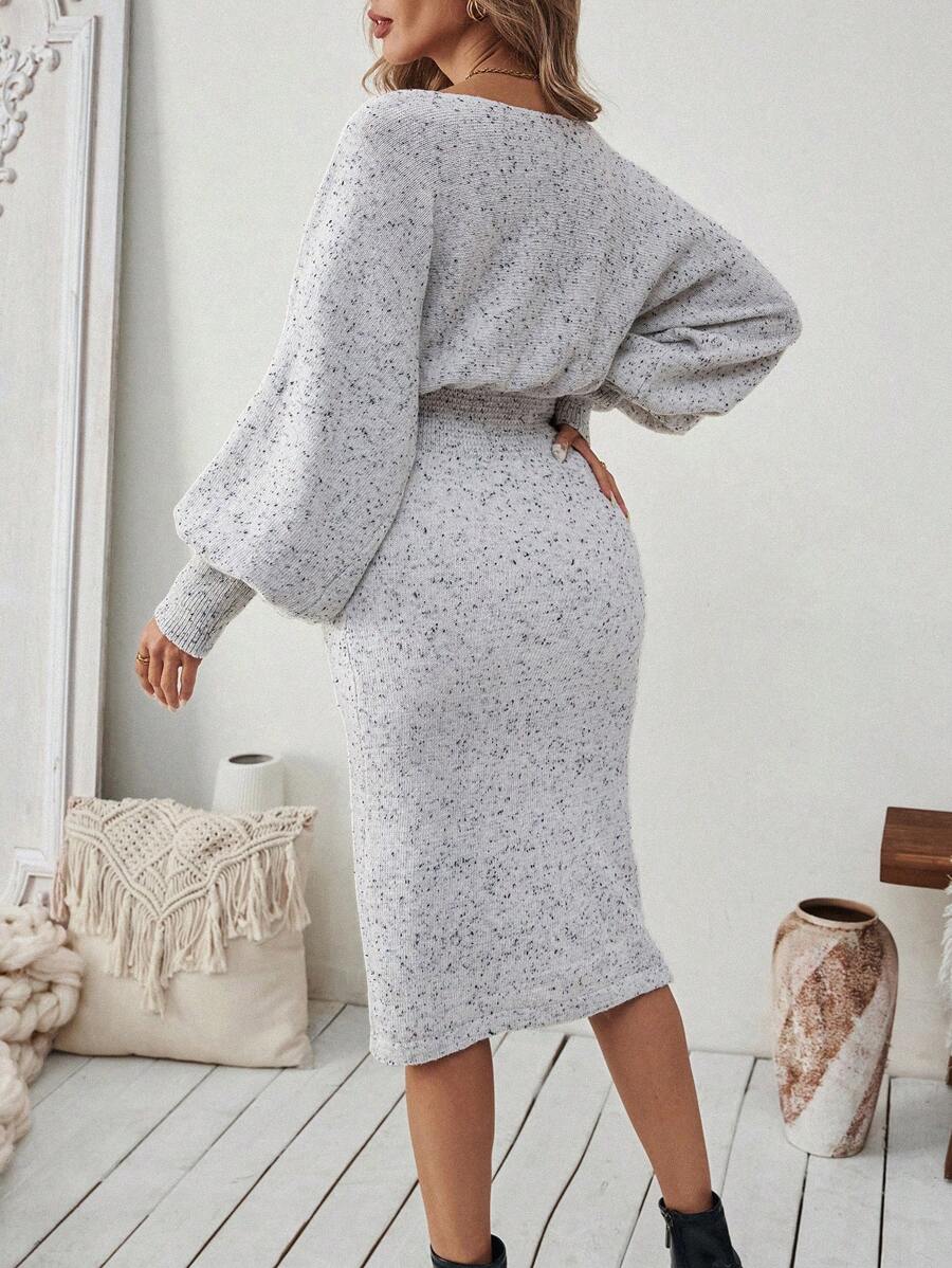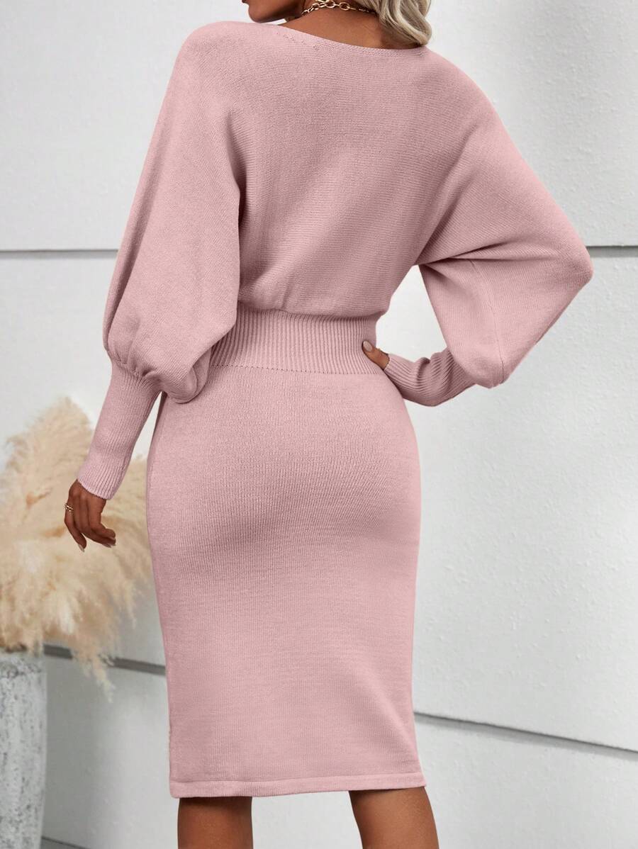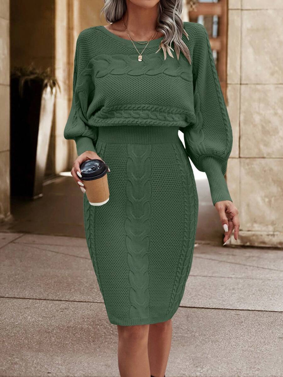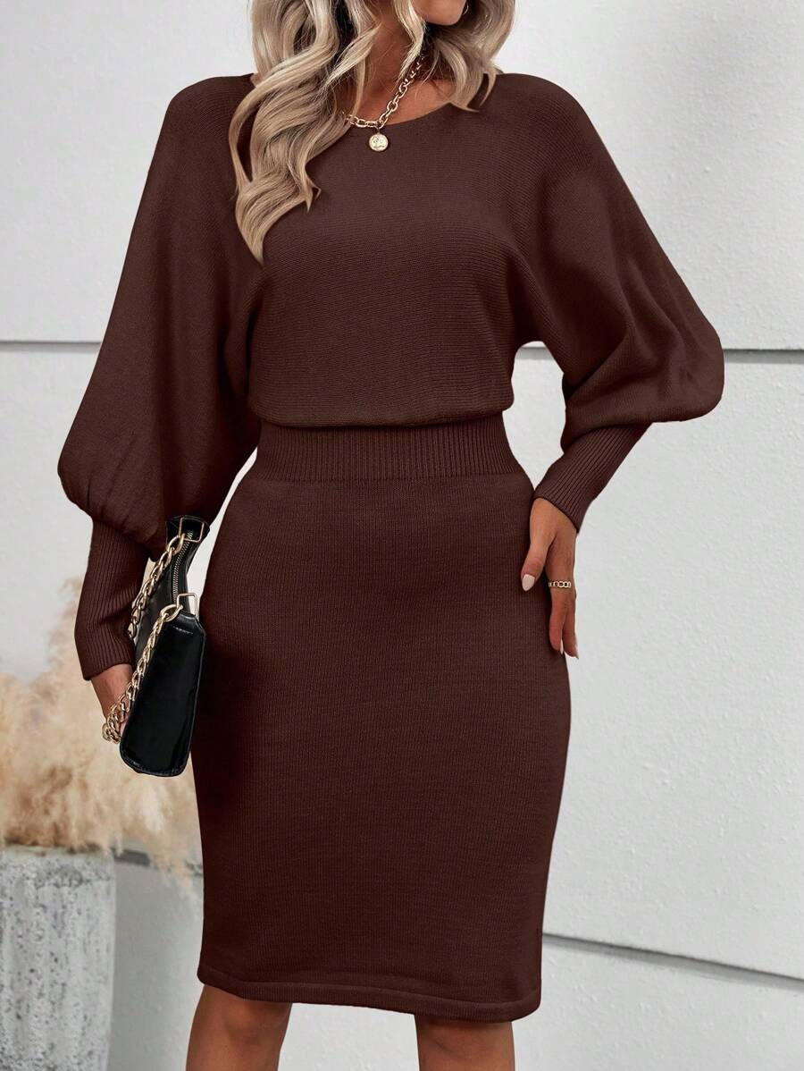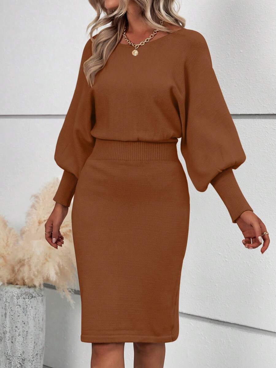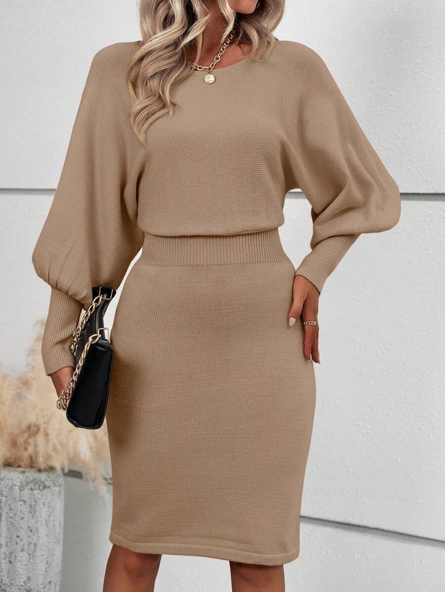 MAJA Čvrsta Lantern Rukava Pletena Haljina Jesen Zima
