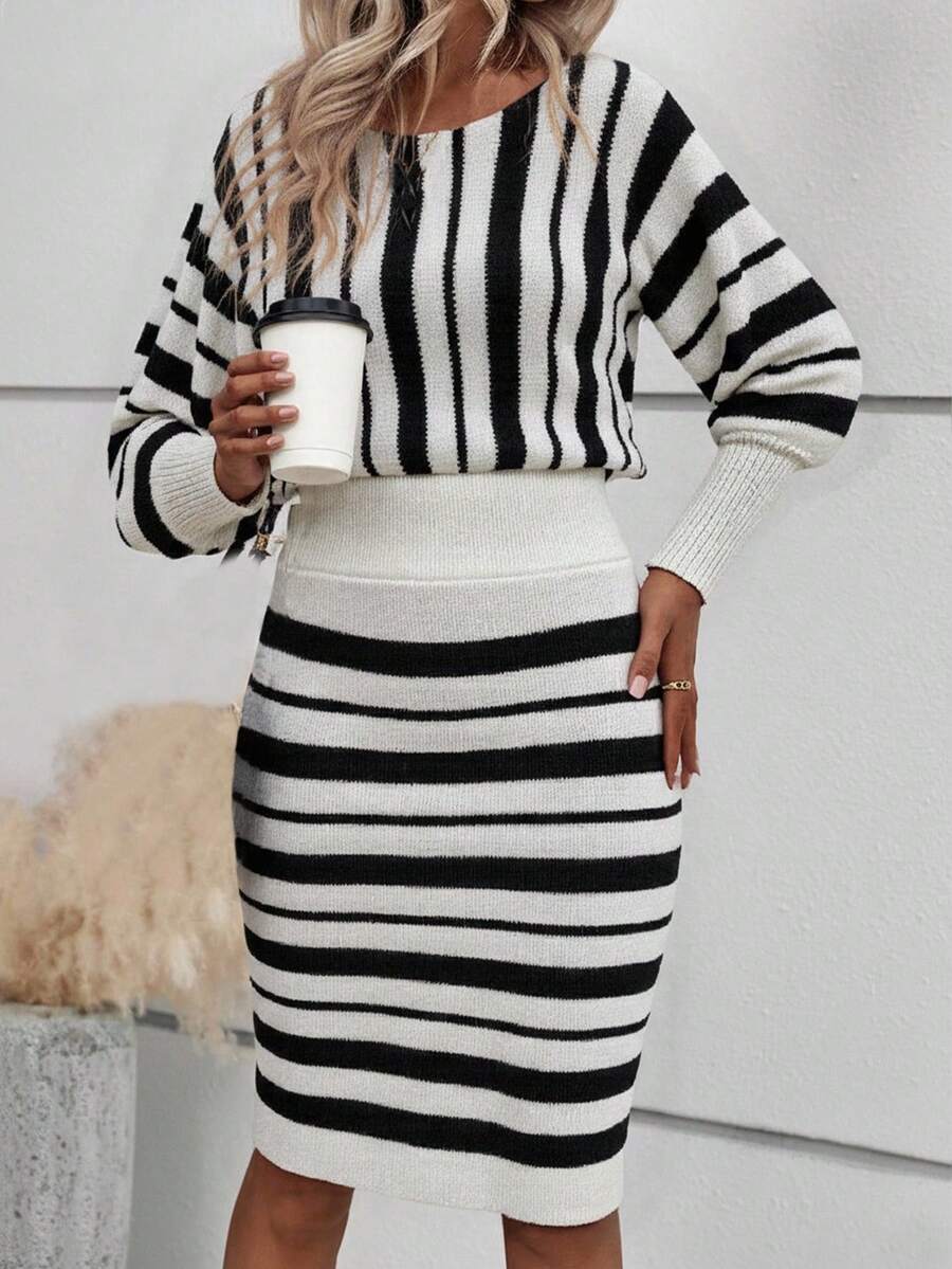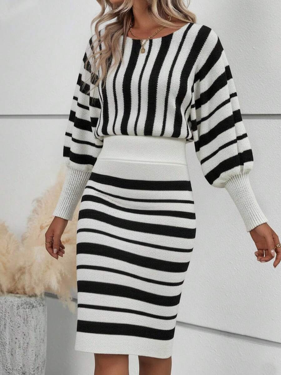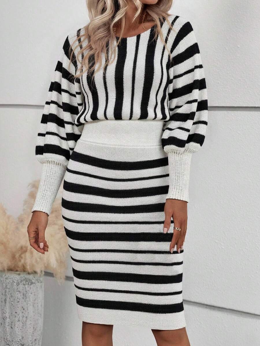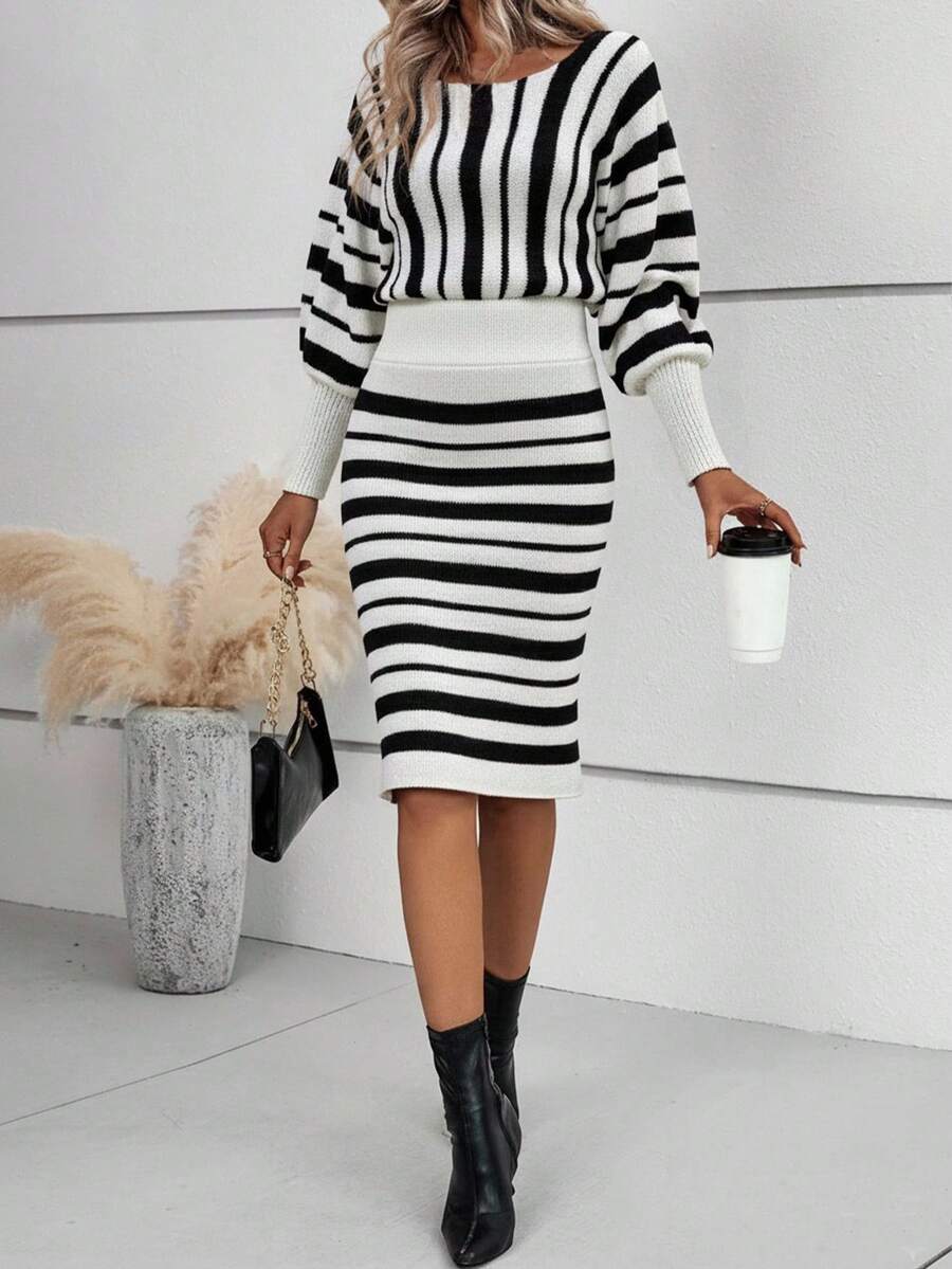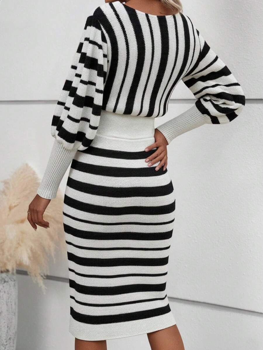 MAJA Čvrsta Lantern Rukava Pletena Haljina Jesen Zima