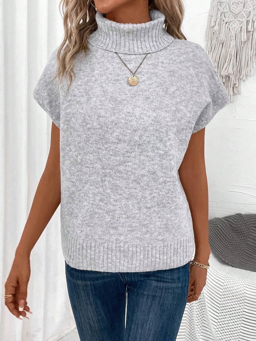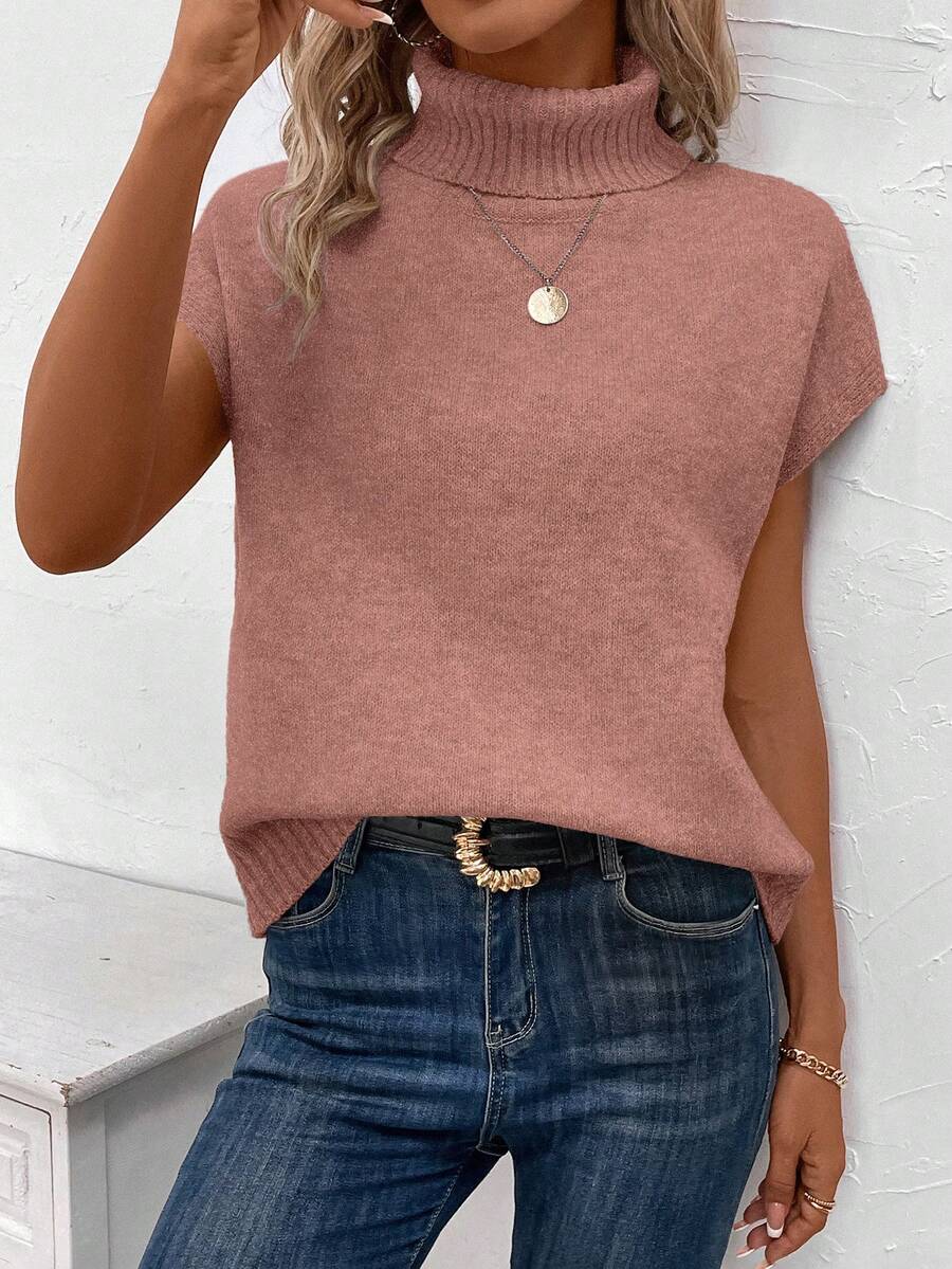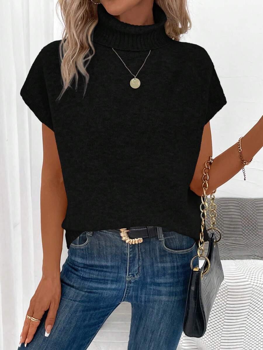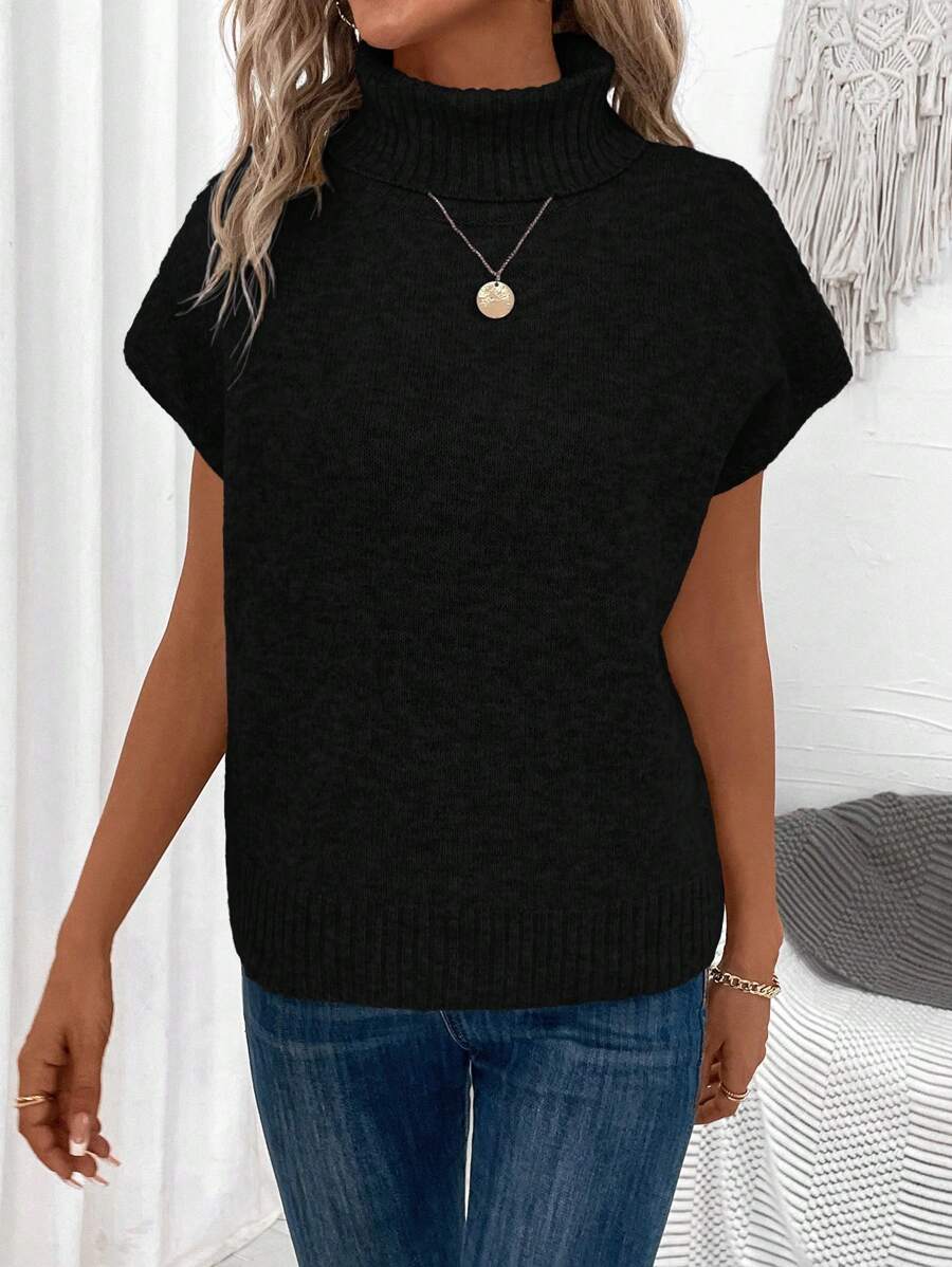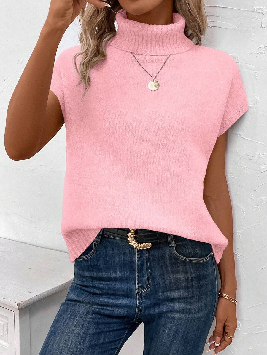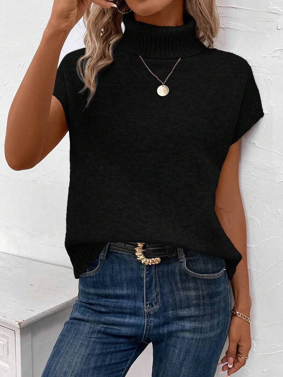 MAJA LUNE Ženska majica sa visokim ovratnikom, kratkim rukavima, ležerna i prostrana, jednobojna