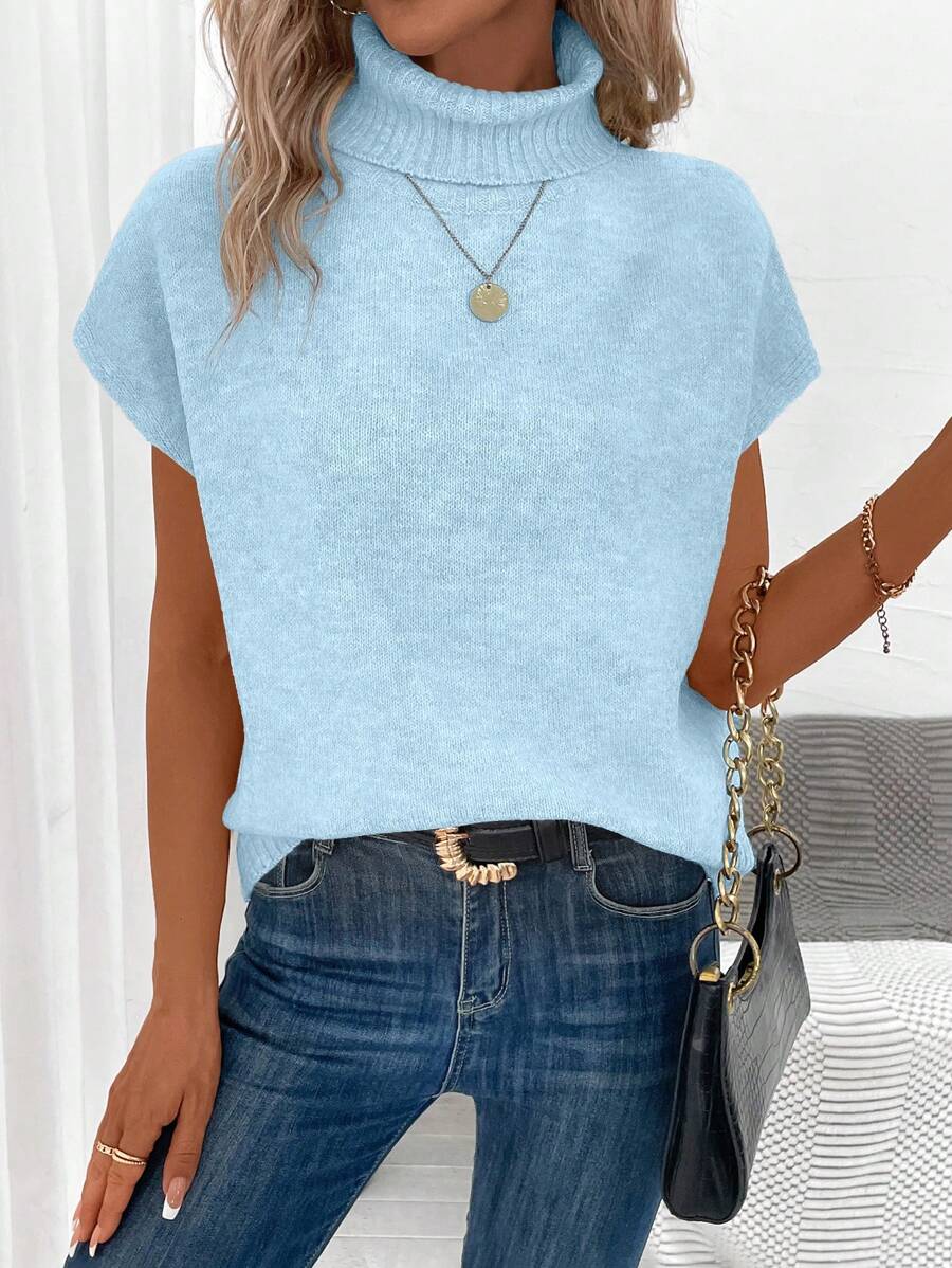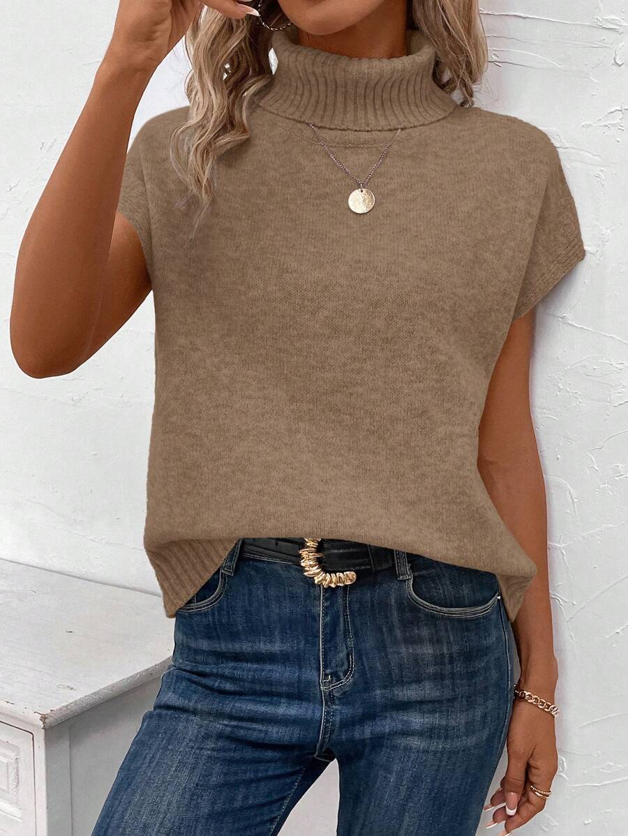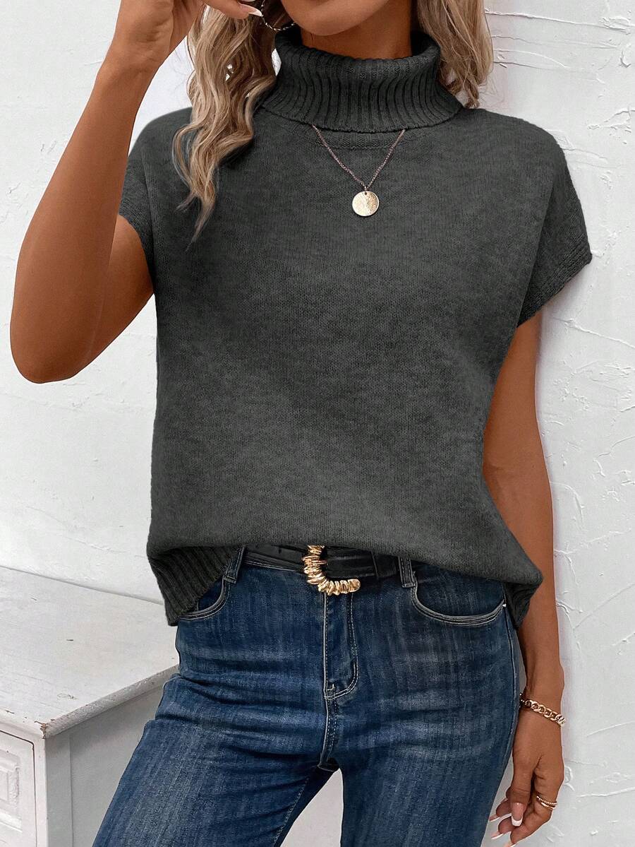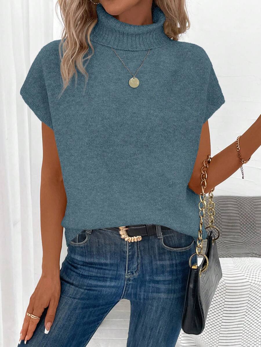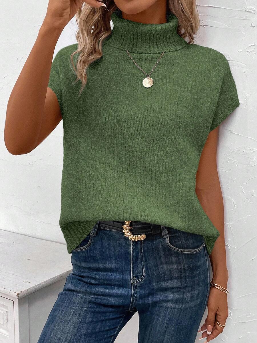 MAJA LUNE Ženska majica sa visokim ovratnikom, kratkim rukavima, ležerna i prostrana, jednobojna