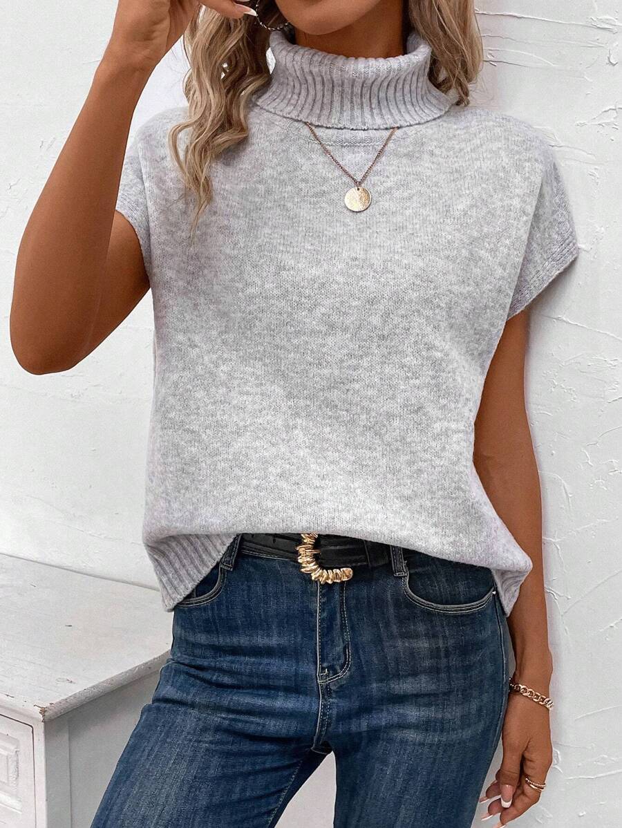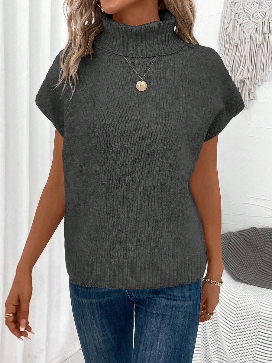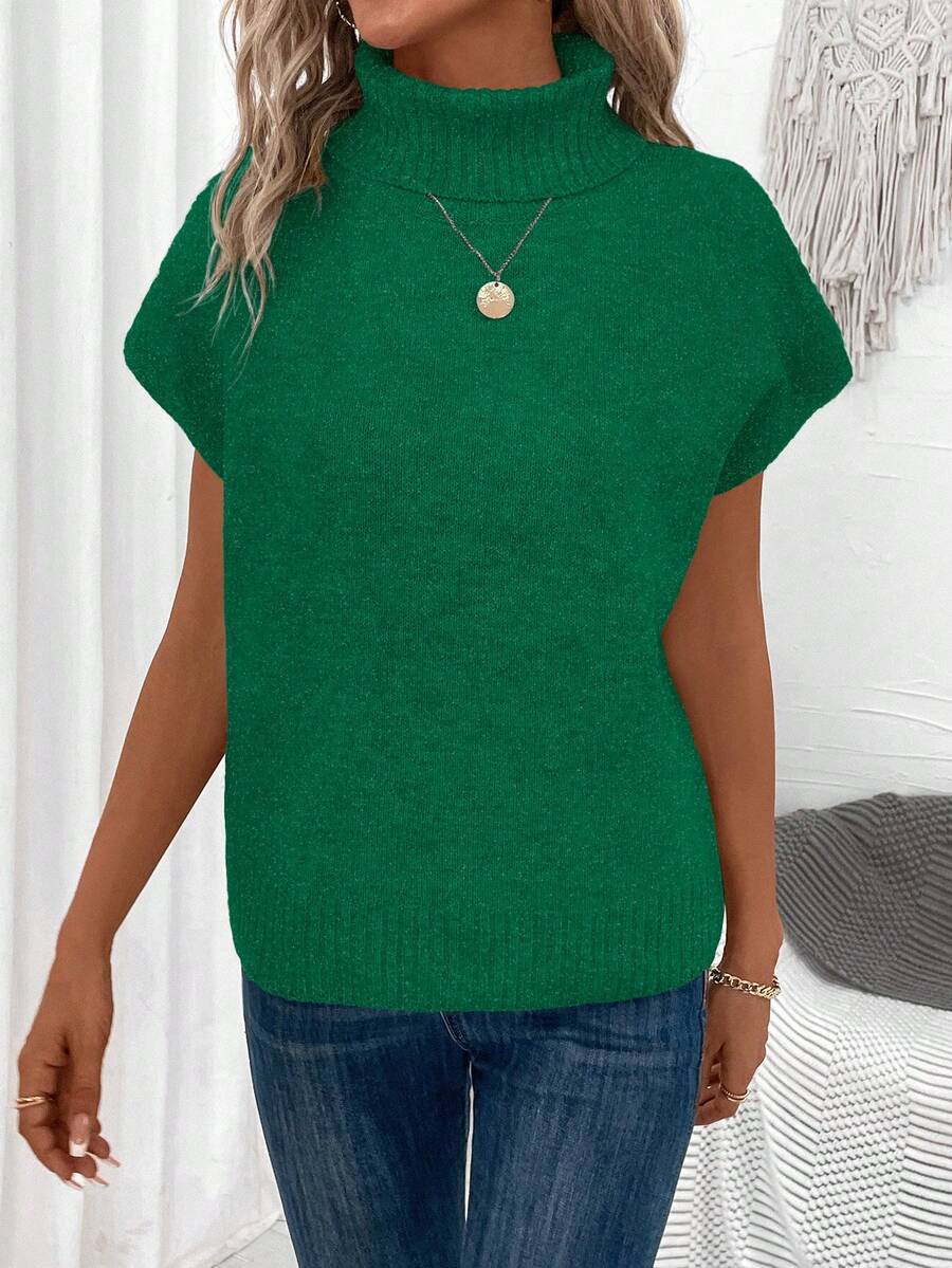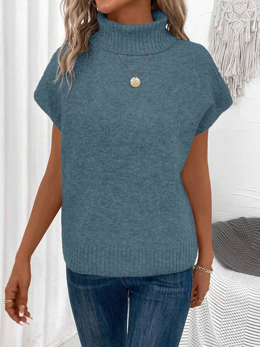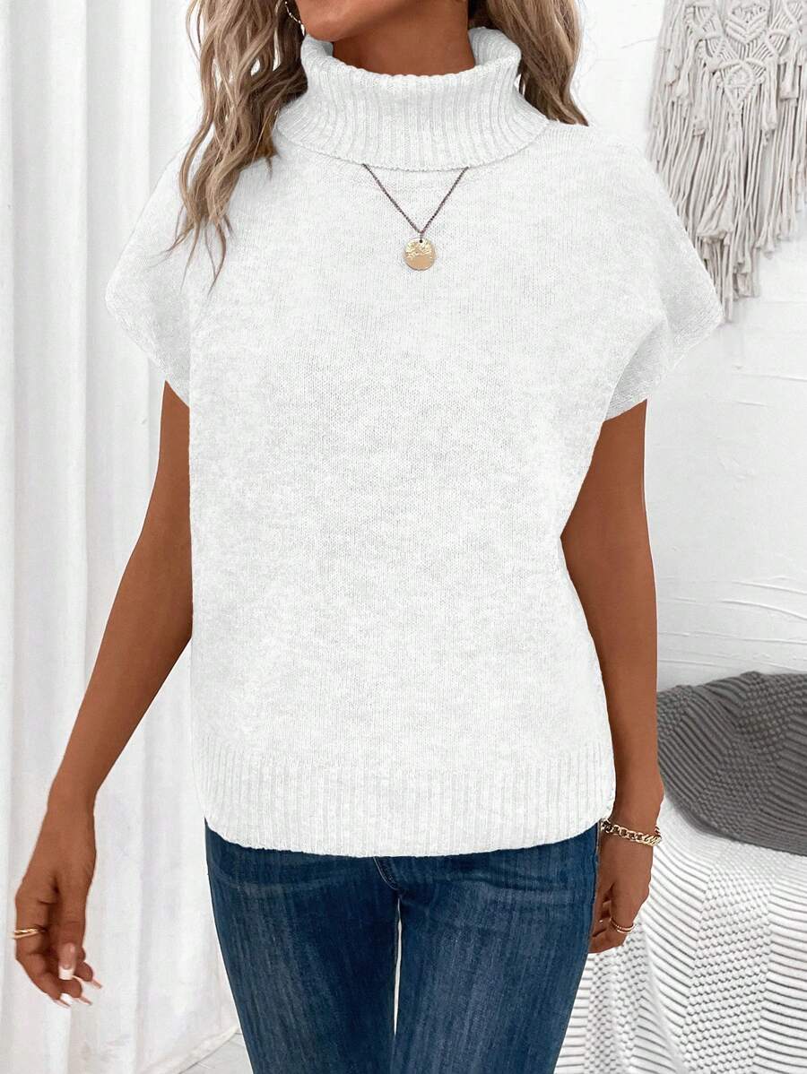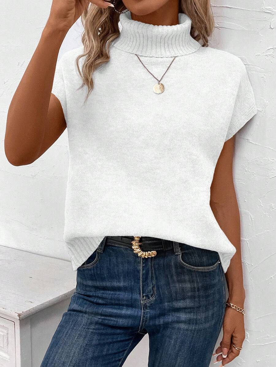 MAJA LUNE Ženska majica sa visokim ovratnikom, kratkim rukavima, ležerna i prostrana, jednobojna
