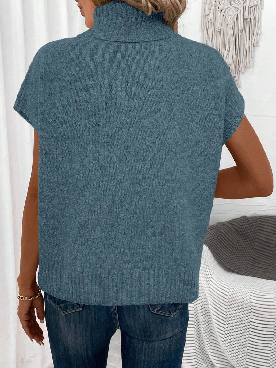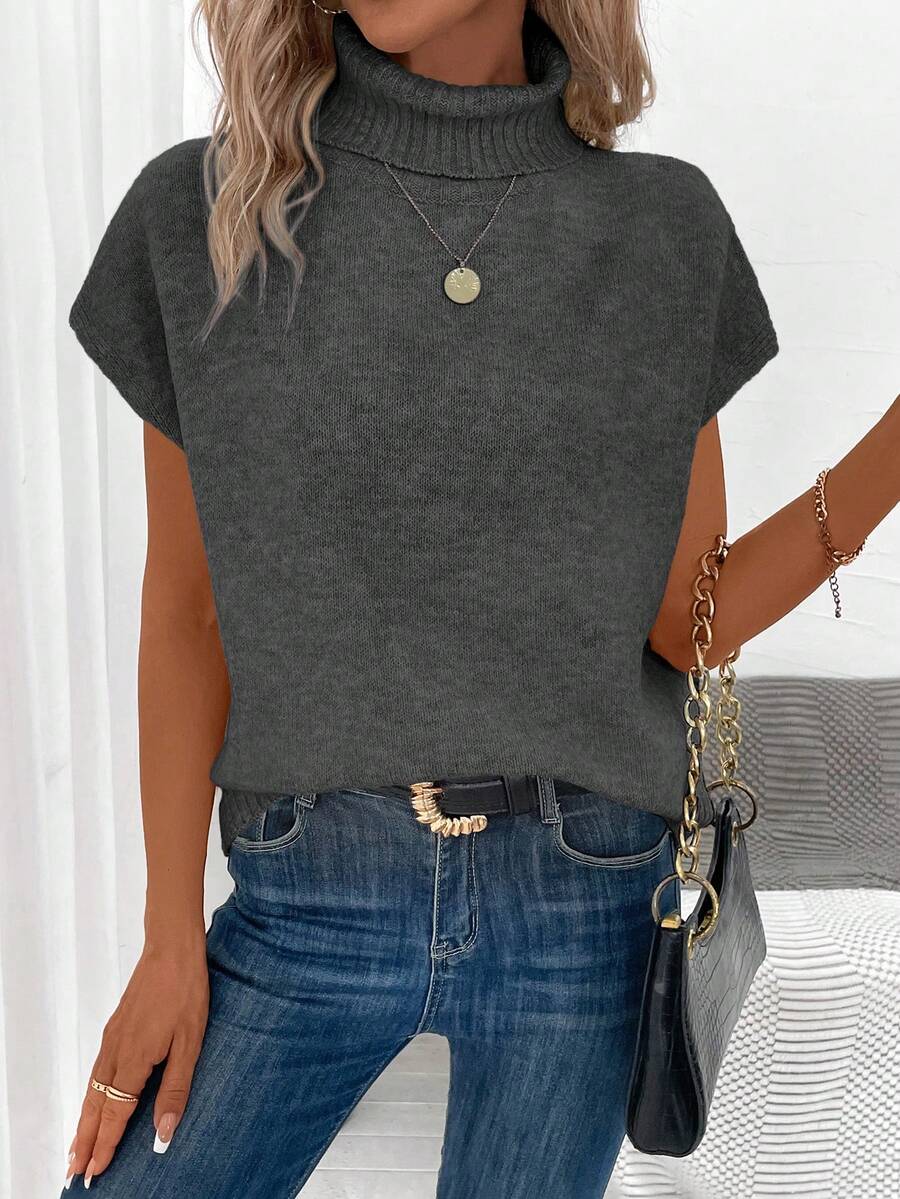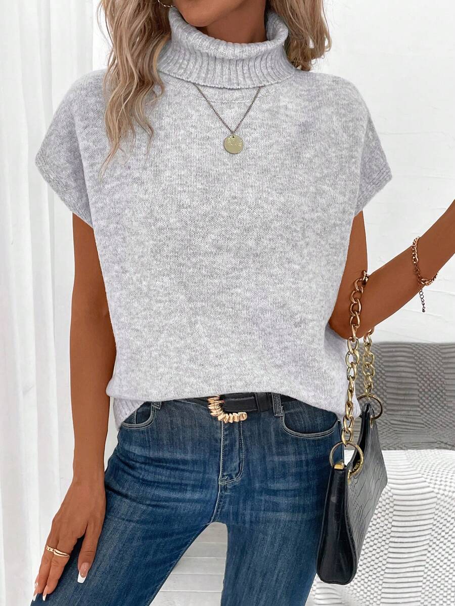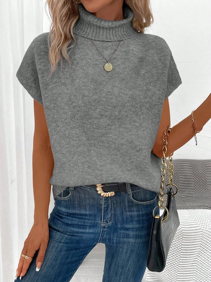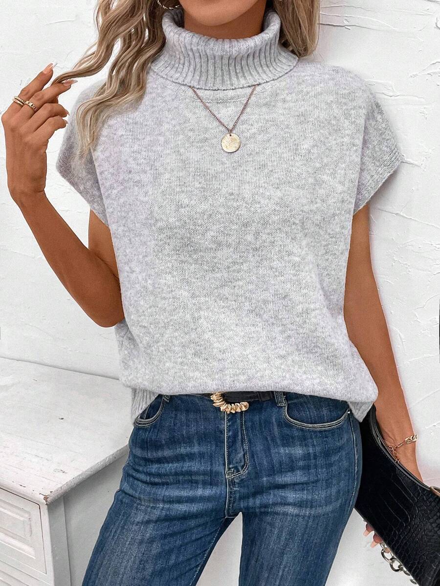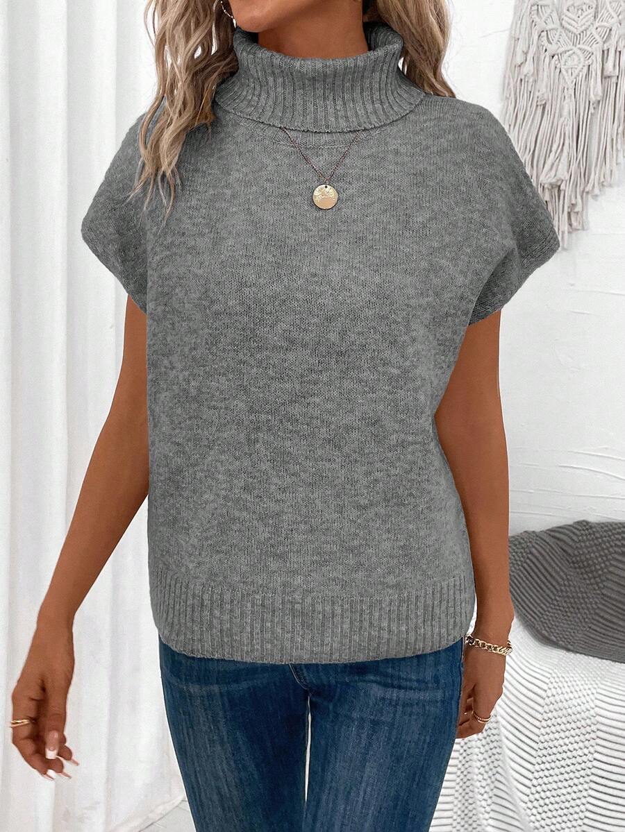 MAJA LUNE Ženska majica sa visokim ovratnikom, kratkim rukavima, ležerna i prostrana, jednobojna