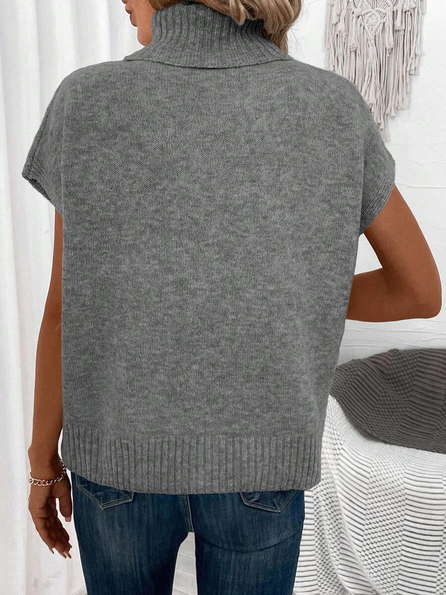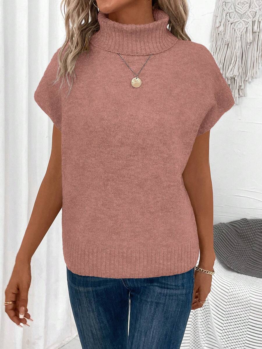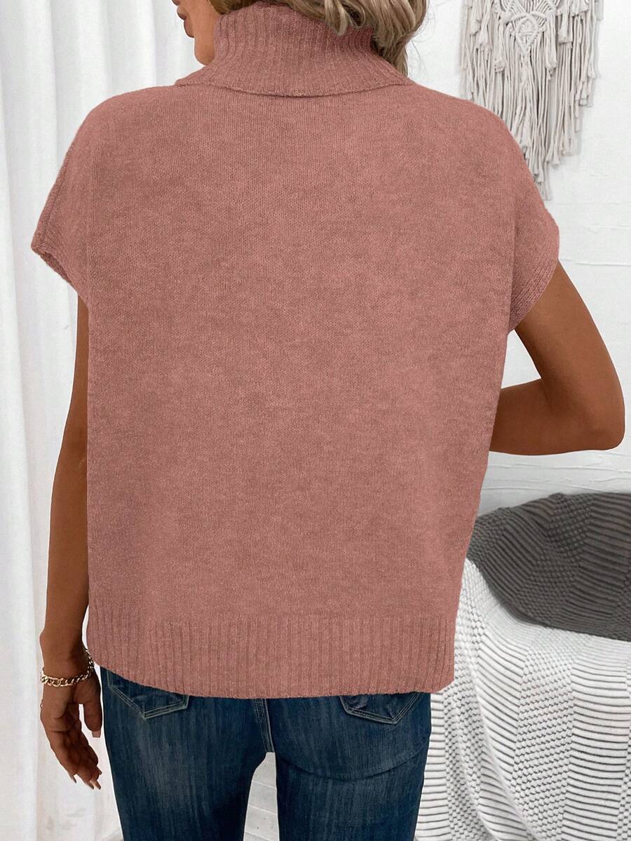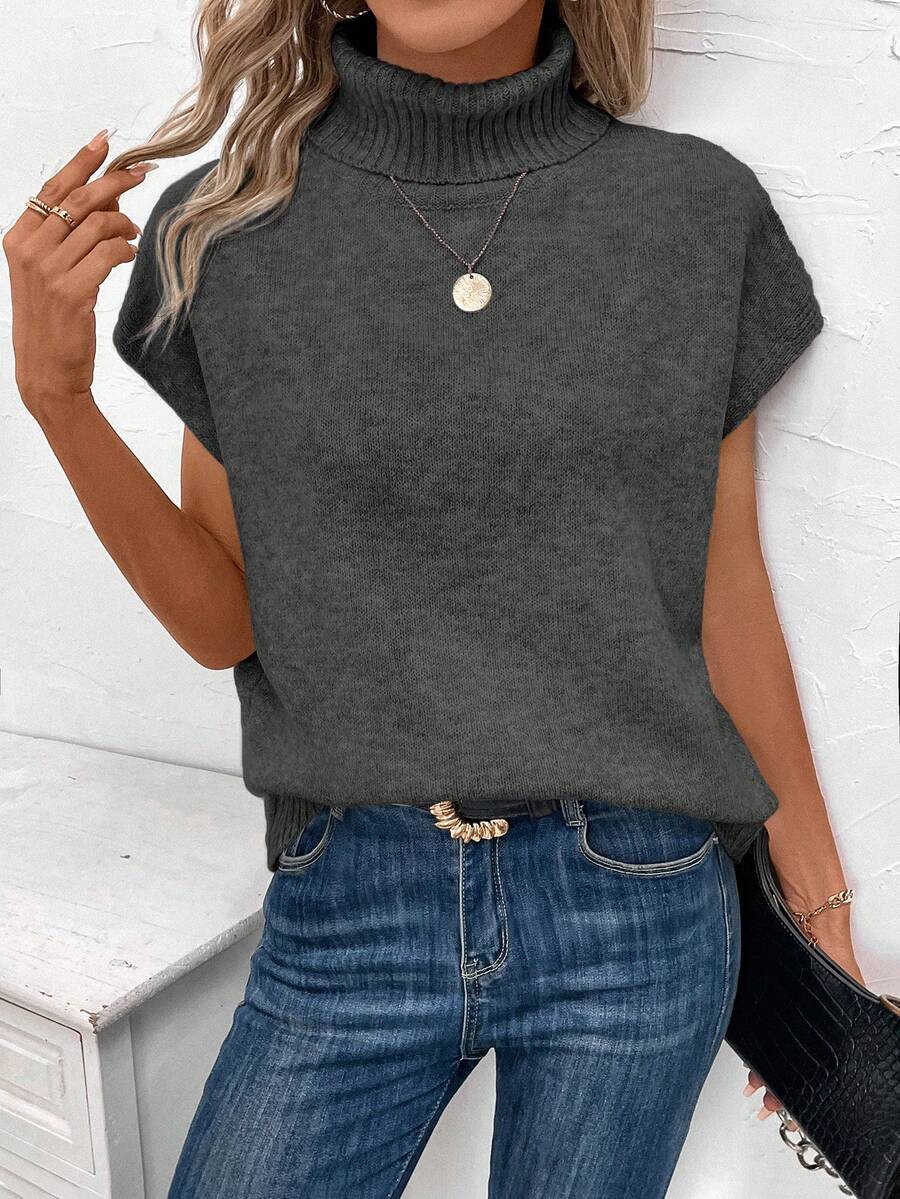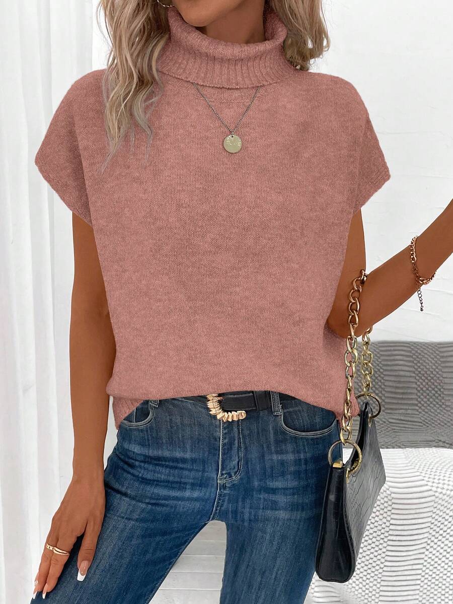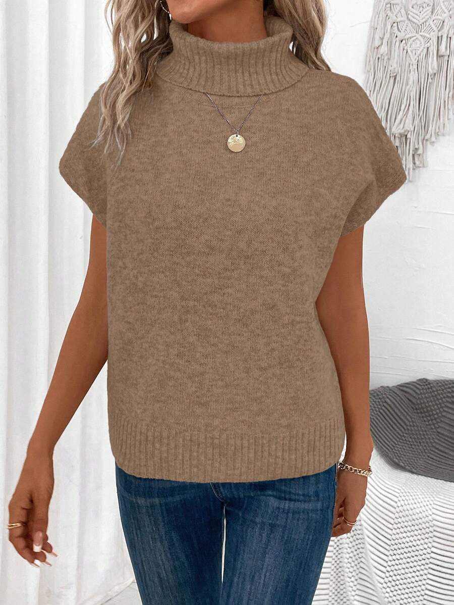 MAJA LUNE Ženska majica sa visokim ovratnikom, kratkim rukavima, ležerna i prostrana, jednobojna