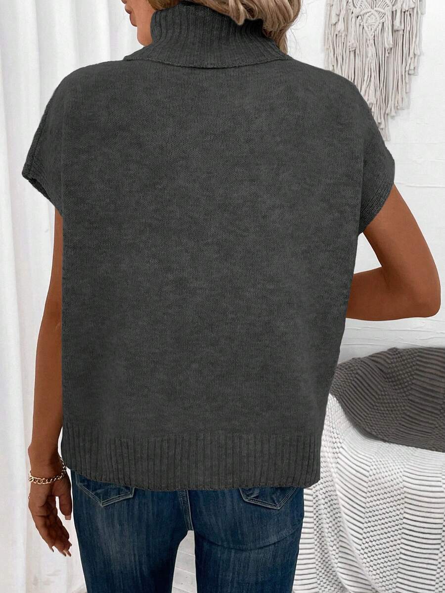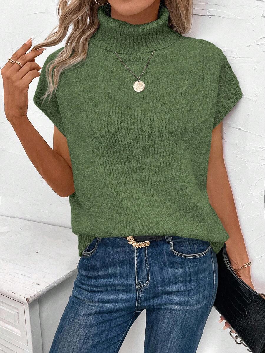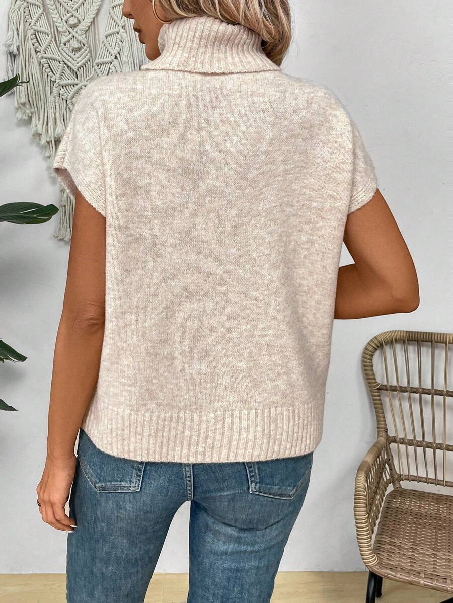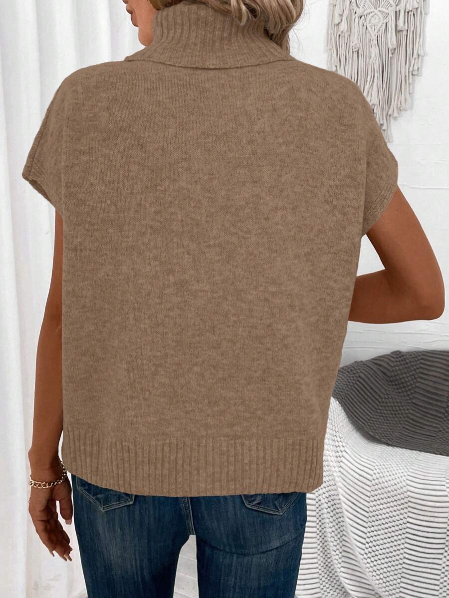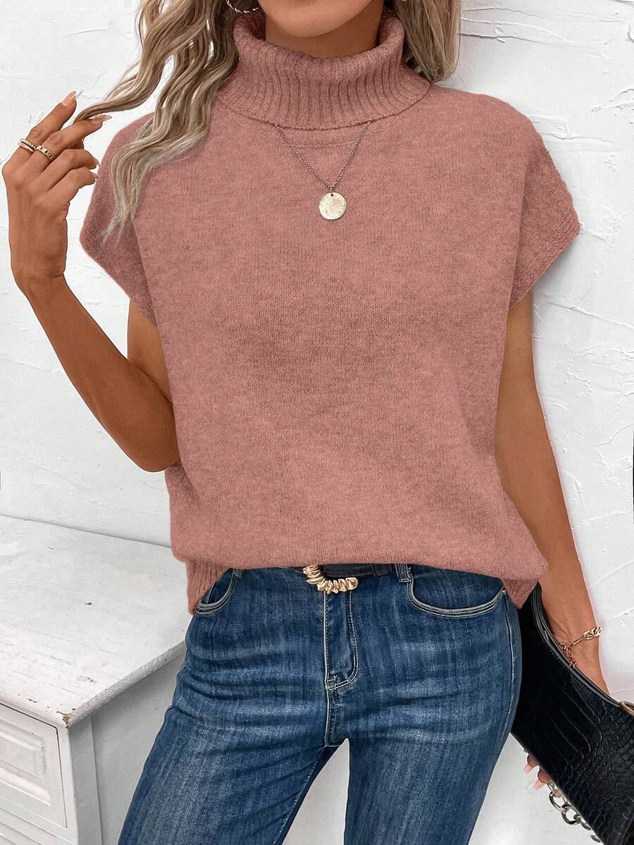 MAJA LUNE Ženska majica sa visokim ovratnikom, kratkim rukavima, ležerna i prostrana, jednobojna